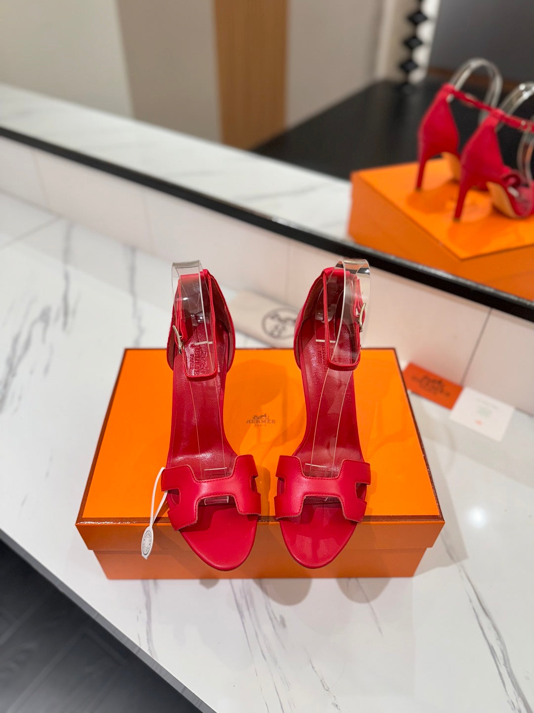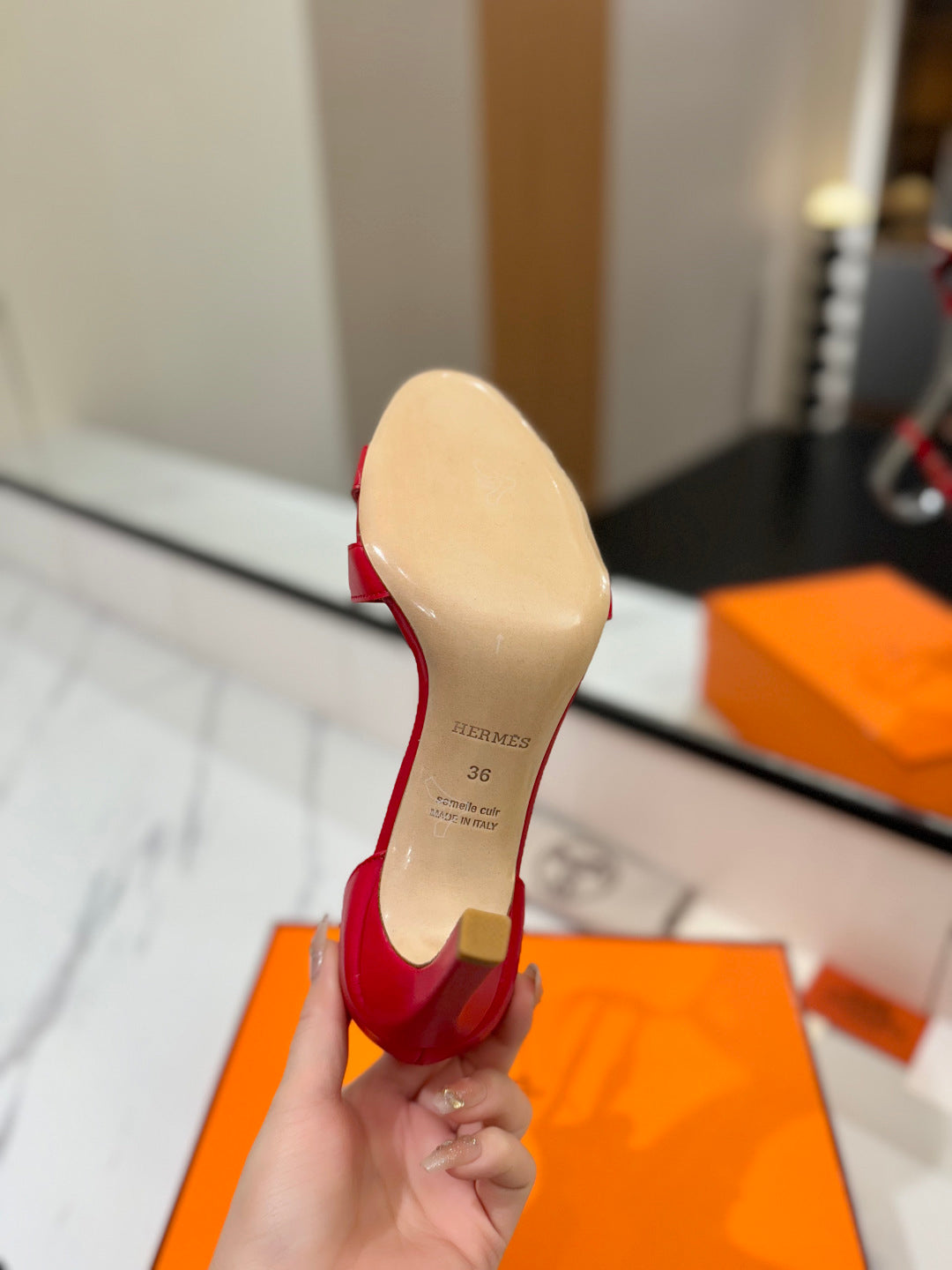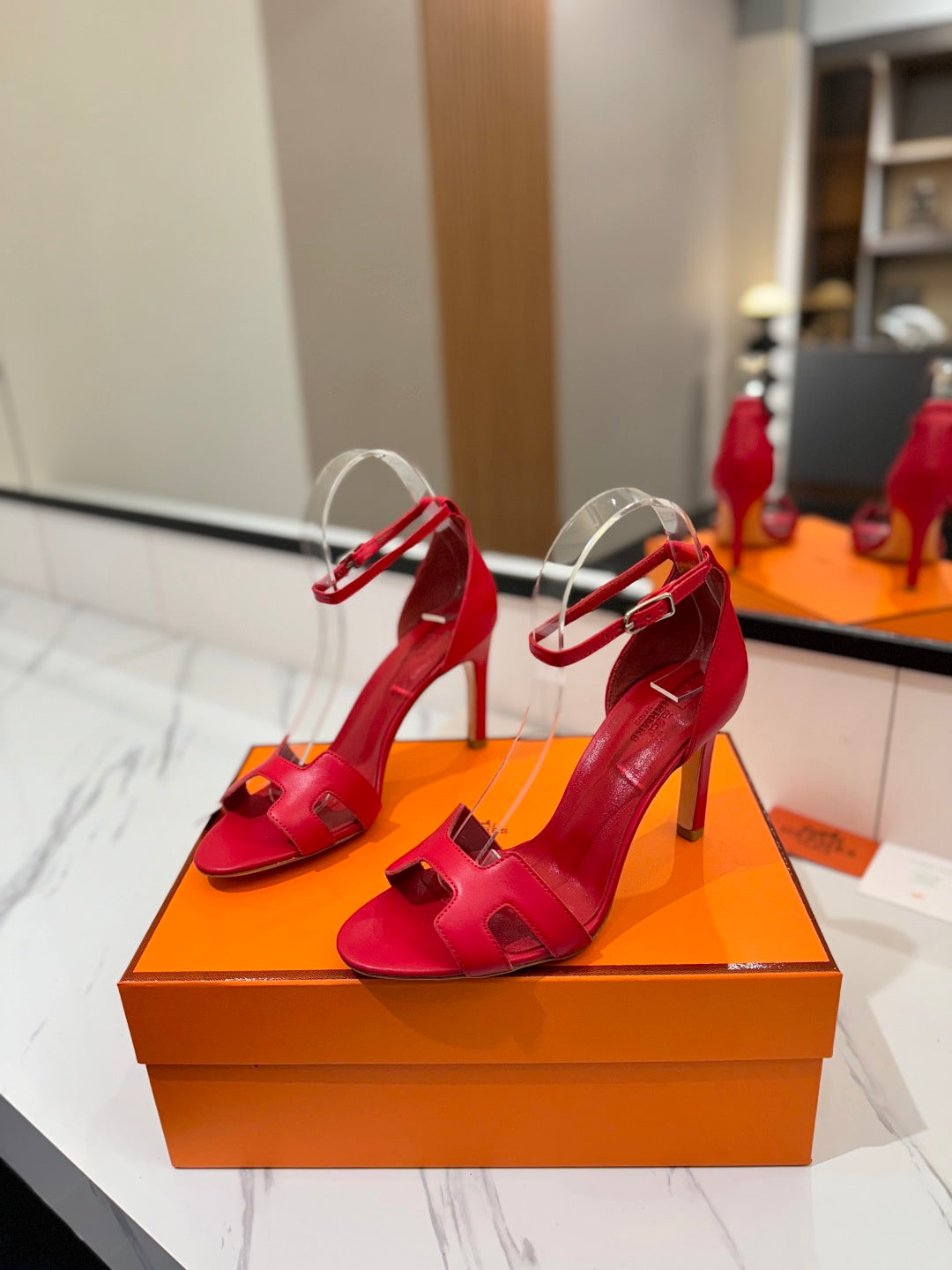 HM Joy 90mm Heeled Sandals Red Flat Cowhide 294922