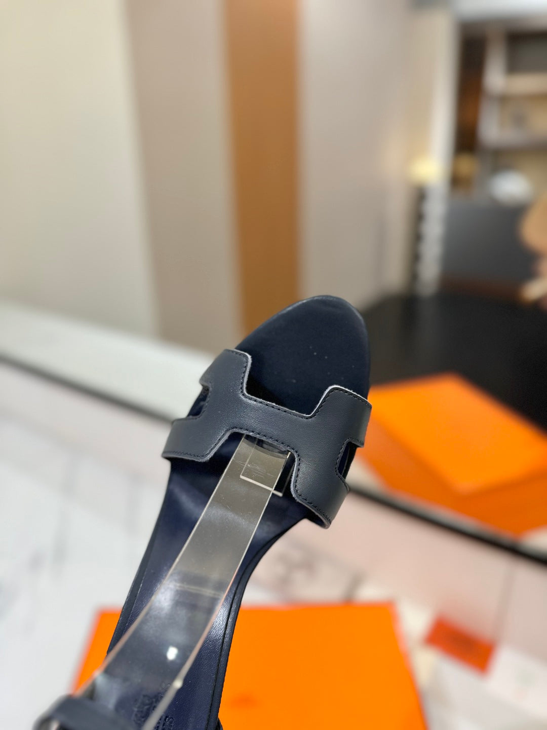 HM Joy 90mm Heeled Sandals Navy Blue Flat Cowhide 294923