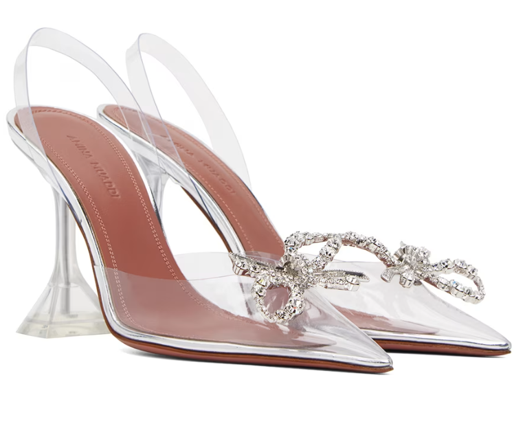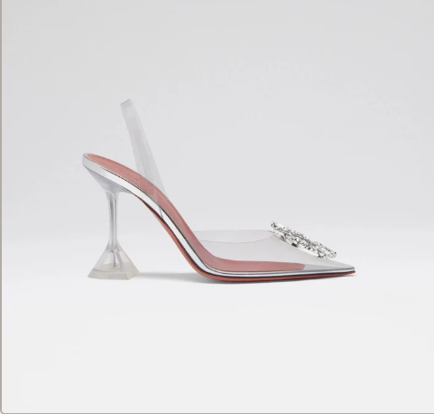 Amina Muaddi Begum Glass 90mm Slingback Pump White transparent PVC Goatskin