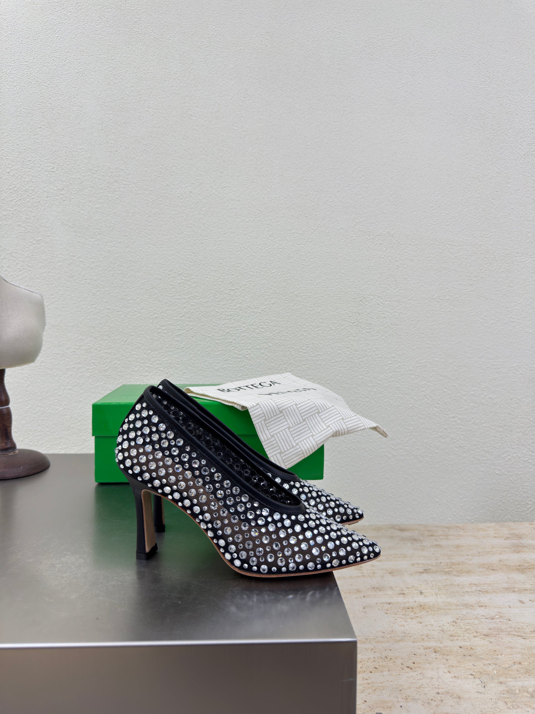 BV Rhinestones Sofia Pump 90mm Black Mesh 428482