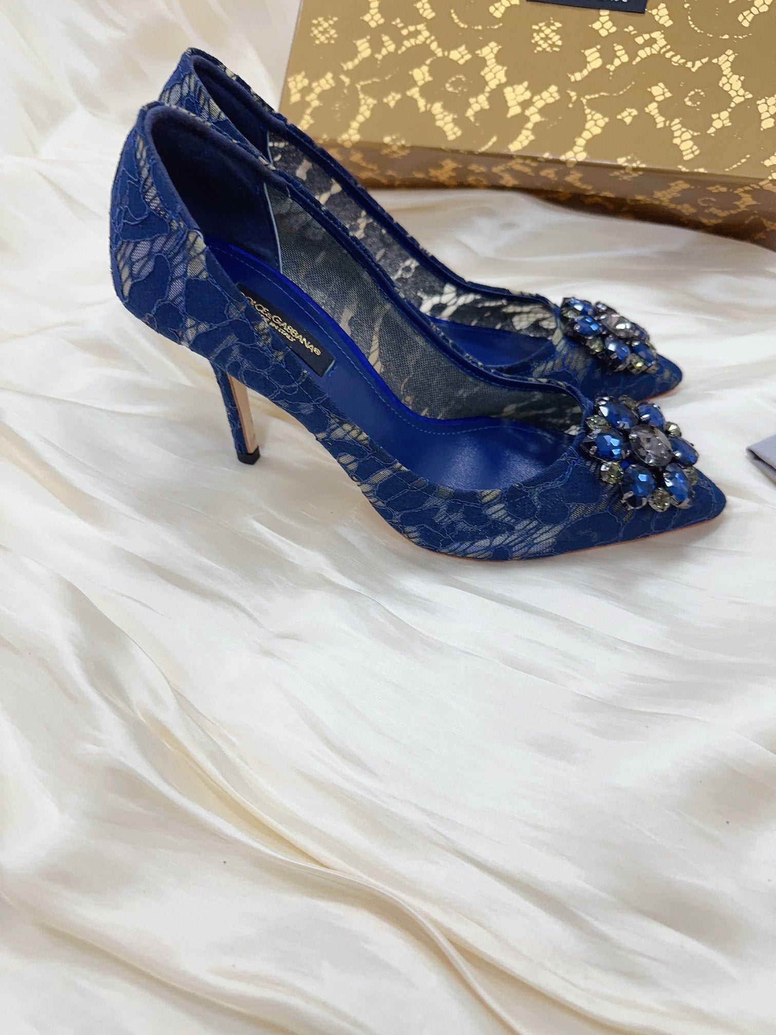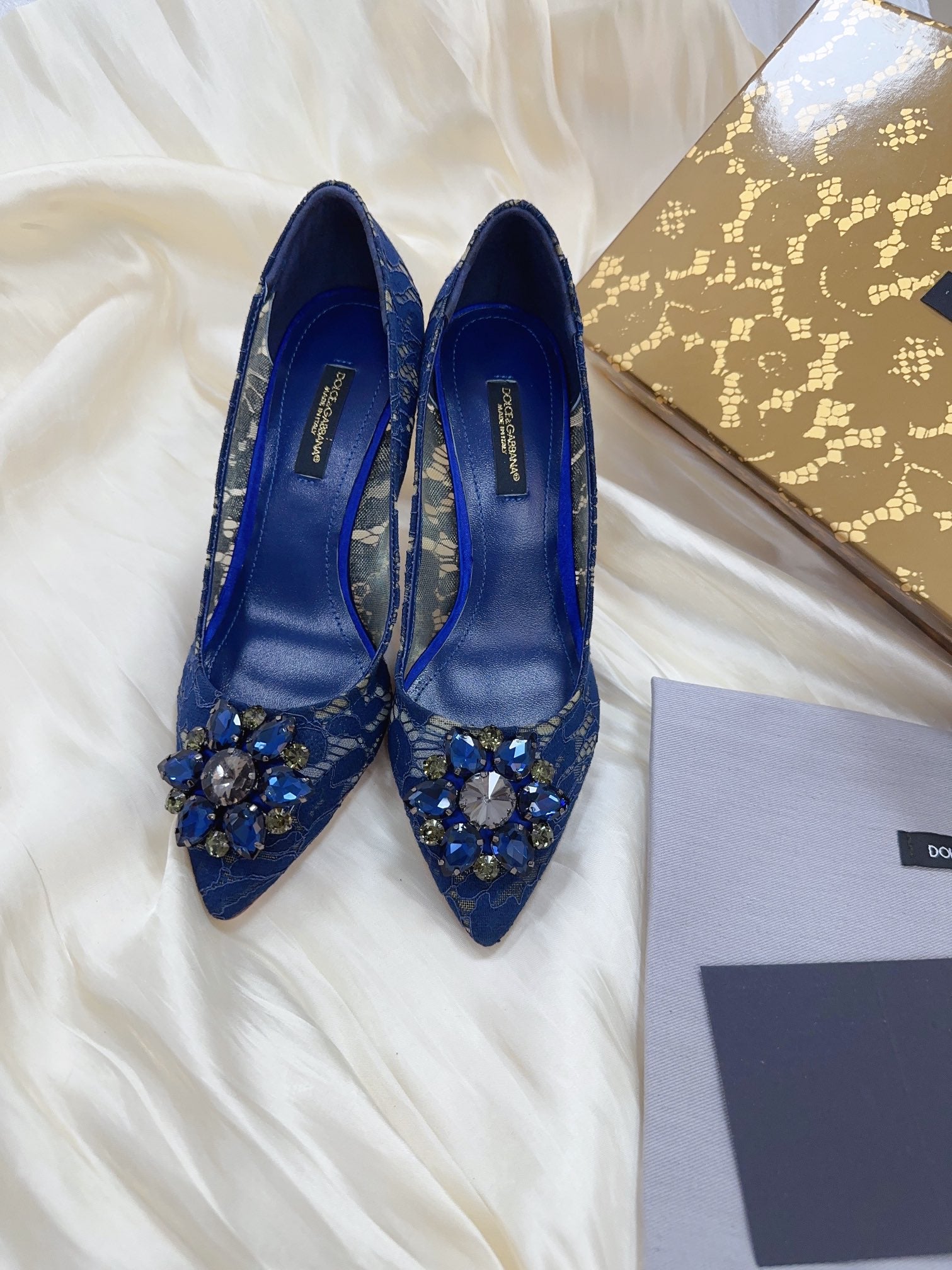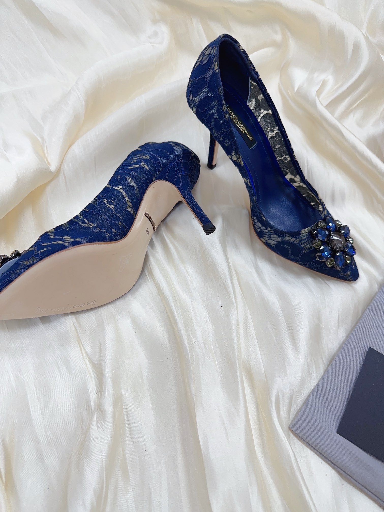 DC Floral Crystal Pumps Blue Genuine Leather & Lace 324772
