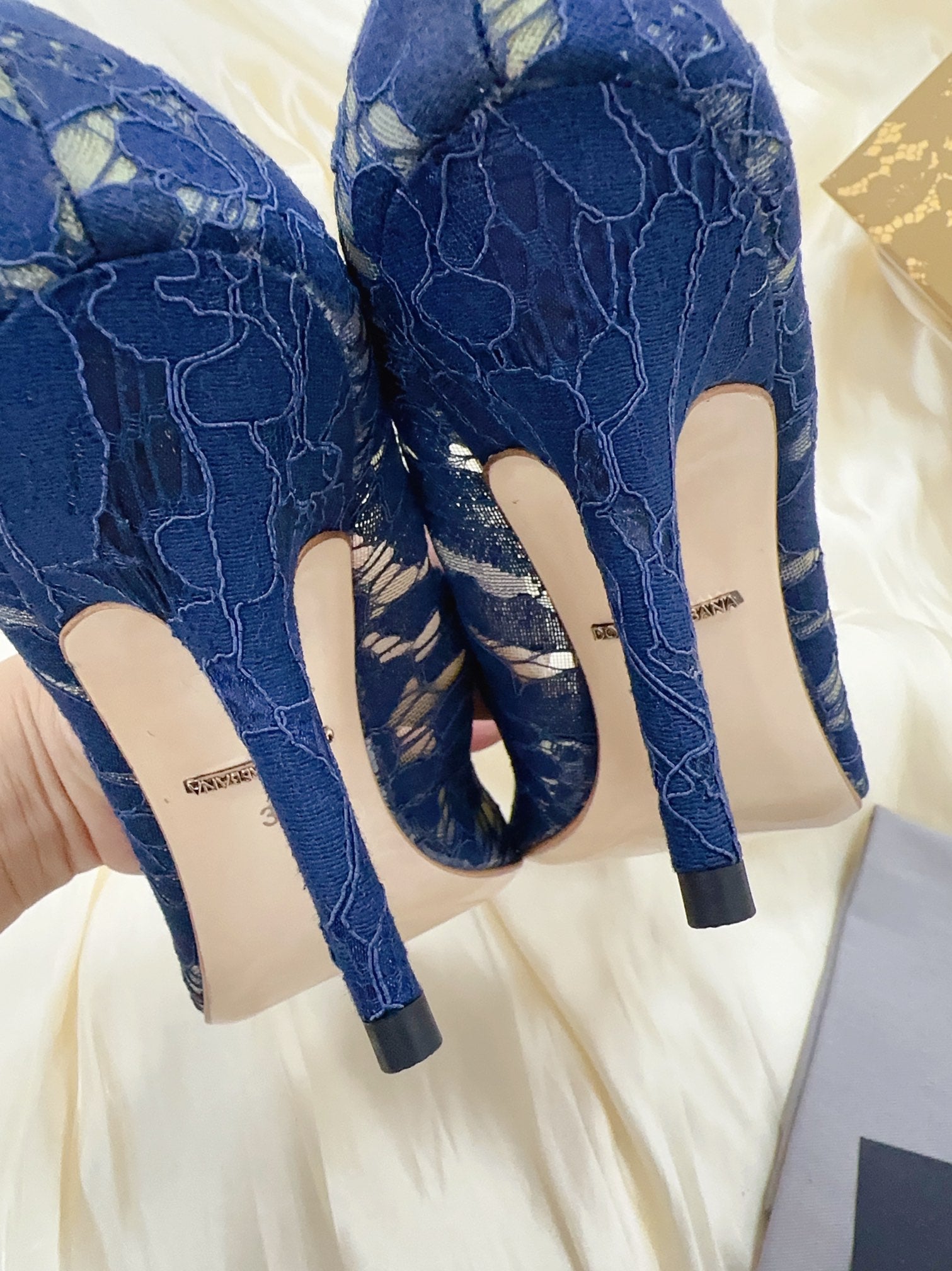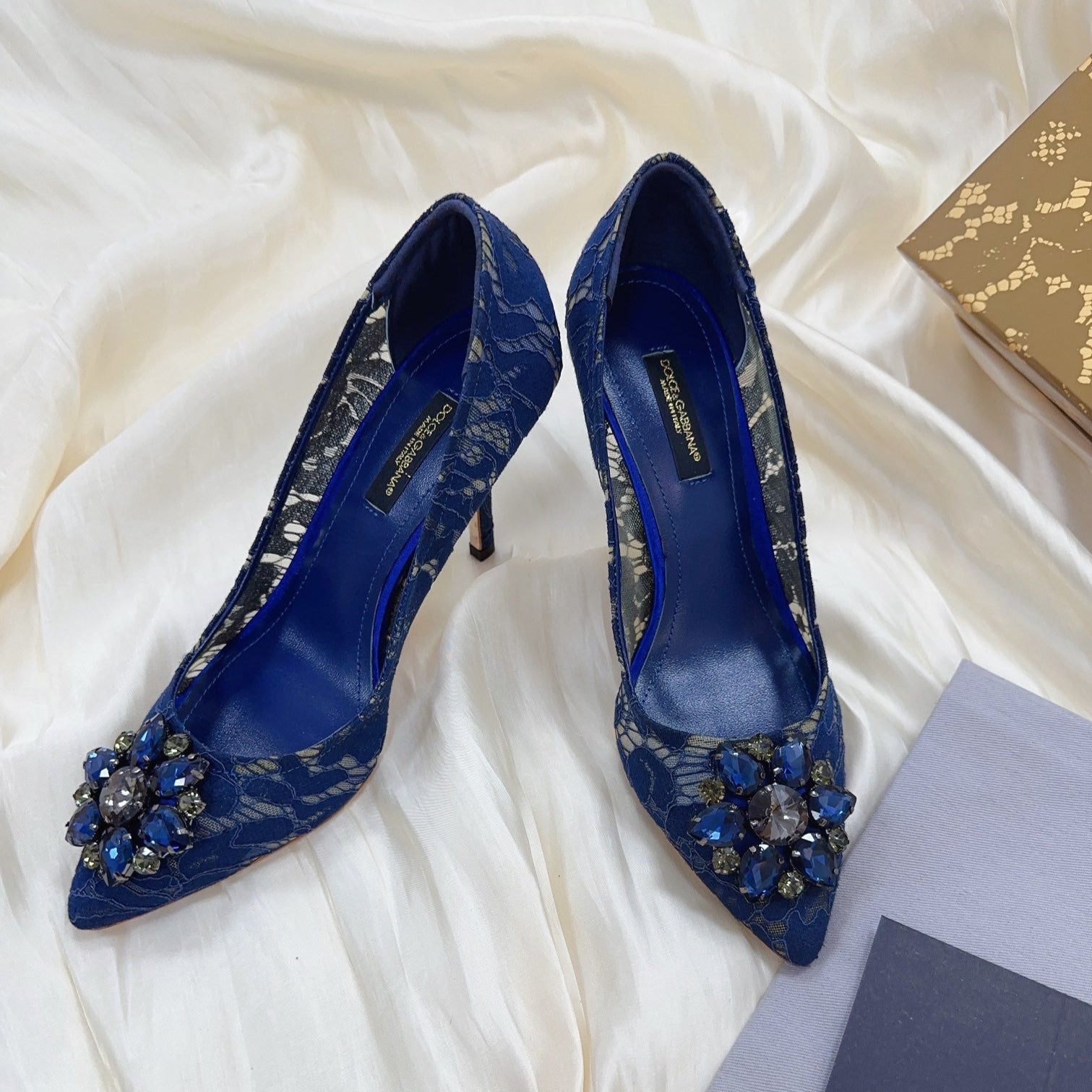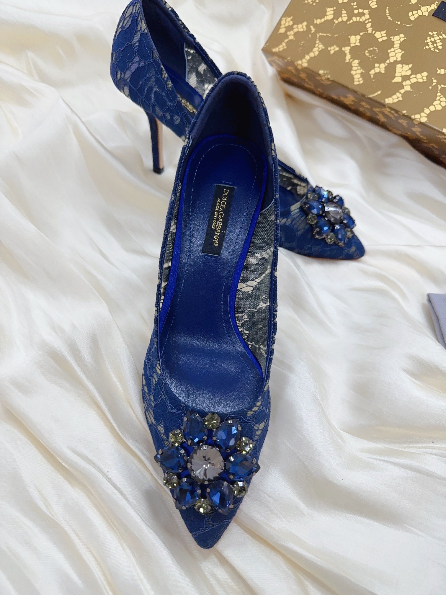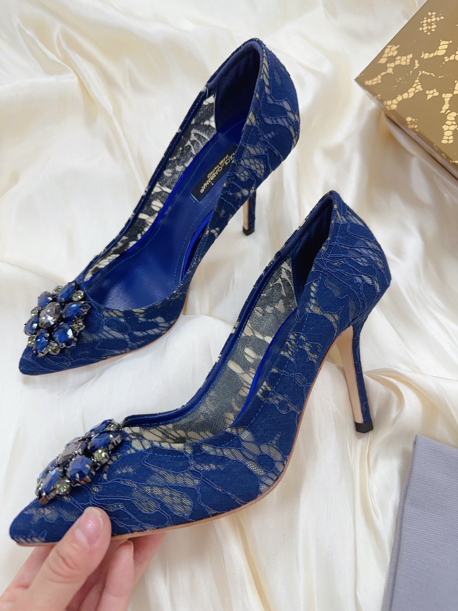 DC Floral Crystal Pumps Blue Genuine Leather & Lace 324772
