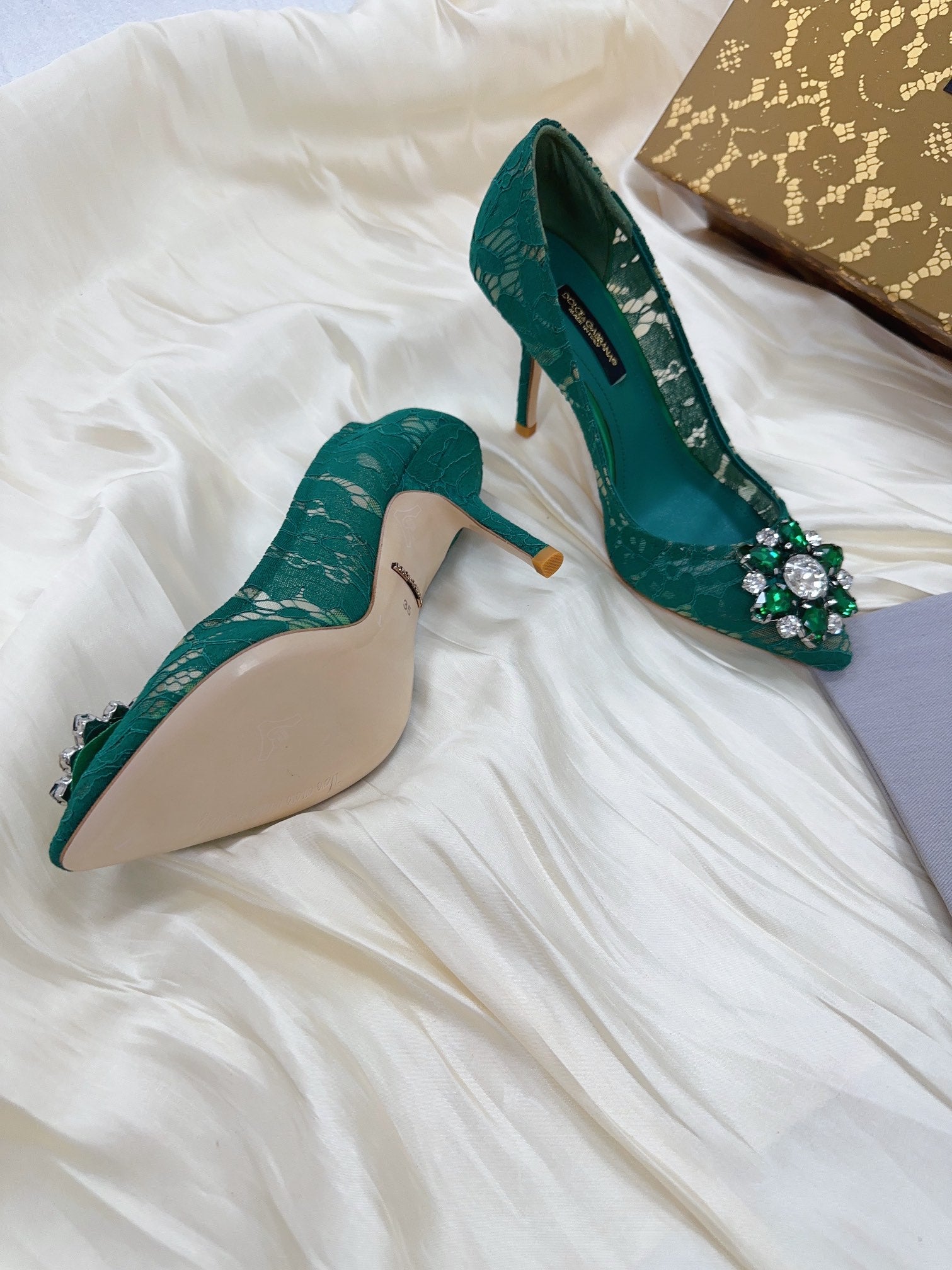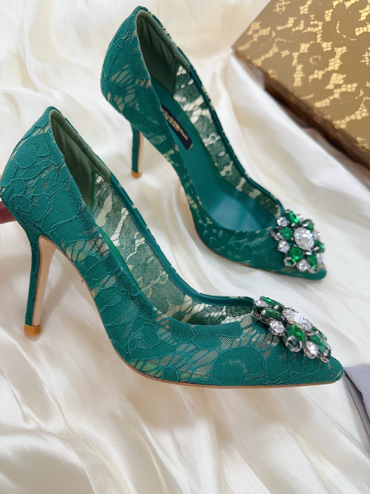 DC Floral Crystal Pumps Deep Blue-Green Genuine Leather & Lace 324774