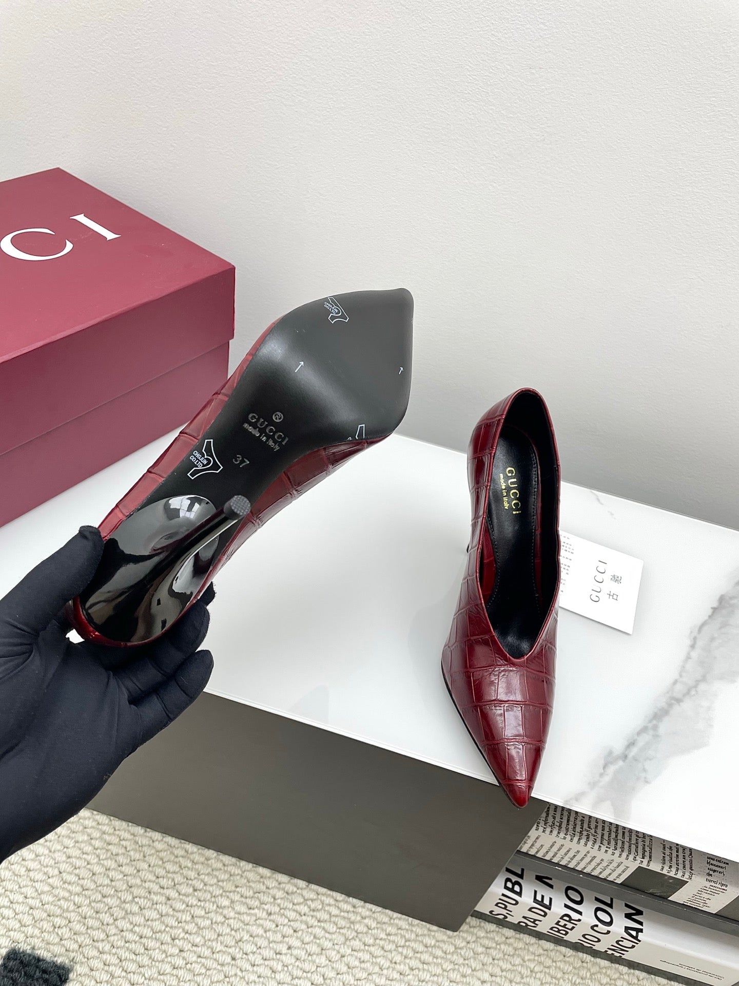 GG 25Ss Crocodile Pattern Pointed Toe High Heels Burgundy Leather 511496