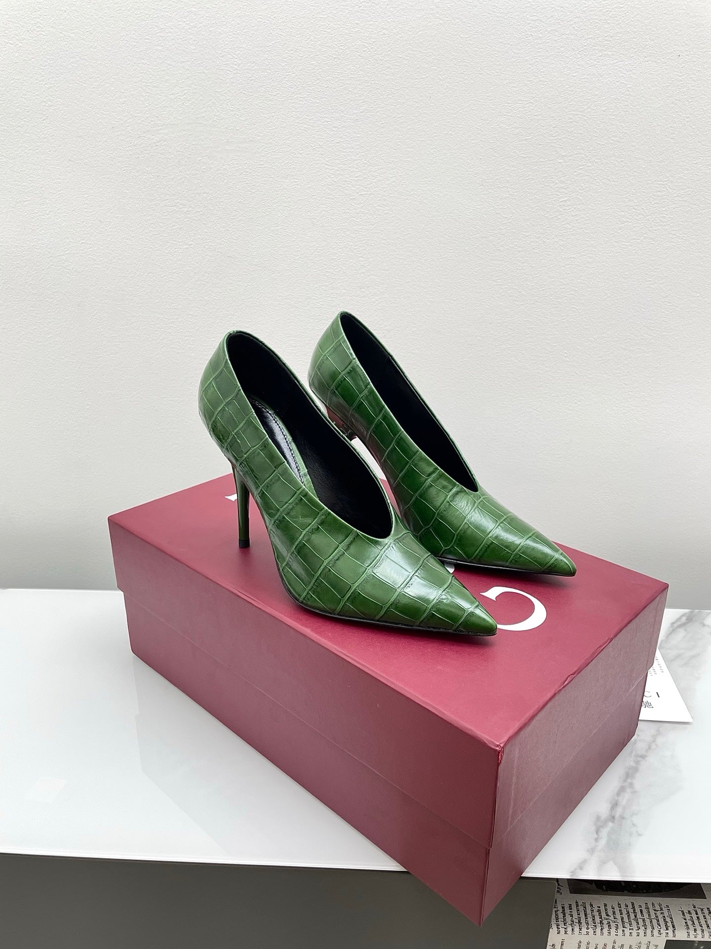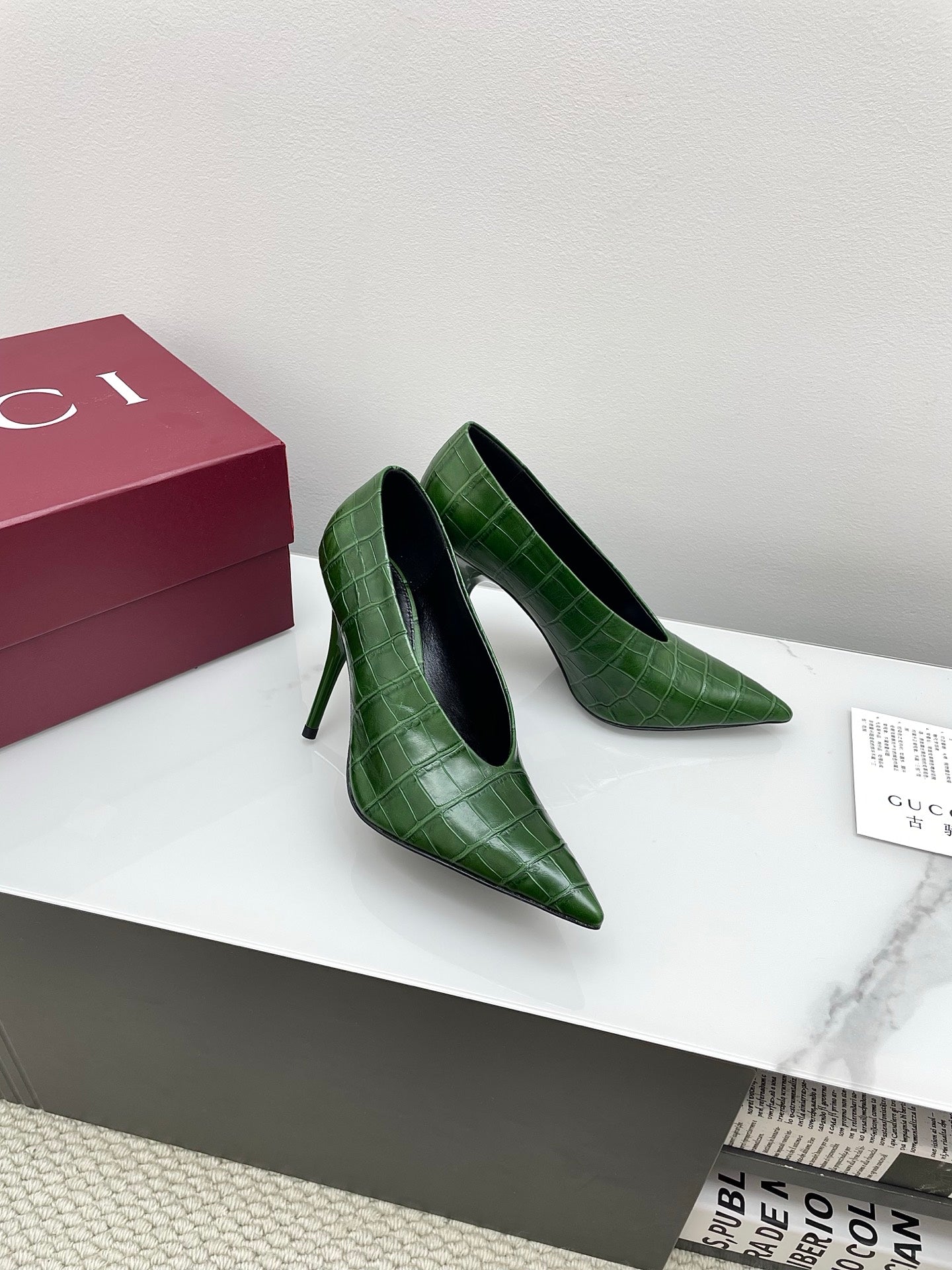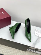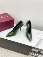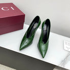 GG 25Ss Crocodile Pattern Pointed Toe High Heels Dark Green Leather 511498