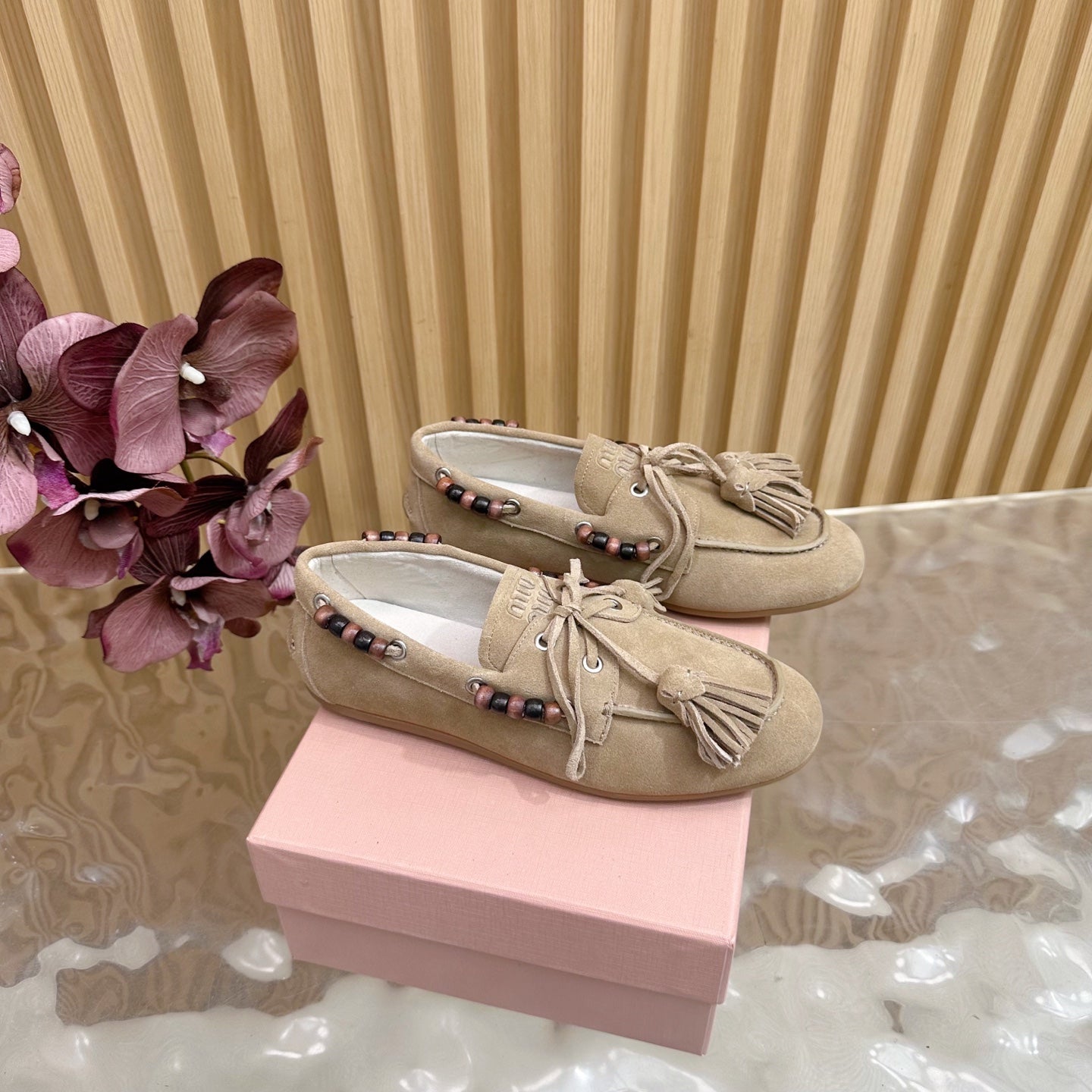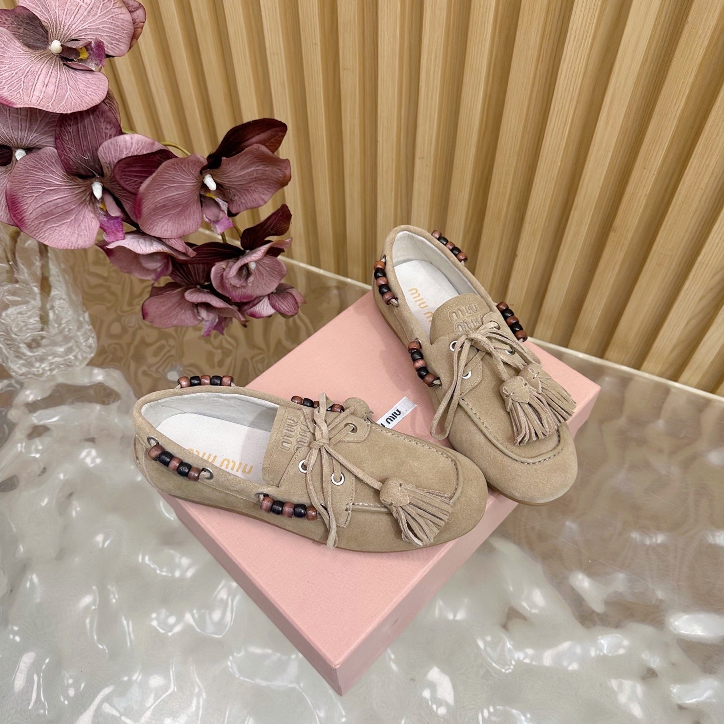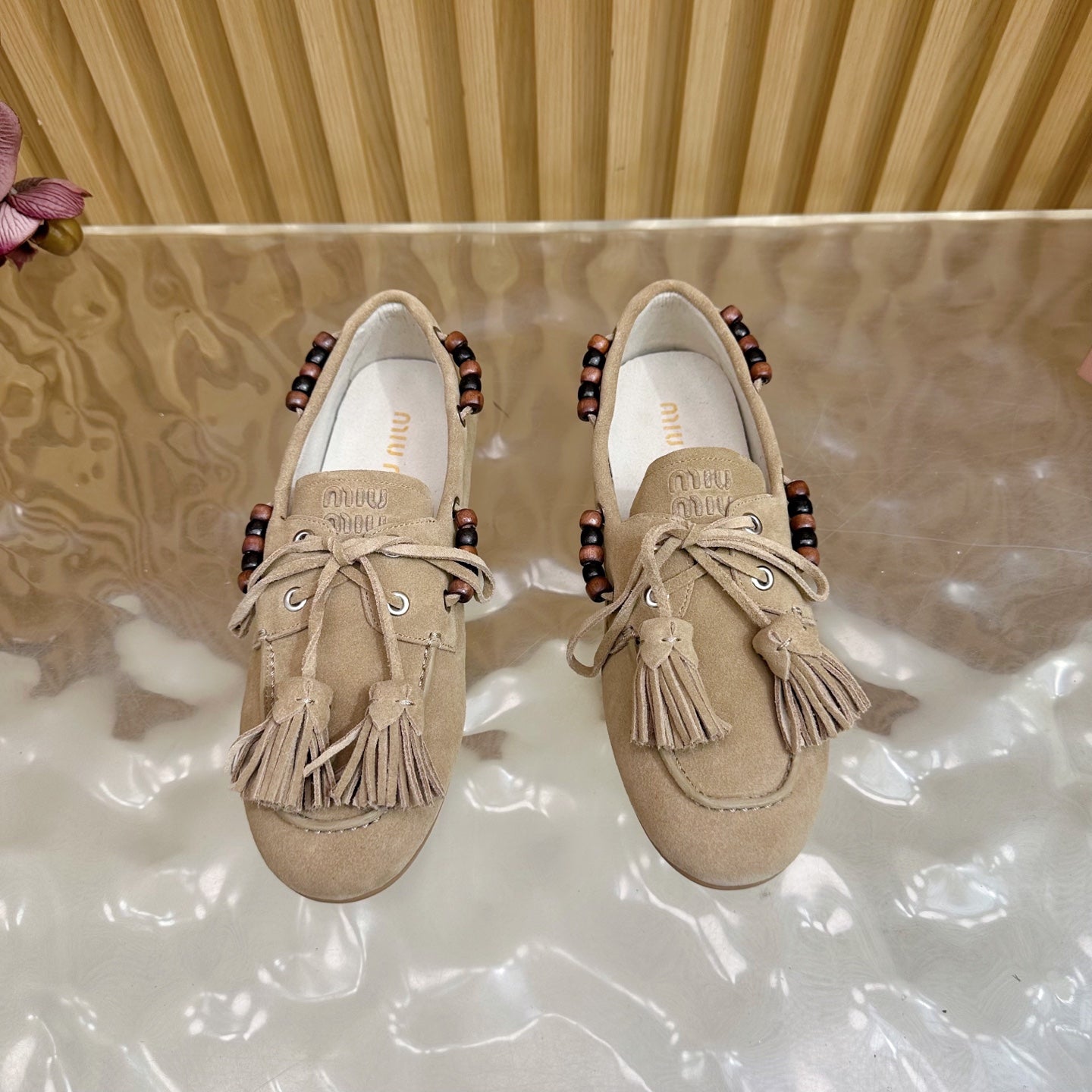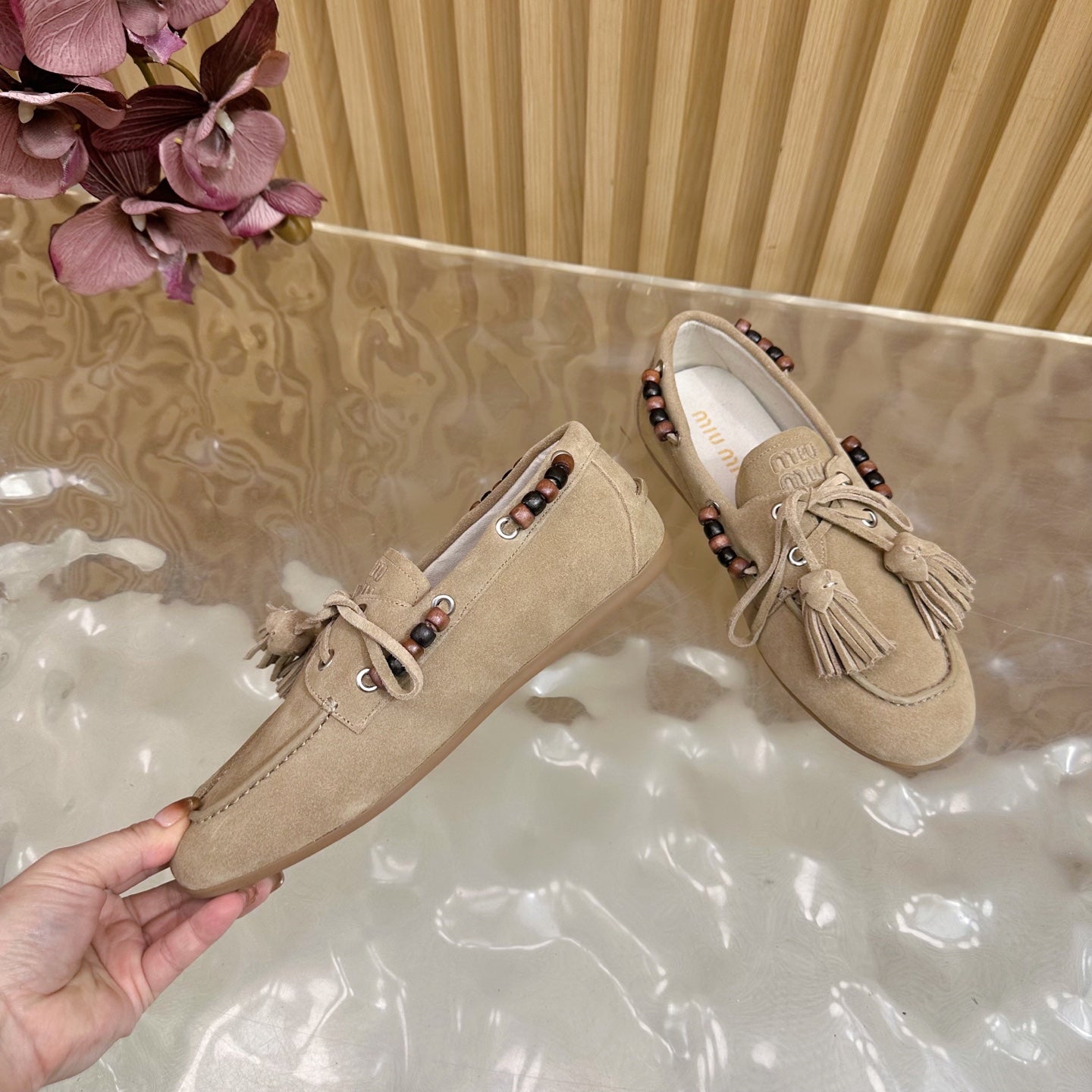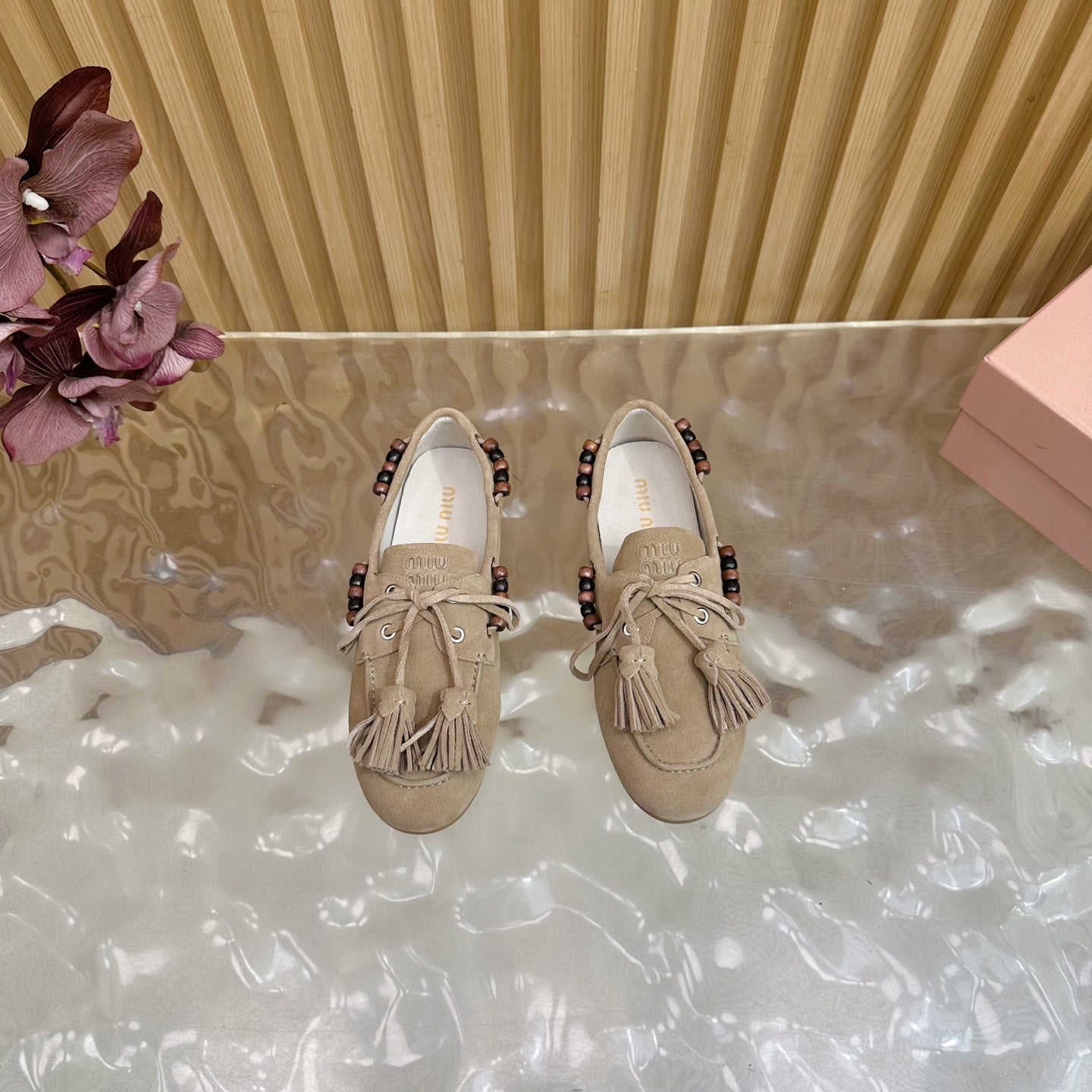 Miu Laces Eyelet Flat Loafer Beige Suede 498166