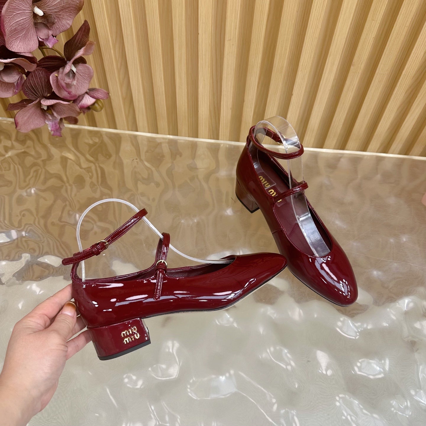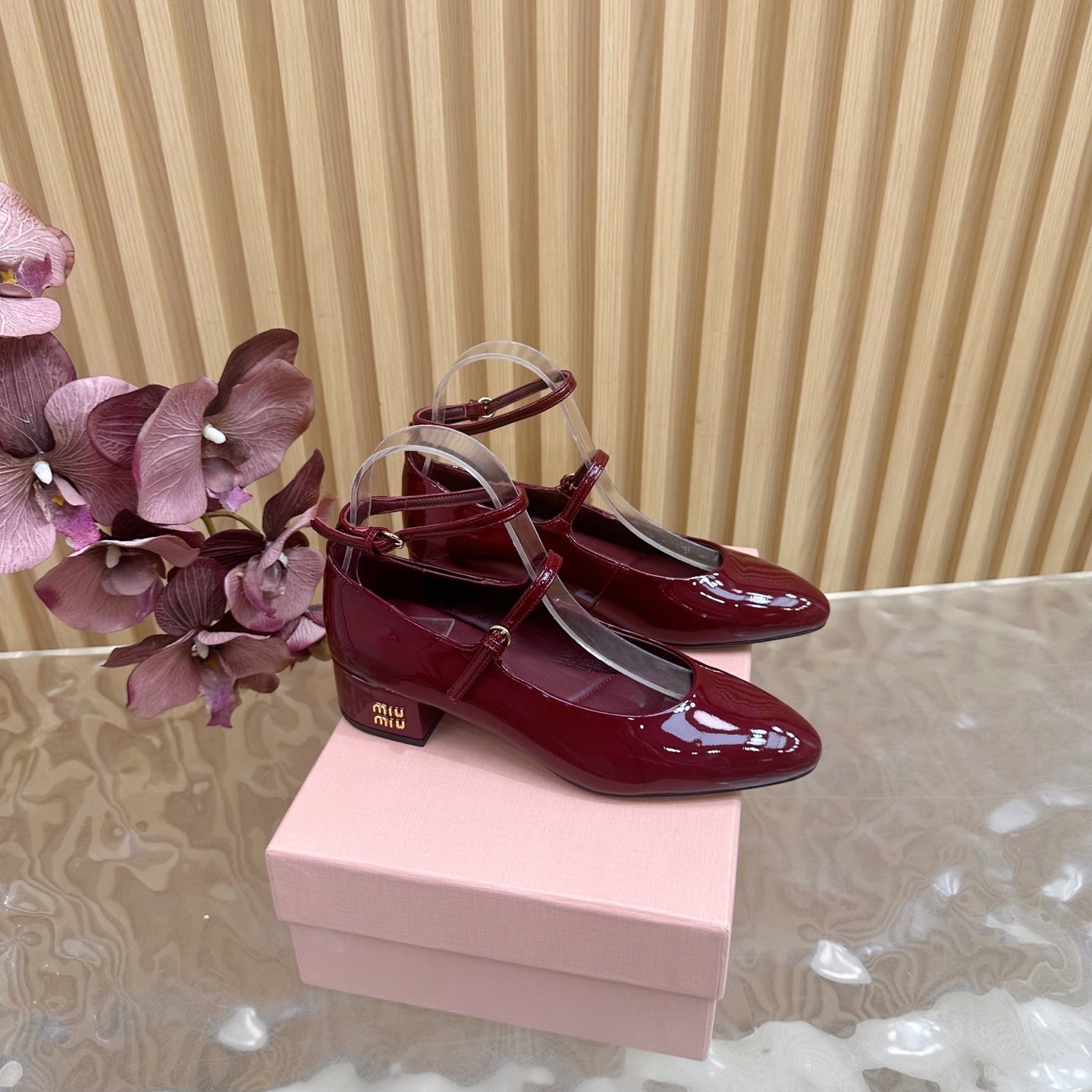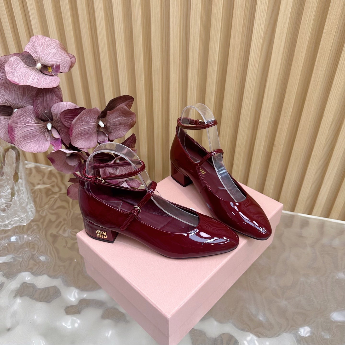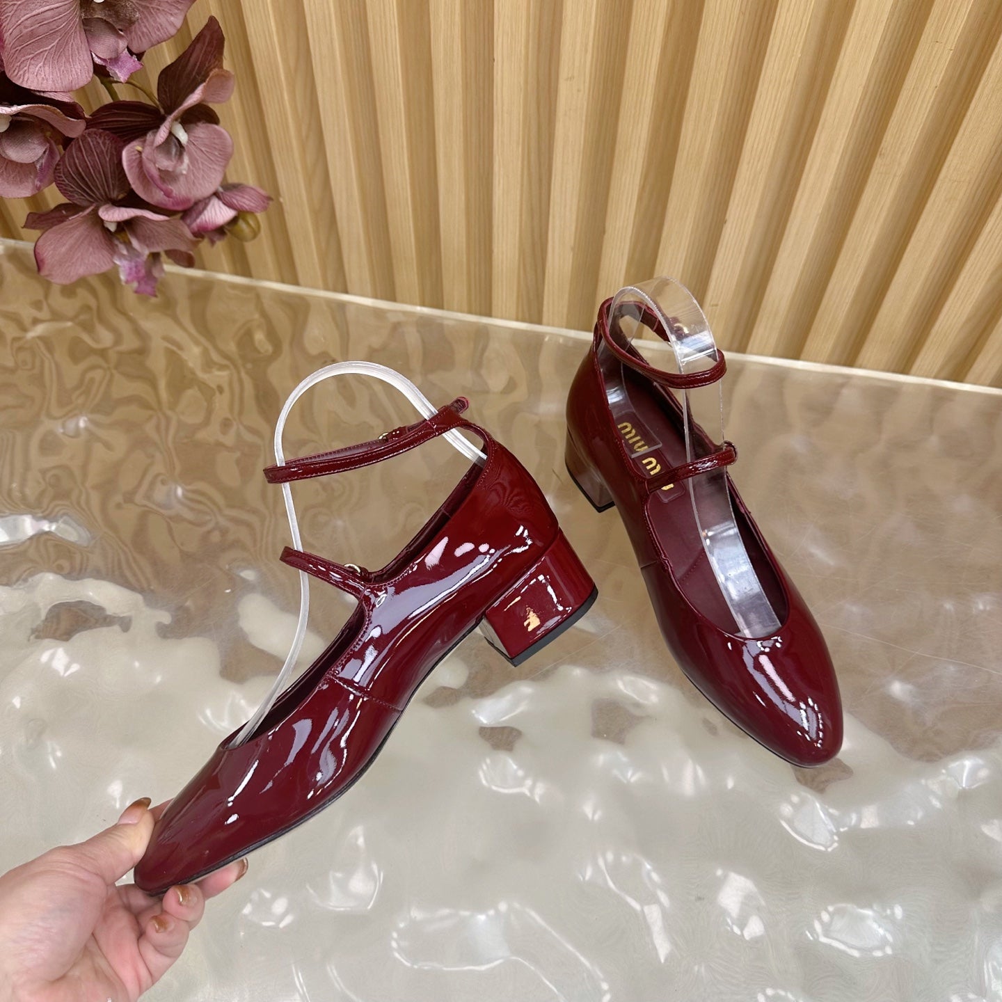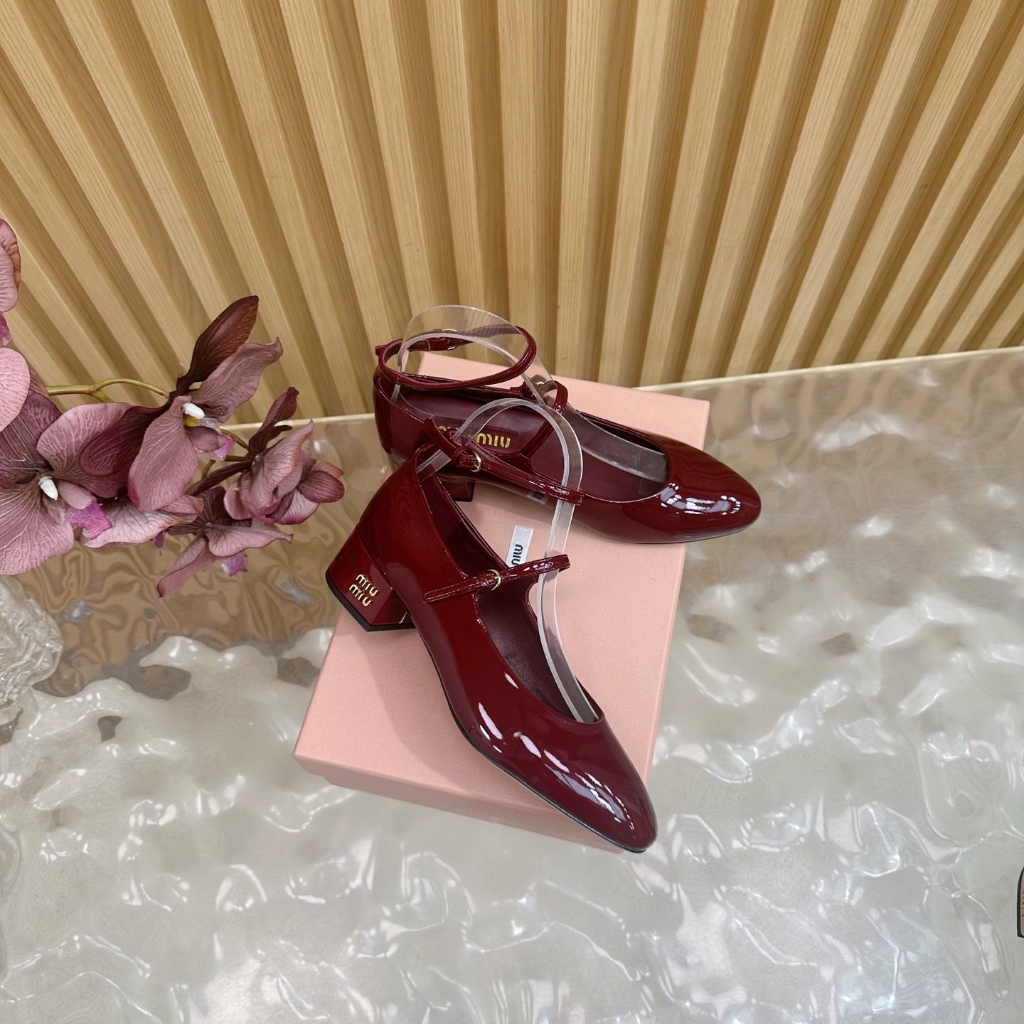 Miu Slingback Pumps With Straps 45mm Deep Red Patent Leather 498173