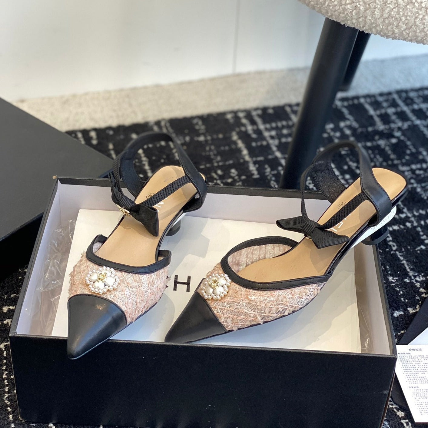 slingbacks 45 beige black tweed lambskin