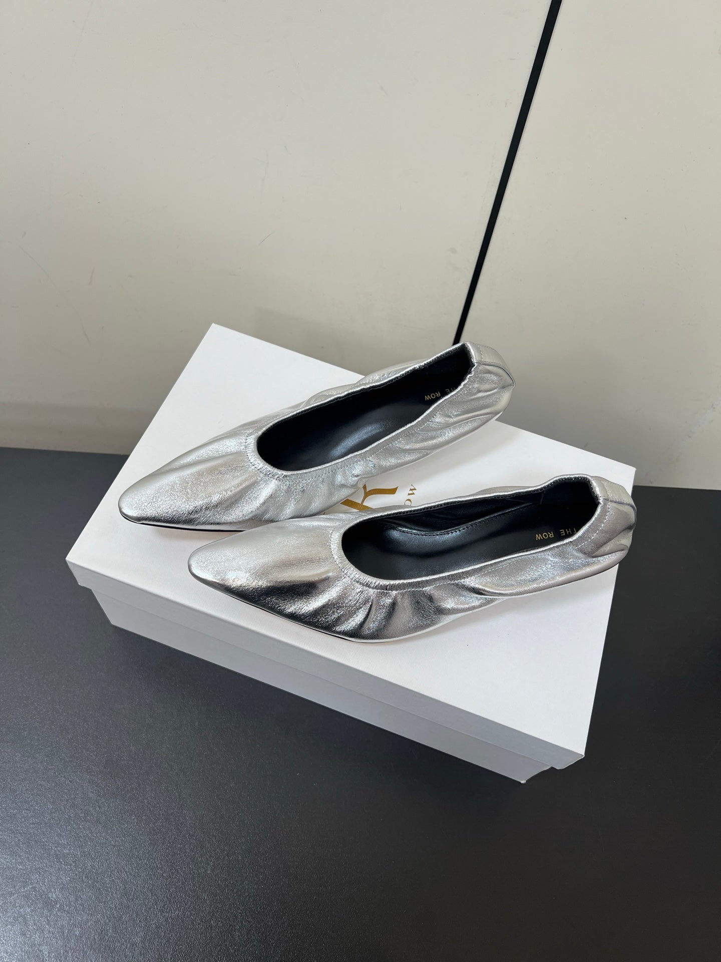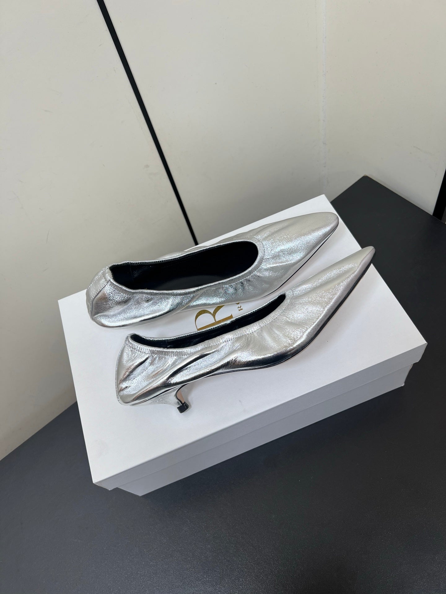 The Row Ava Gathered Leather 35mm Pumps Silver Metallic Calfskin 340013