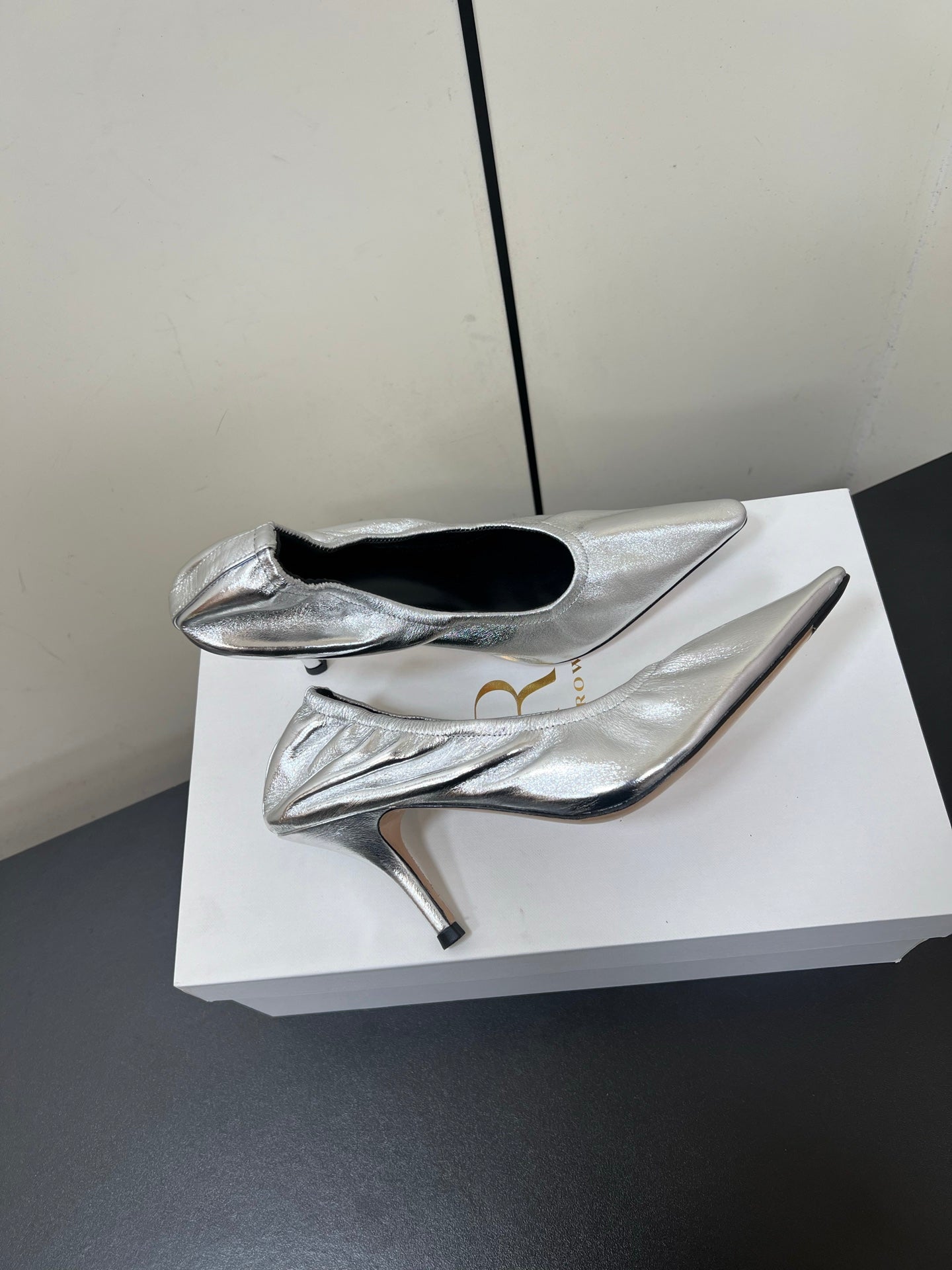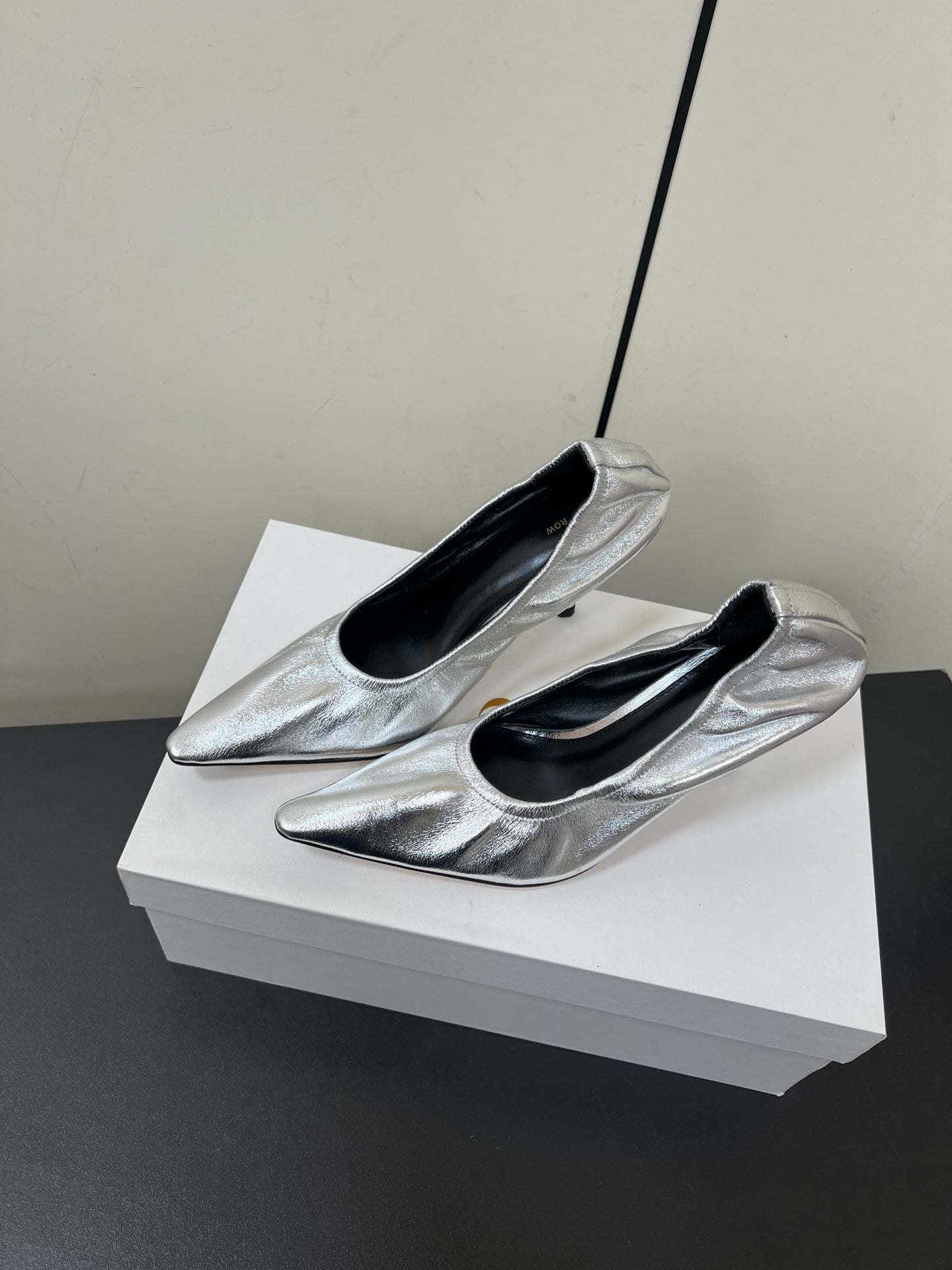 The Row Ava Gathered Pumps 65mm Silver Metallic Calfskin 340011
