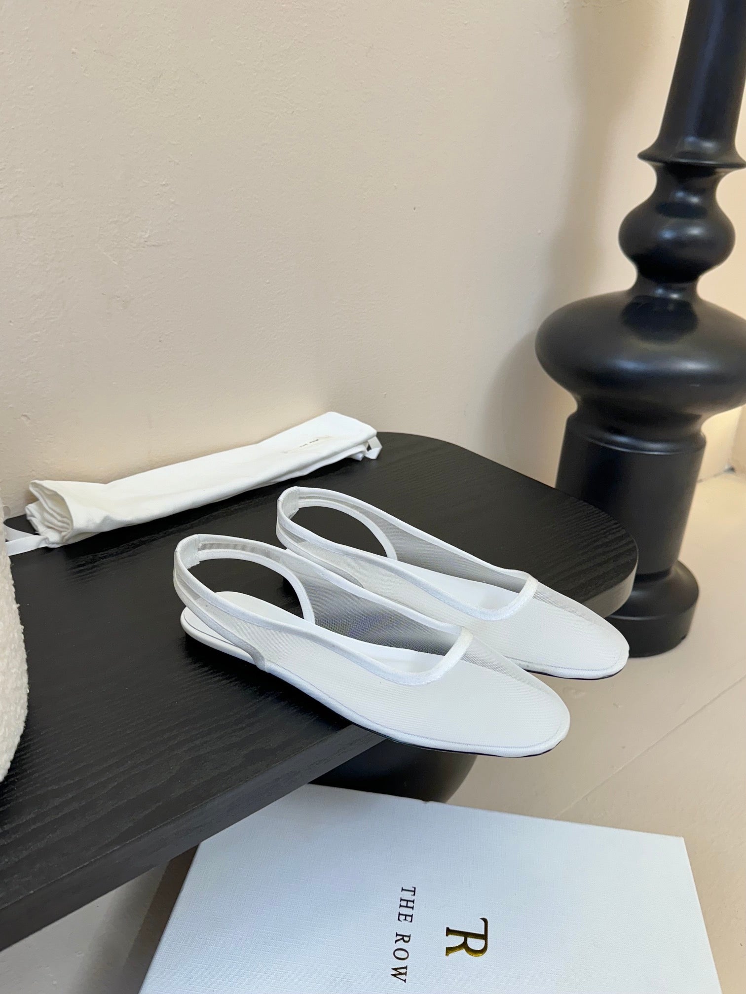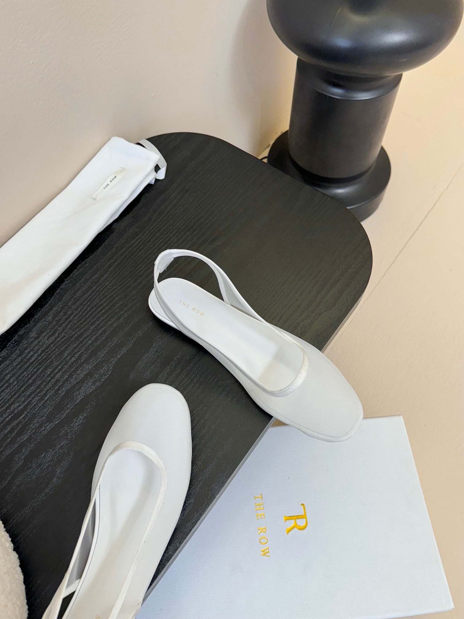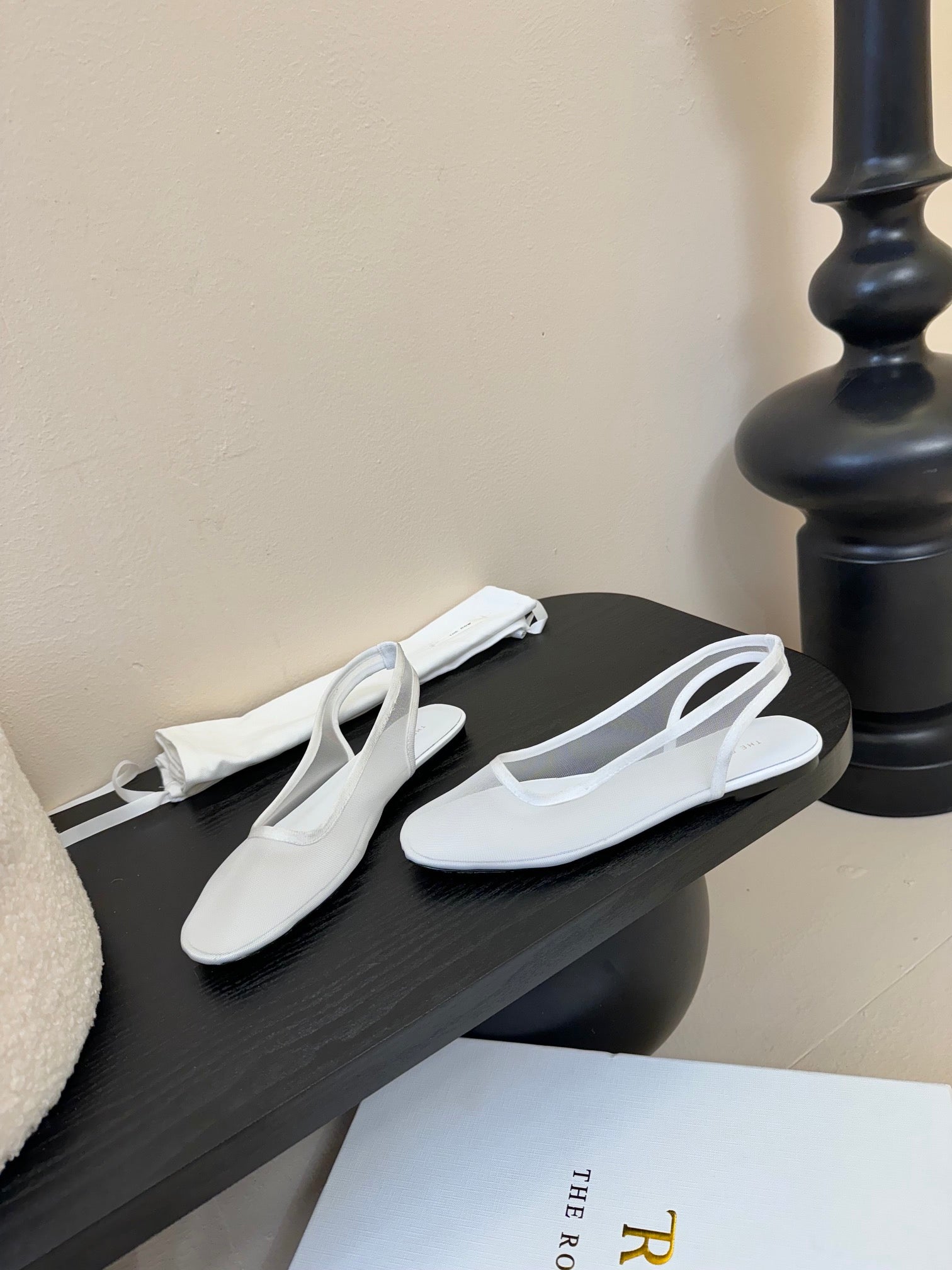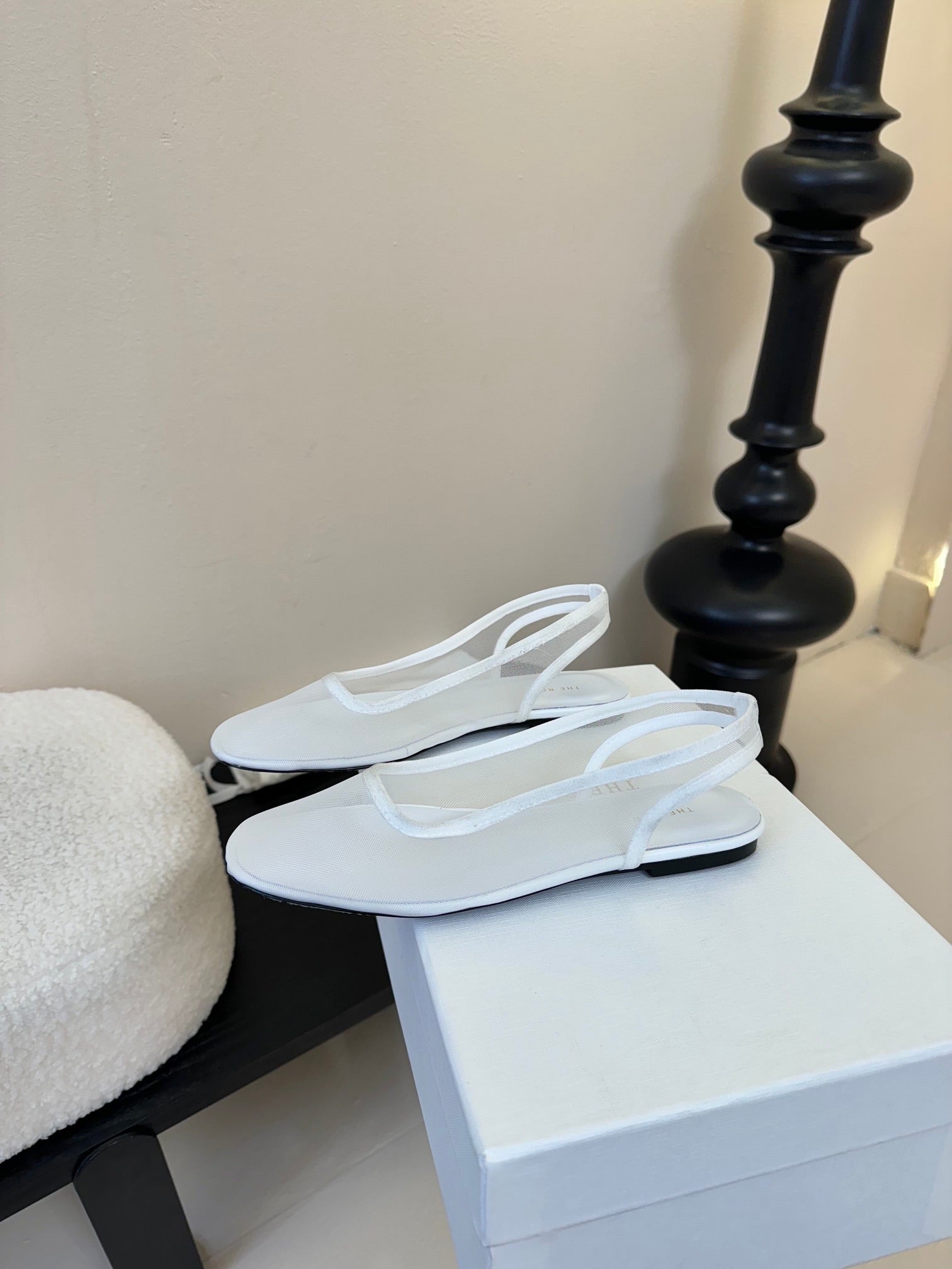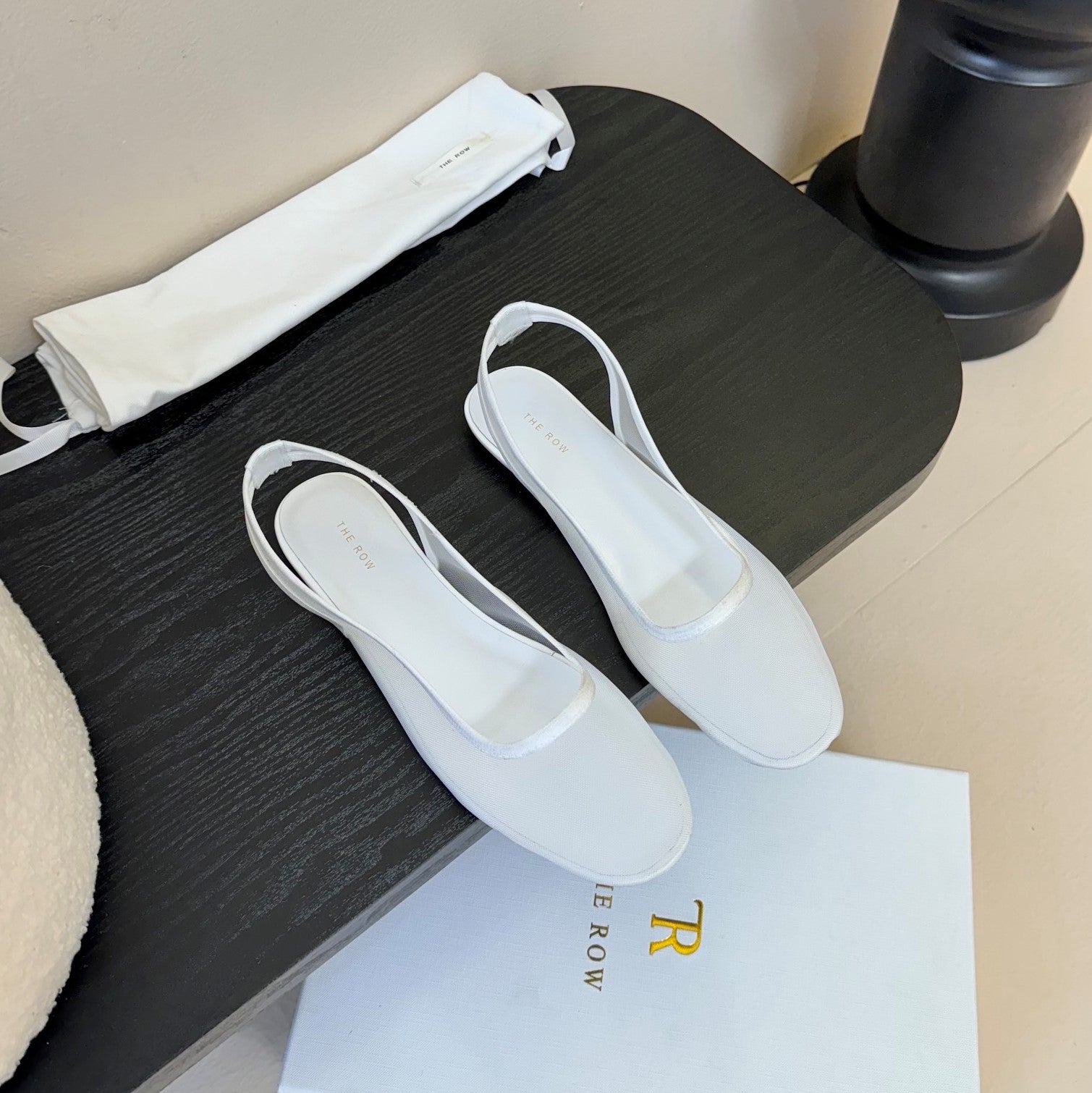 The Row Slingback Flat White Mesh And Sheepskin 334165