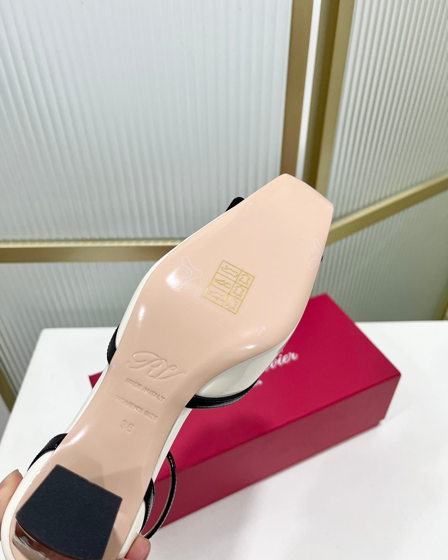 Trompette Metal Buckle Slingback Pump 45 Black White Patent Leather