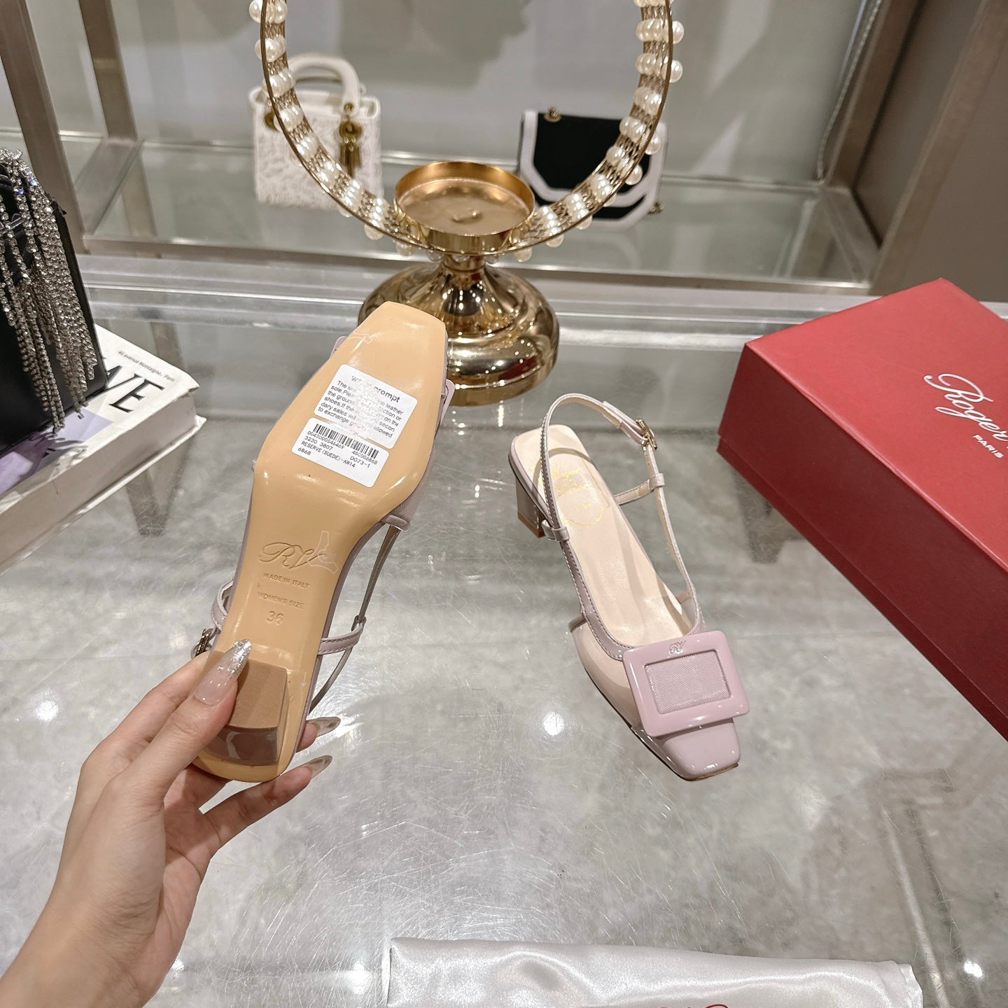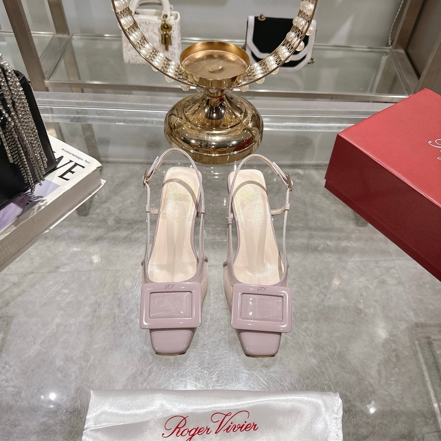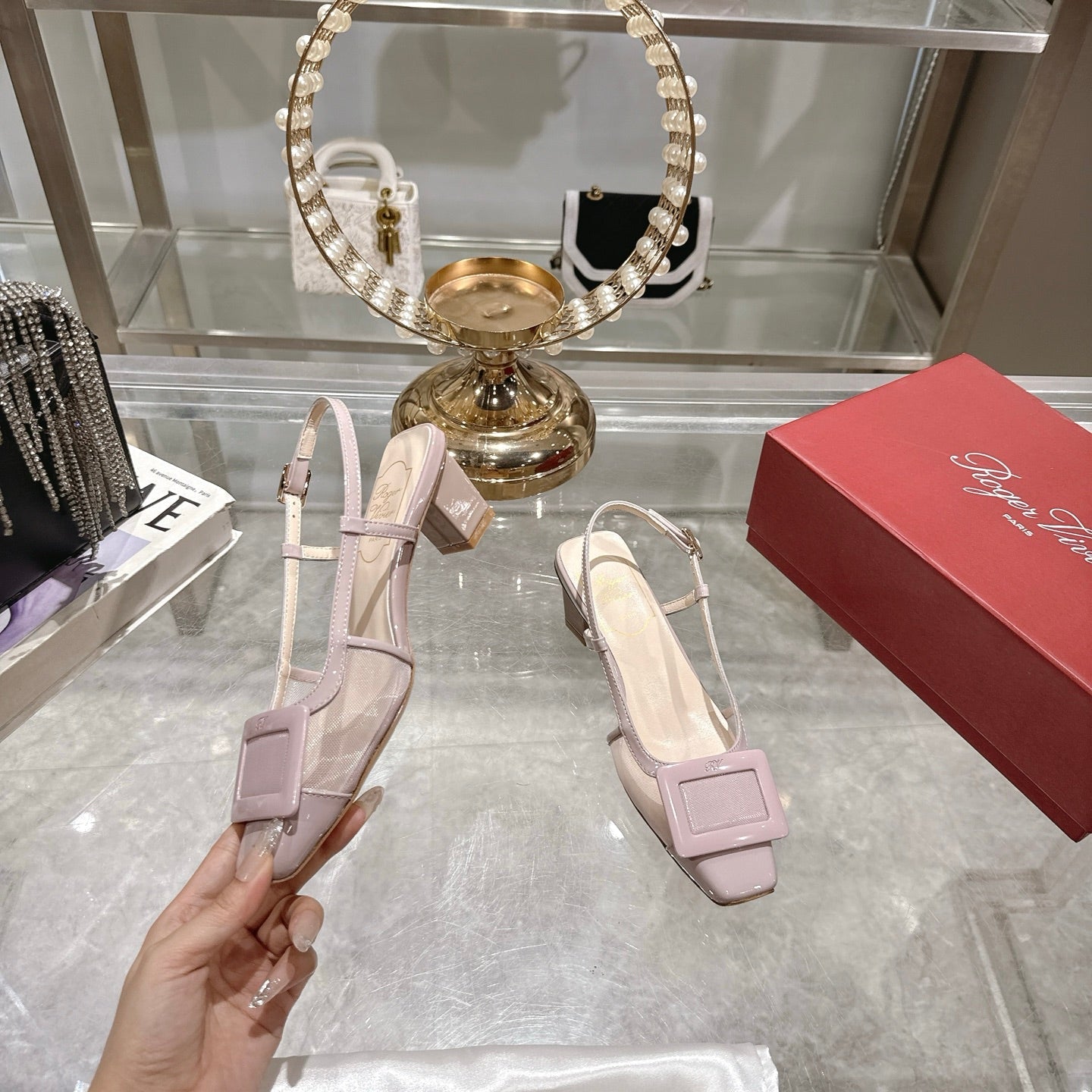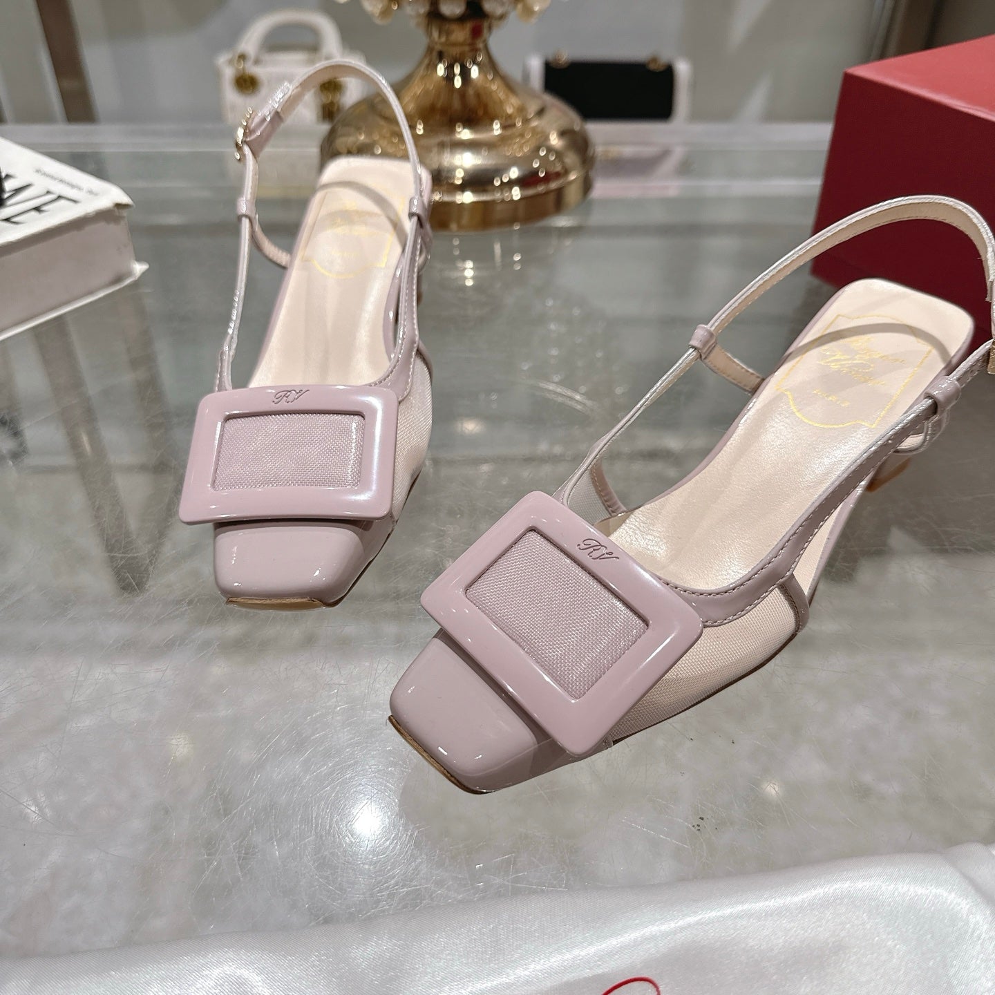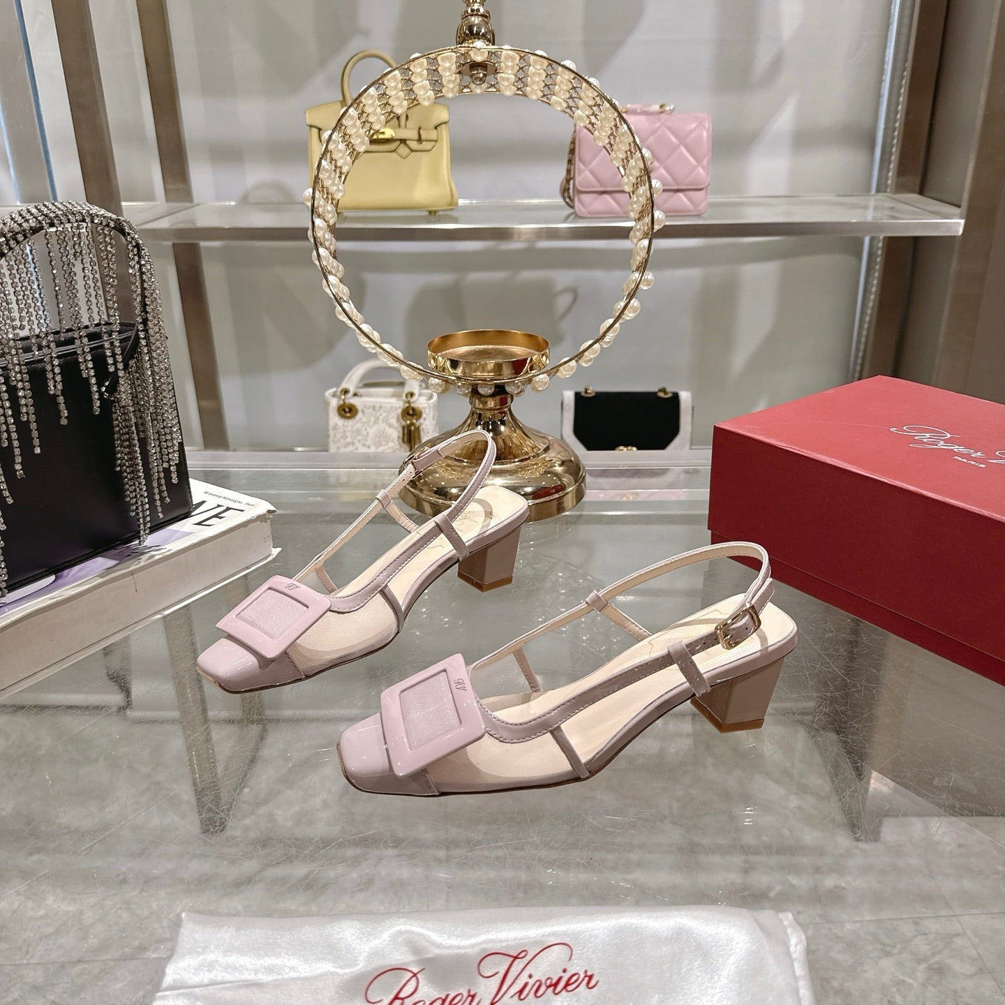 Viv 25 Slingback Pink Mesh Italian Leather 300778