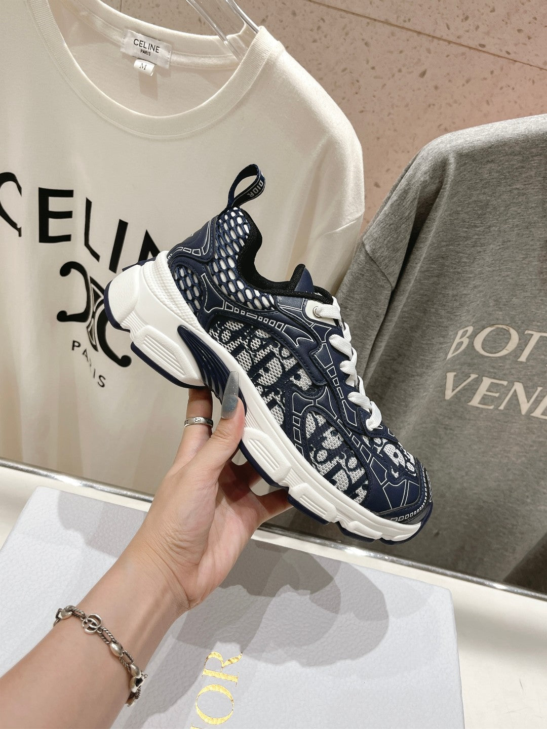CD Vibe Sneaker Charcoal Blue Polyester Mesh Fabric And Cowhide