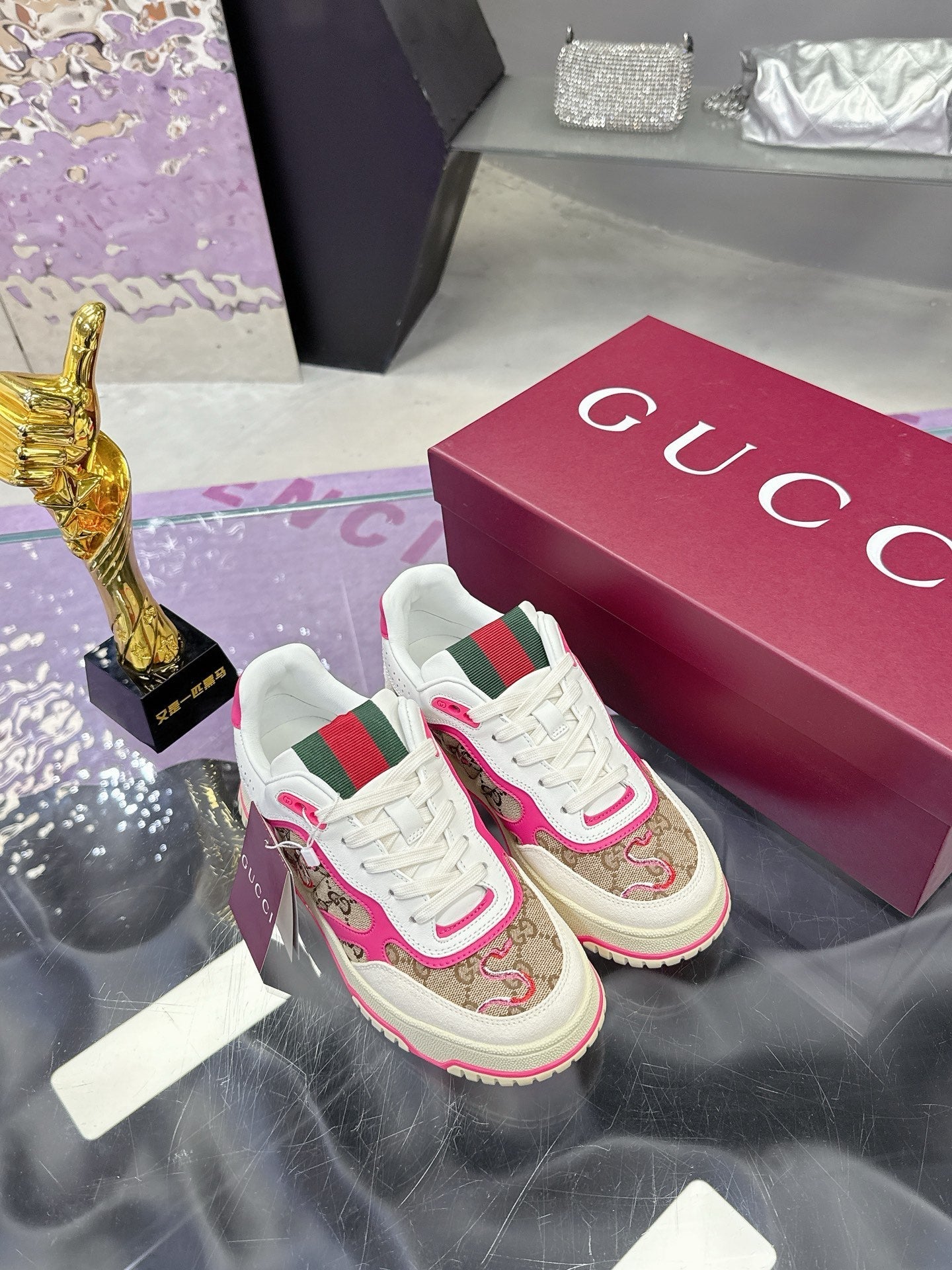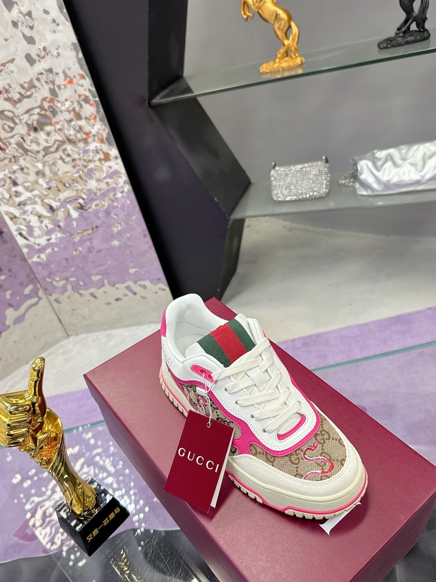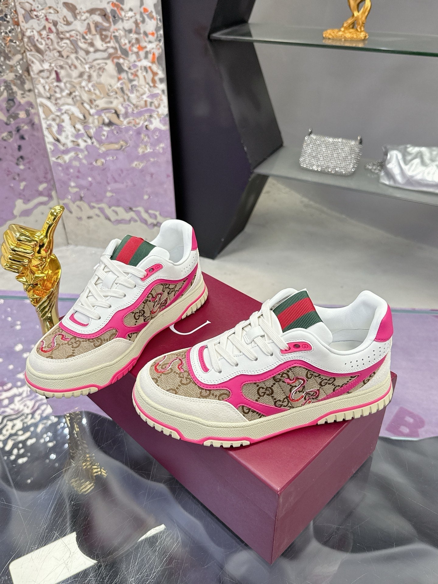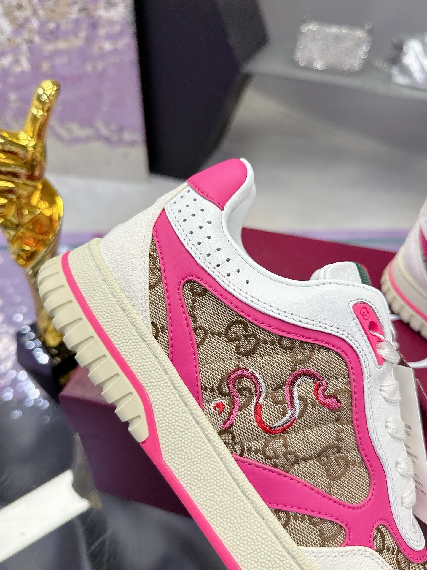 GG Men's 25 Snake Sneaker Brown Pink Cowhide 574716