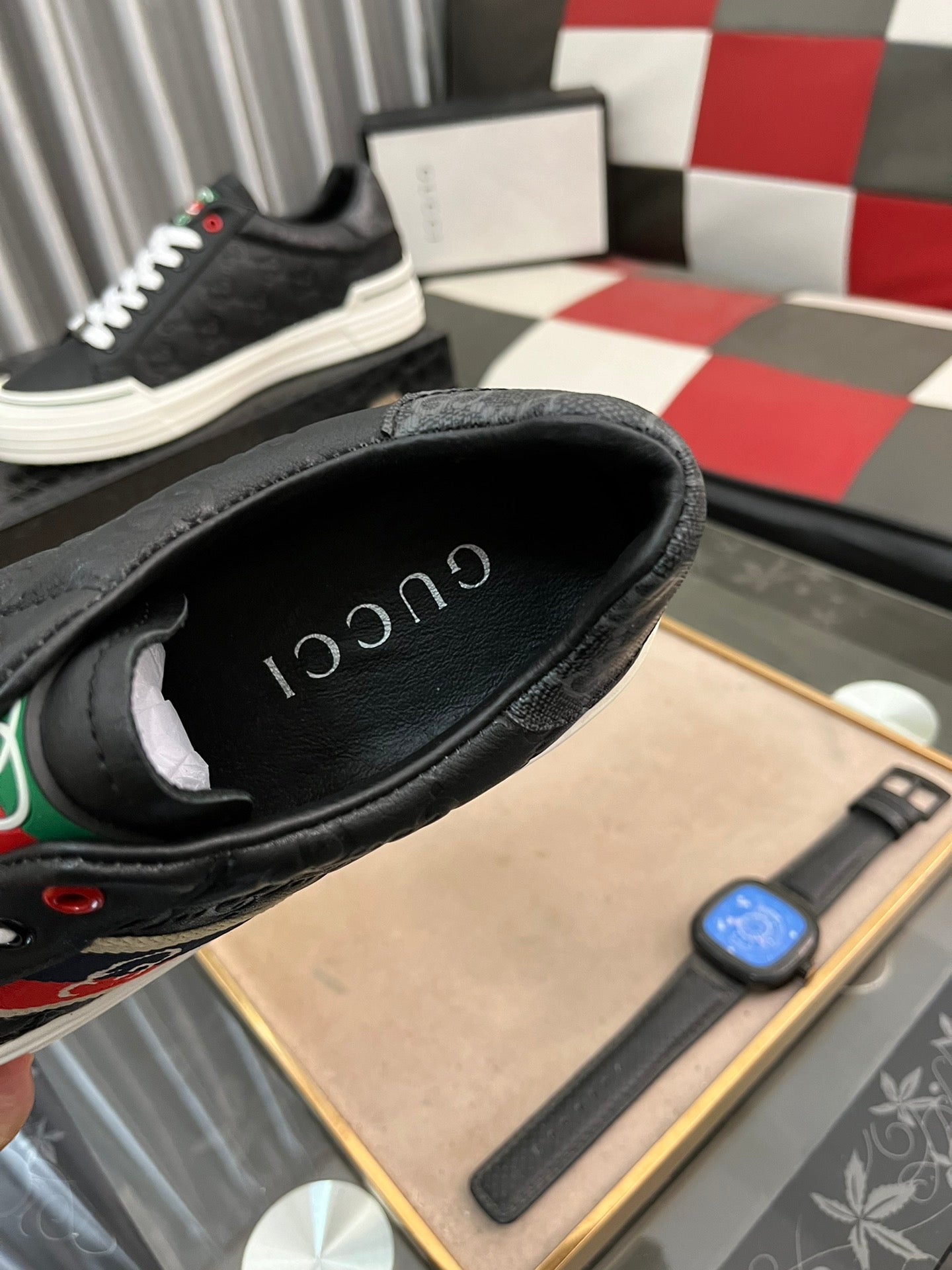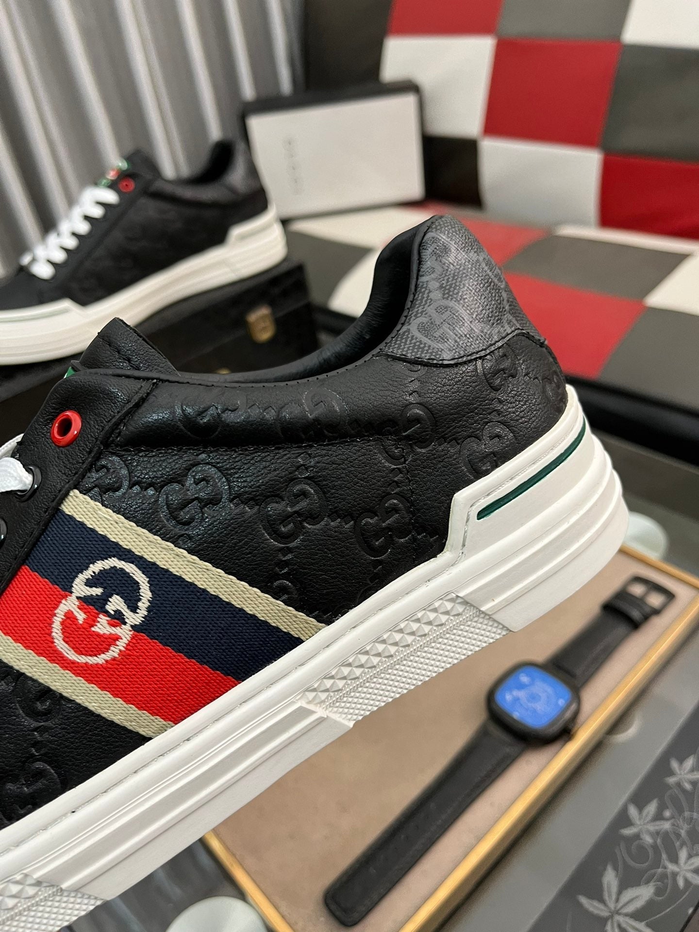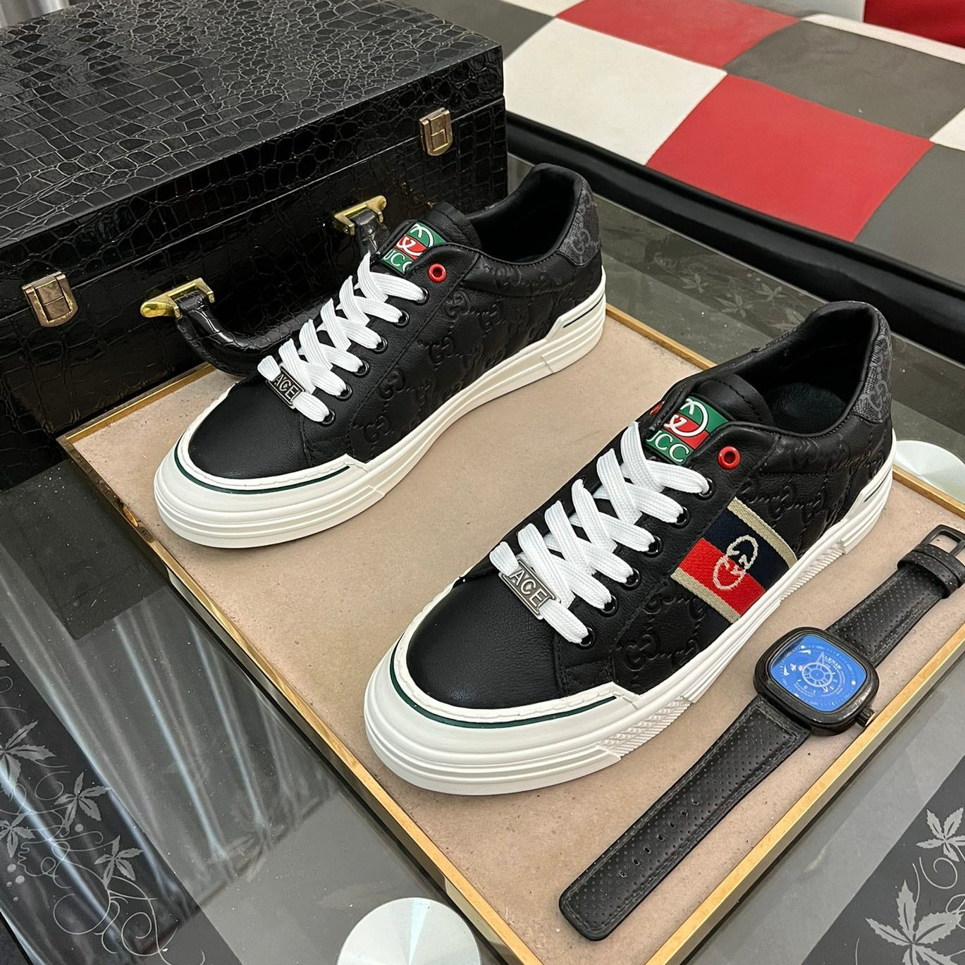 GG Men's ACE Sneaker Black Embossed Cowhide 543296