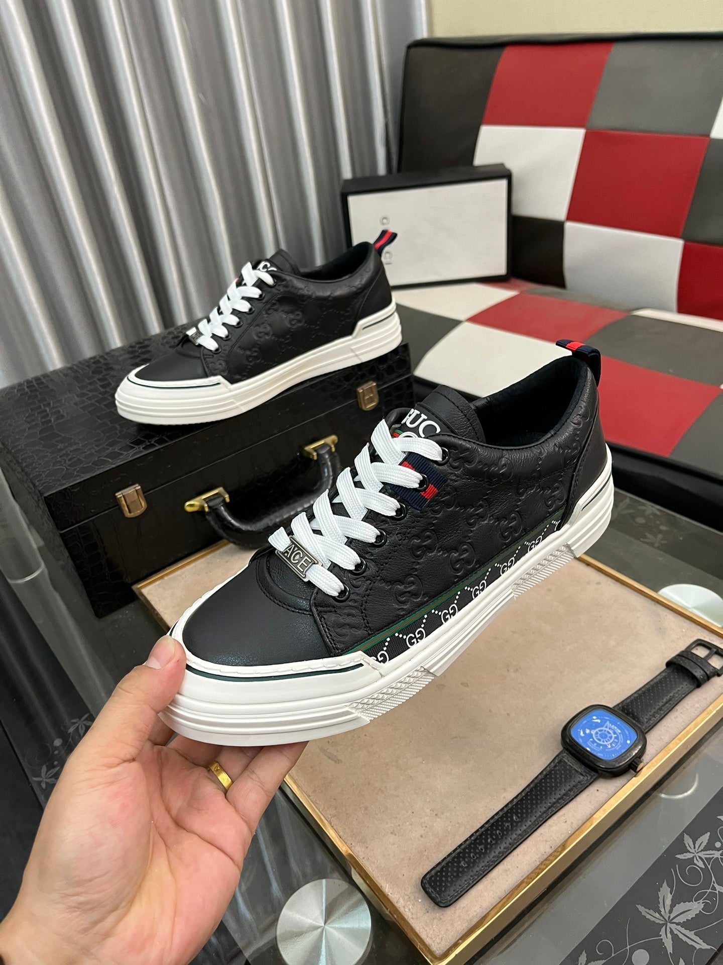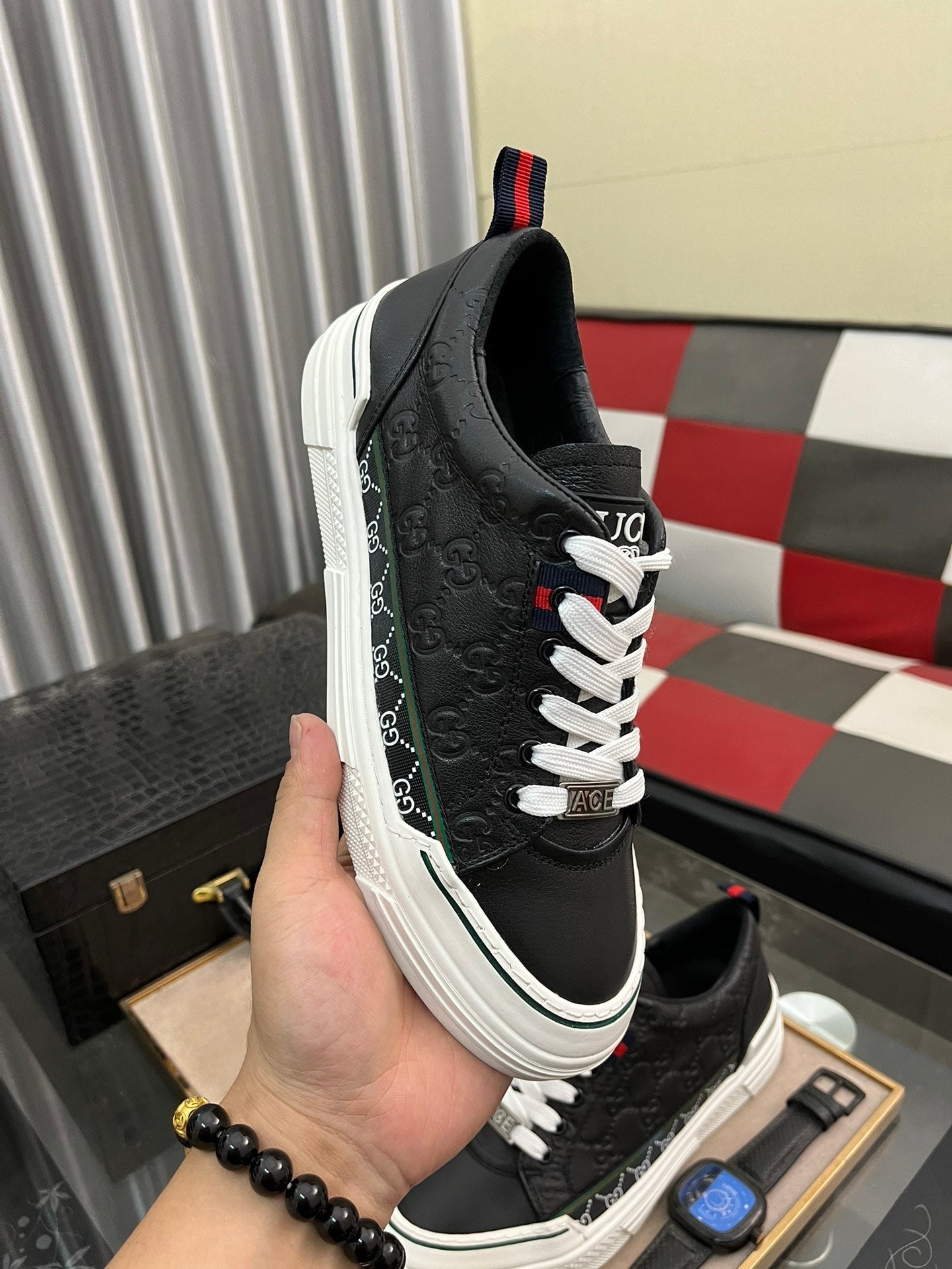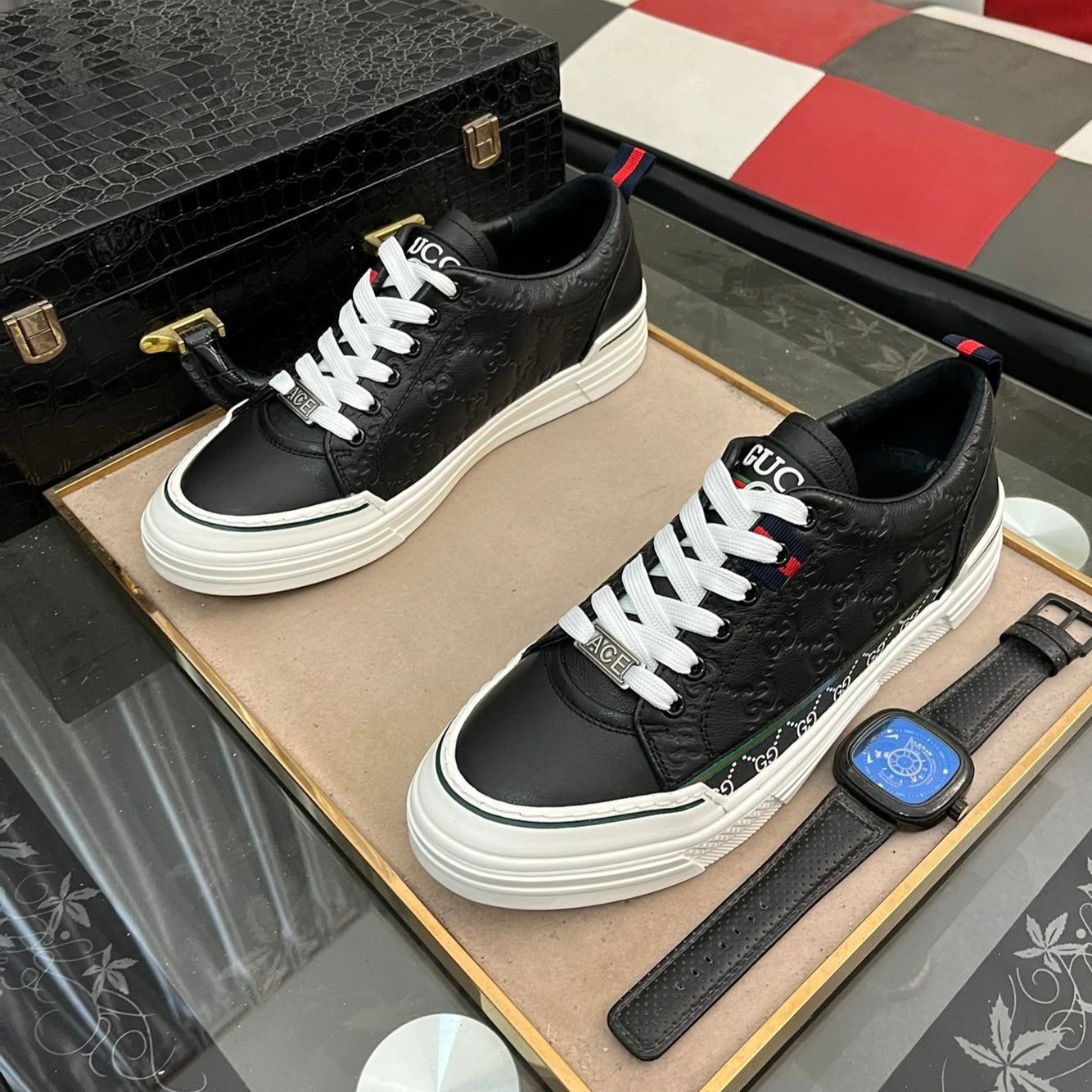GG Men's ACE Sneaker Black Embossed Cowhide 832403