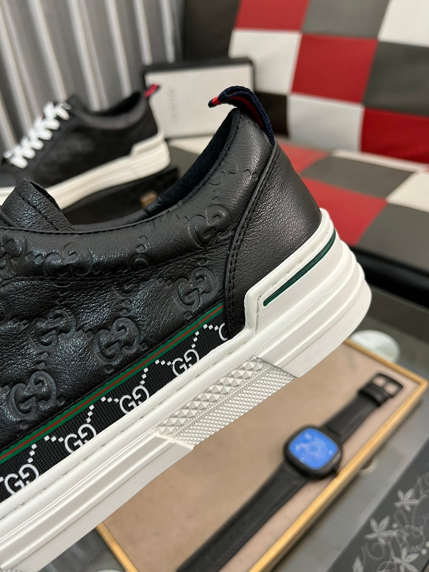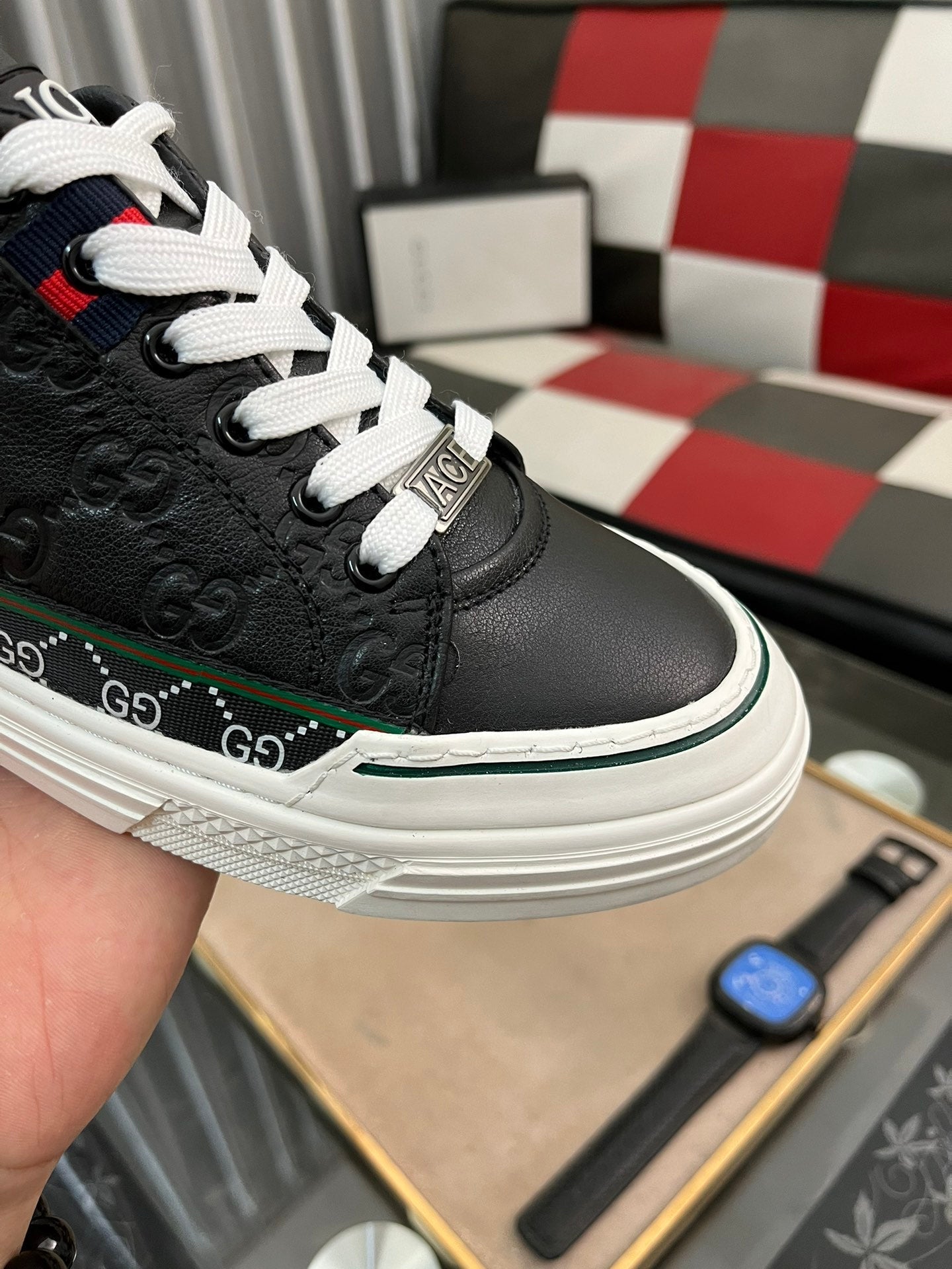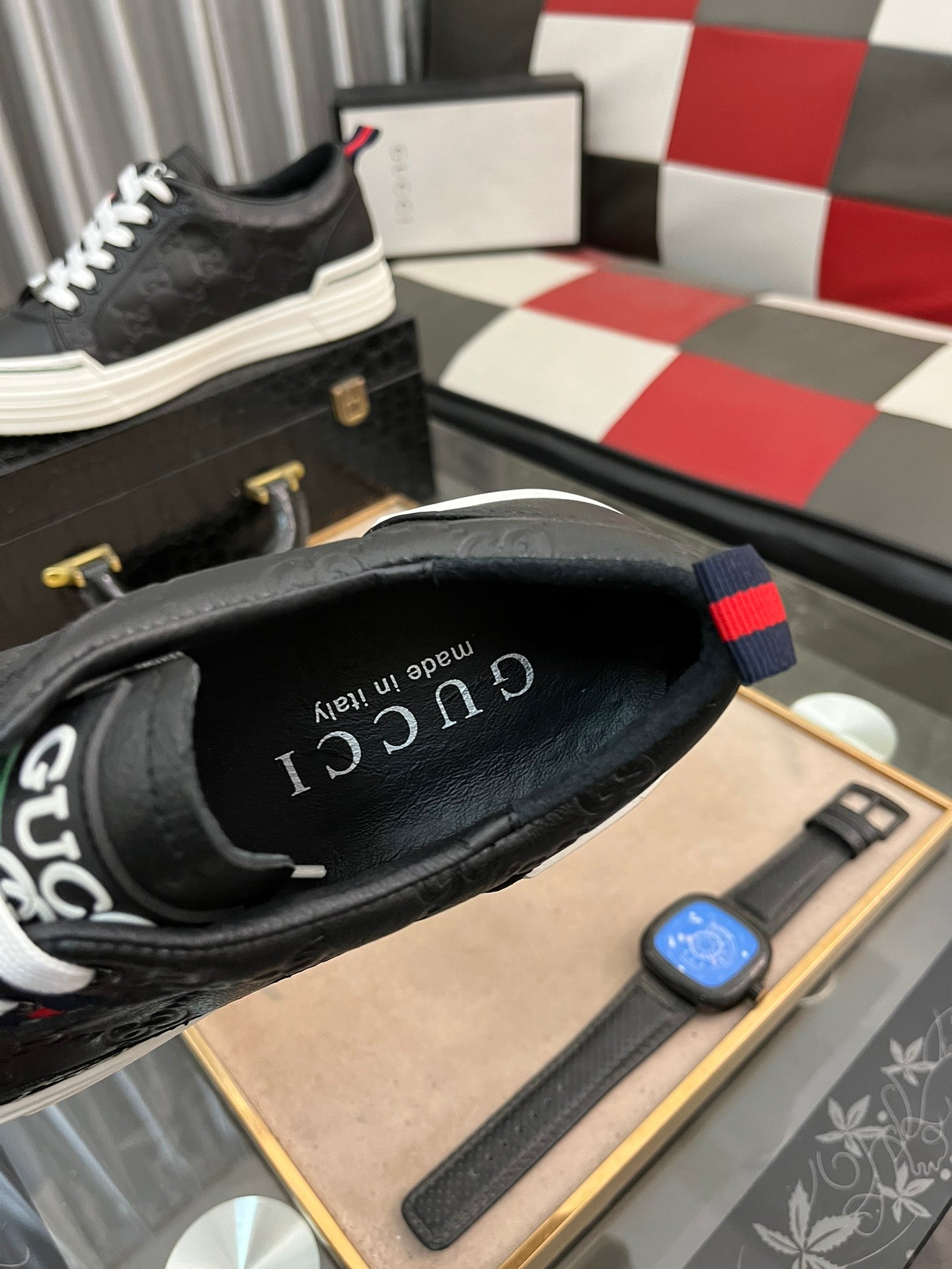 GG Men's ACE Sneaker Black Embossed Cowhide 832403