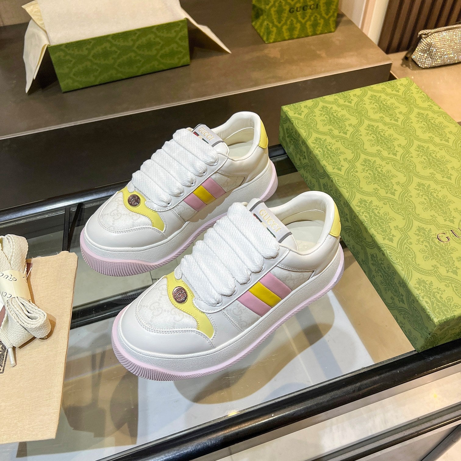 GG Men's Screener Sneaker White Canvas Sheepskin 523605