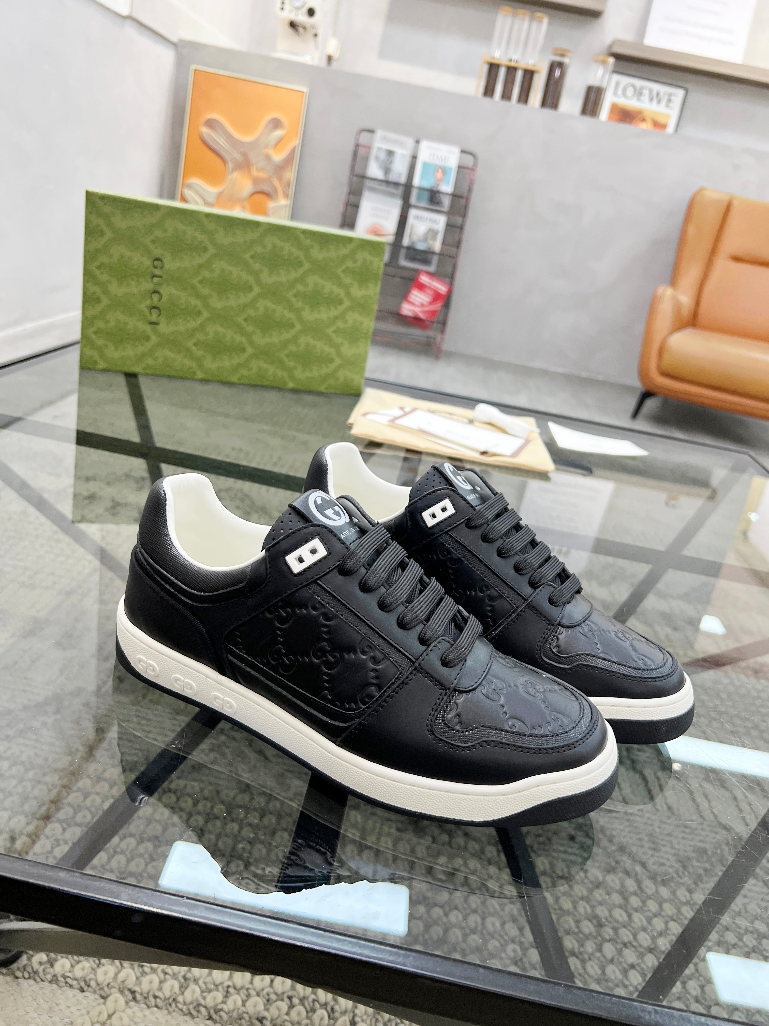 GG Men's Sneaker Black White Embossed Cowhide 525909