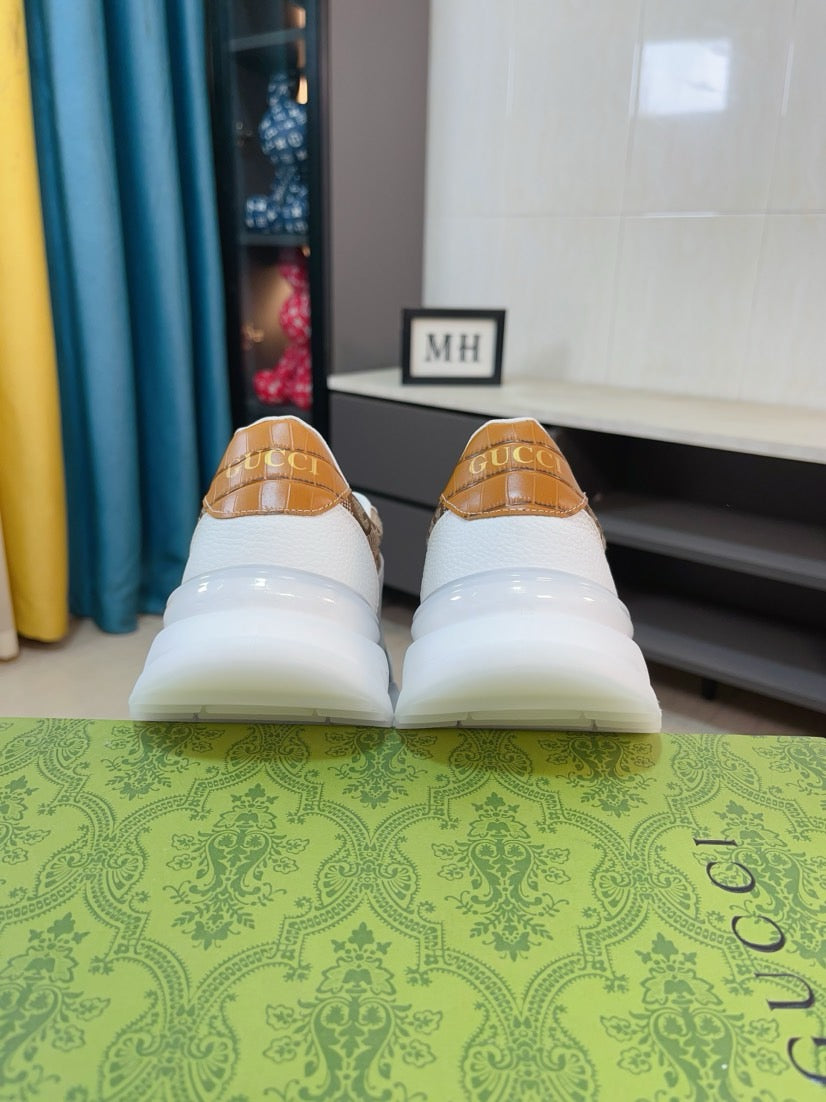 GG Men's Sneaker Brown White Canvas Calfskin 523337