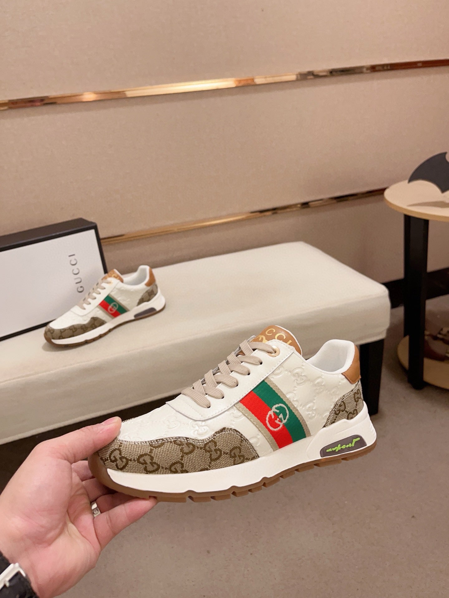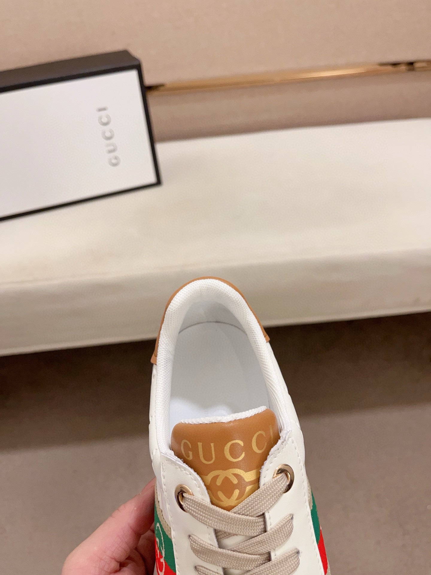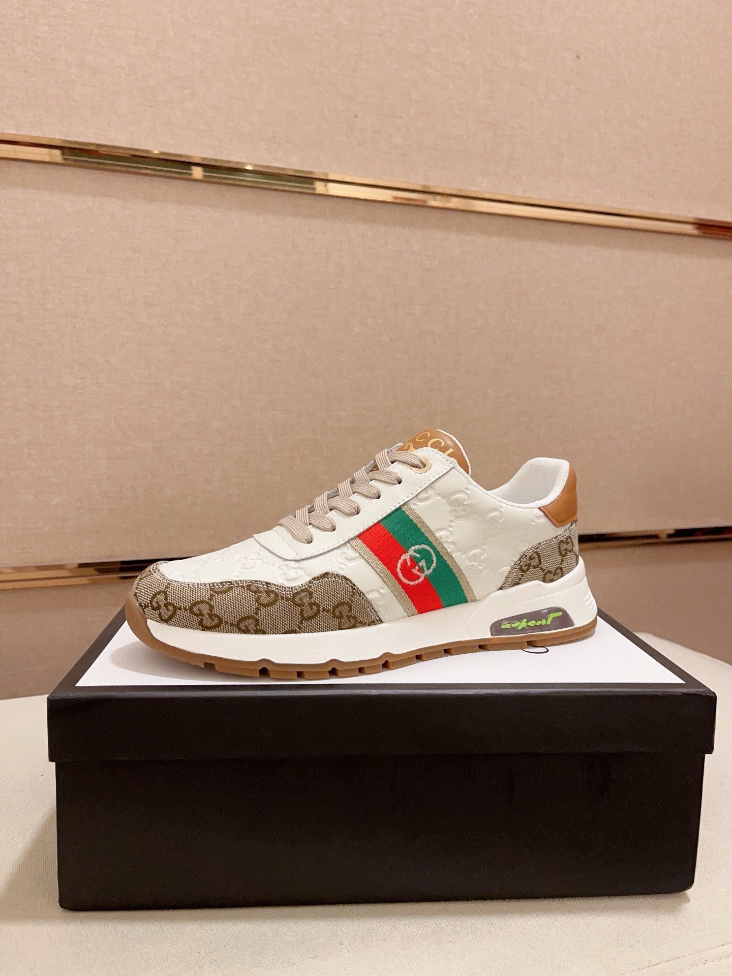 GG Men's Sneaker White Brown Sheepskin Fabric 529028