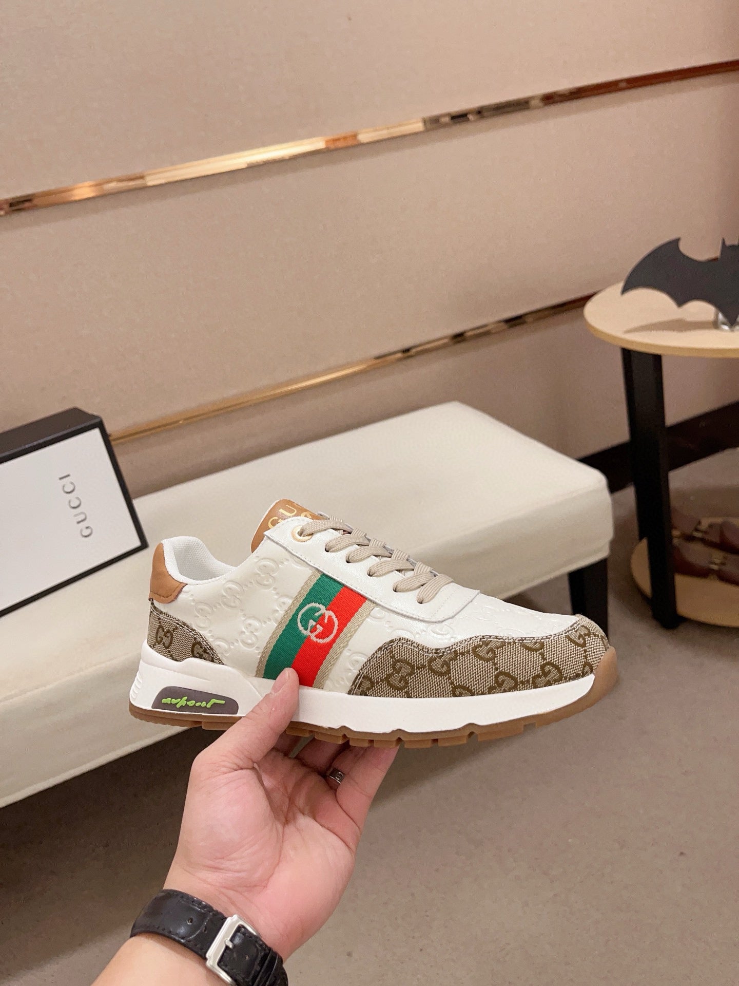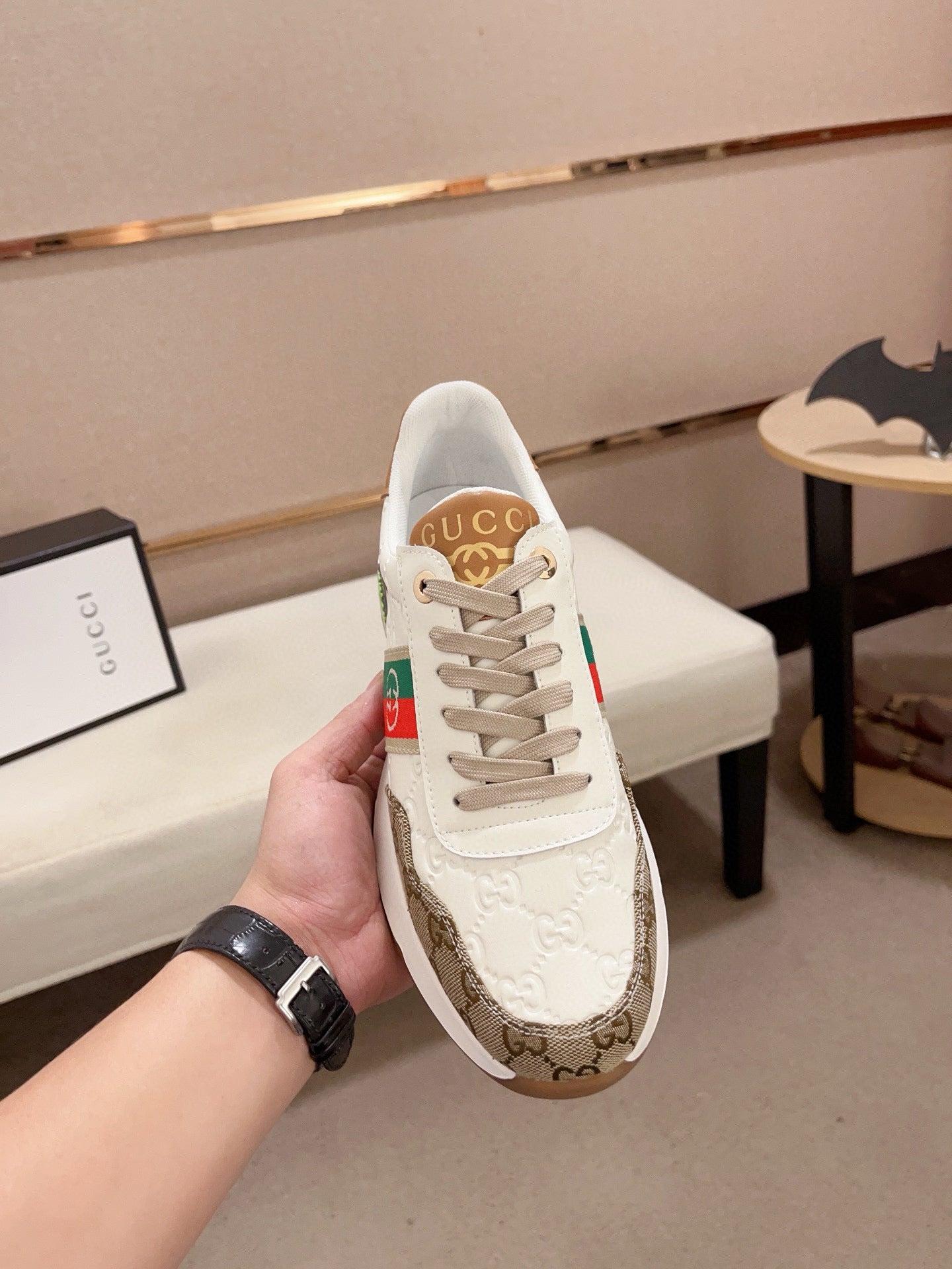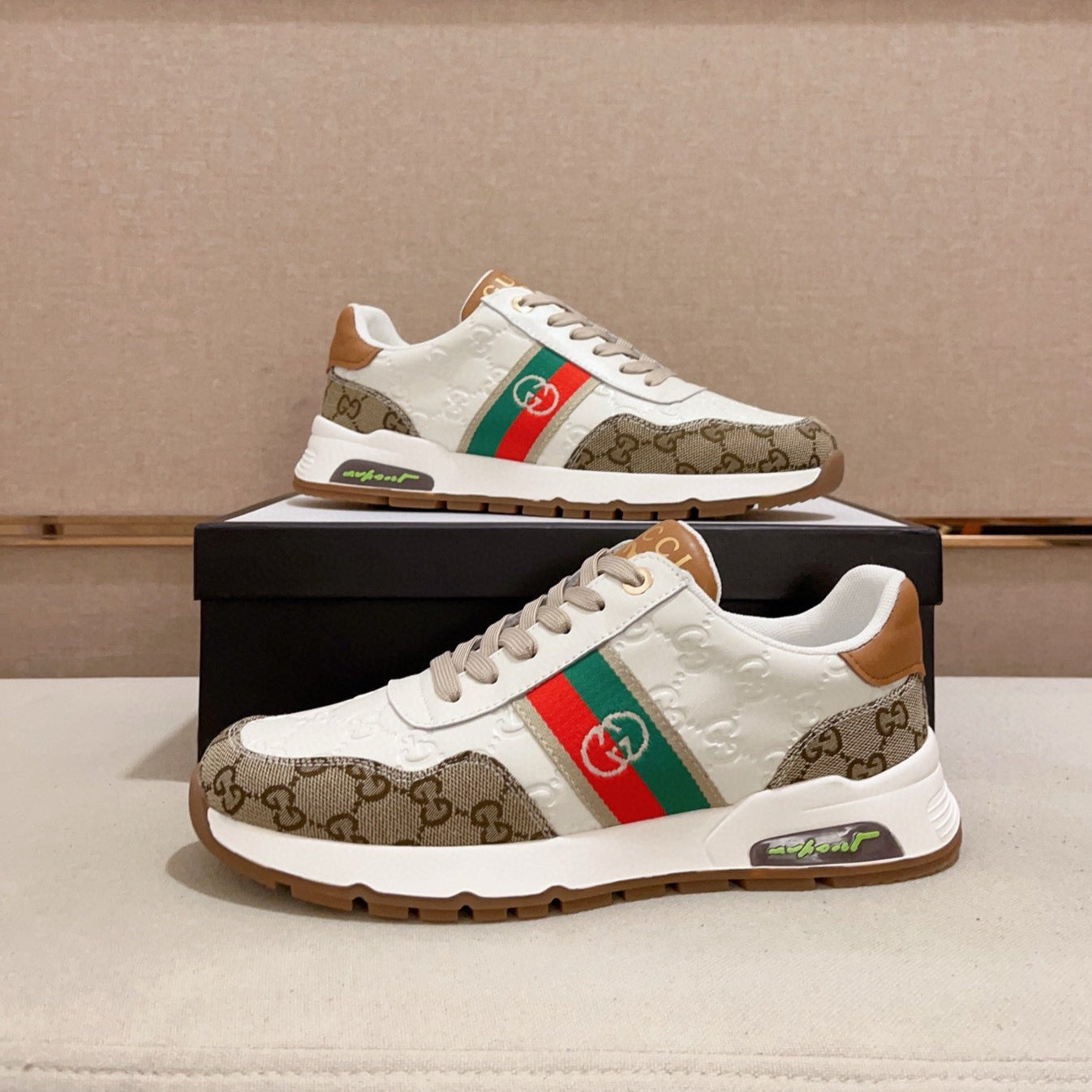 GG Men's Sneaker White Brown Sheepskin Fabric 529028