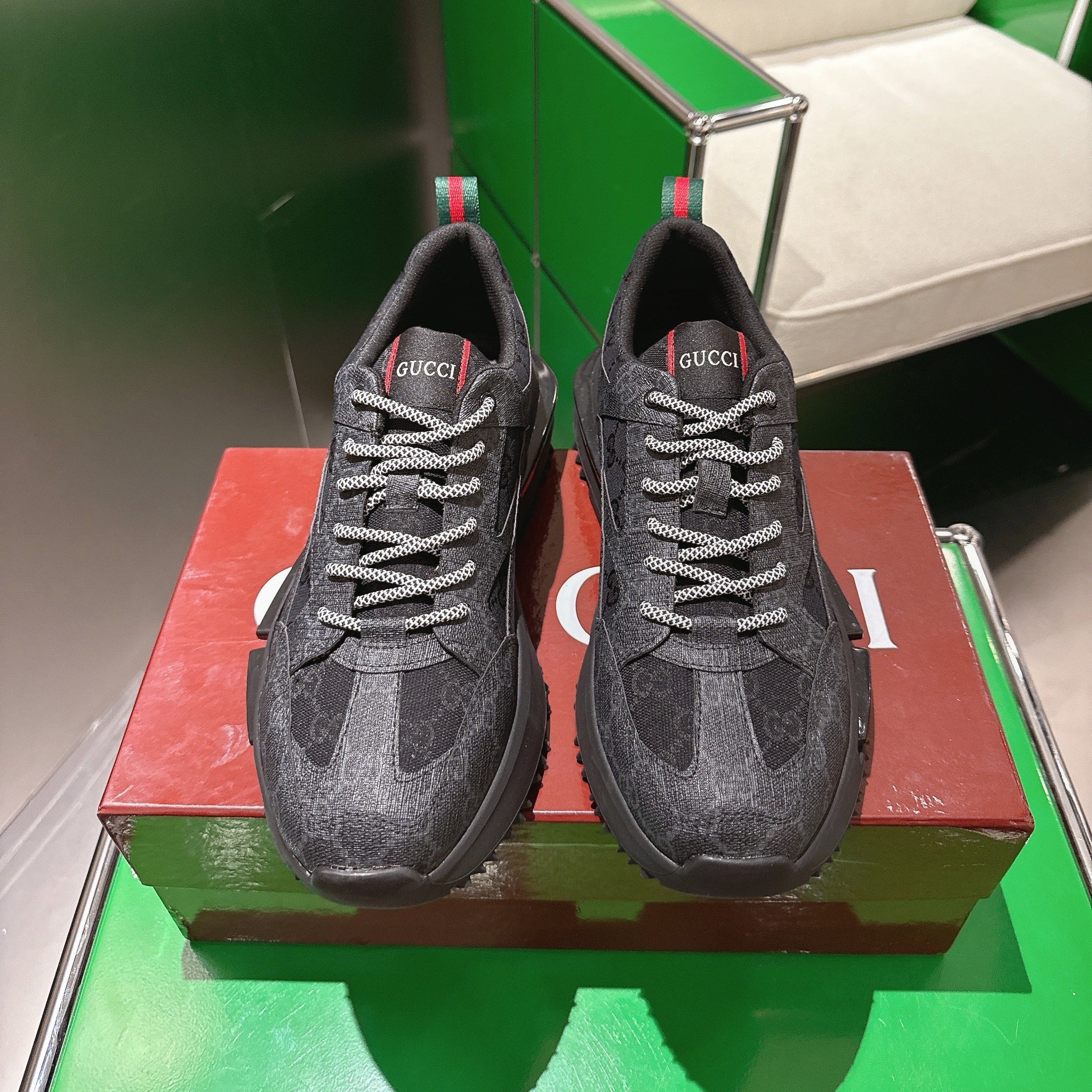Gucci Rhyton Sneakers Black and Grey Supreme Canvas 507553