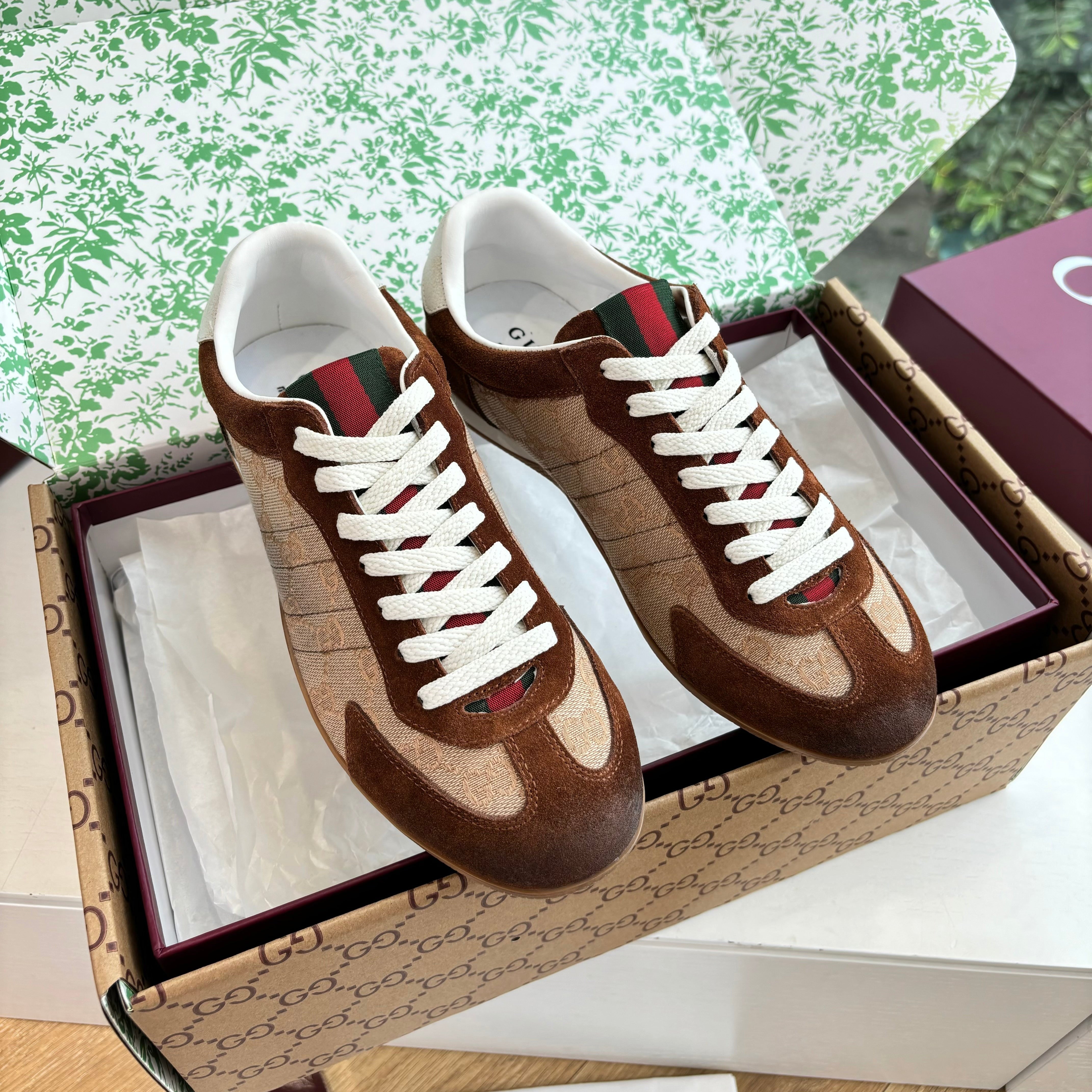 Gucci Shift Damen sneaker Varianten Schwarzes Beige & Dark Brown Canvas and Suede Trim 506841