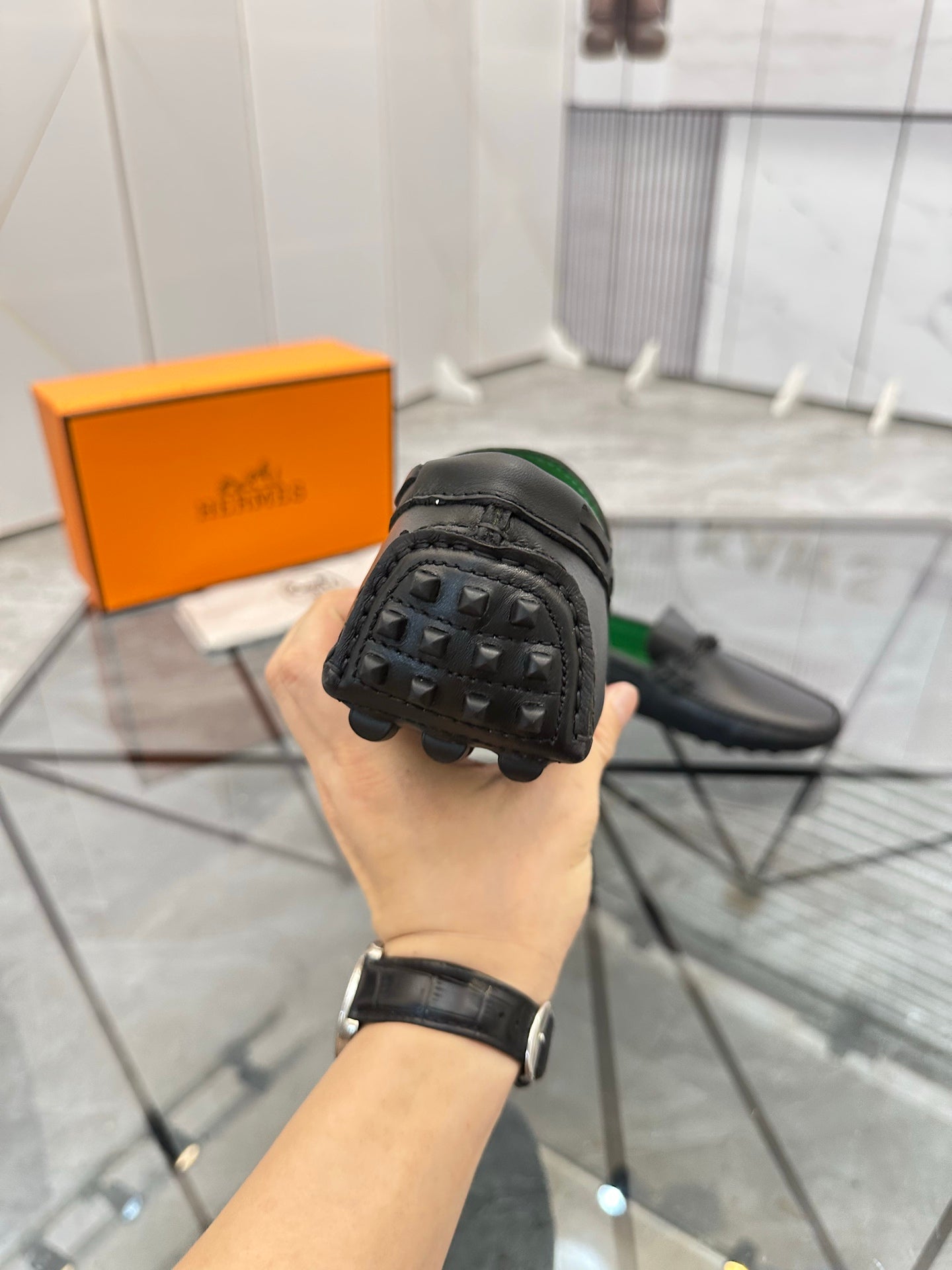 HM Men's Alessandro Loafer Black Green Cowhide 697694