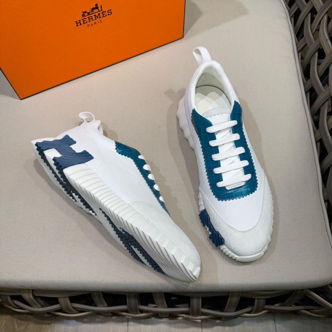 HM Men's Bouncing Sneaker White Blue Calfskin Suede