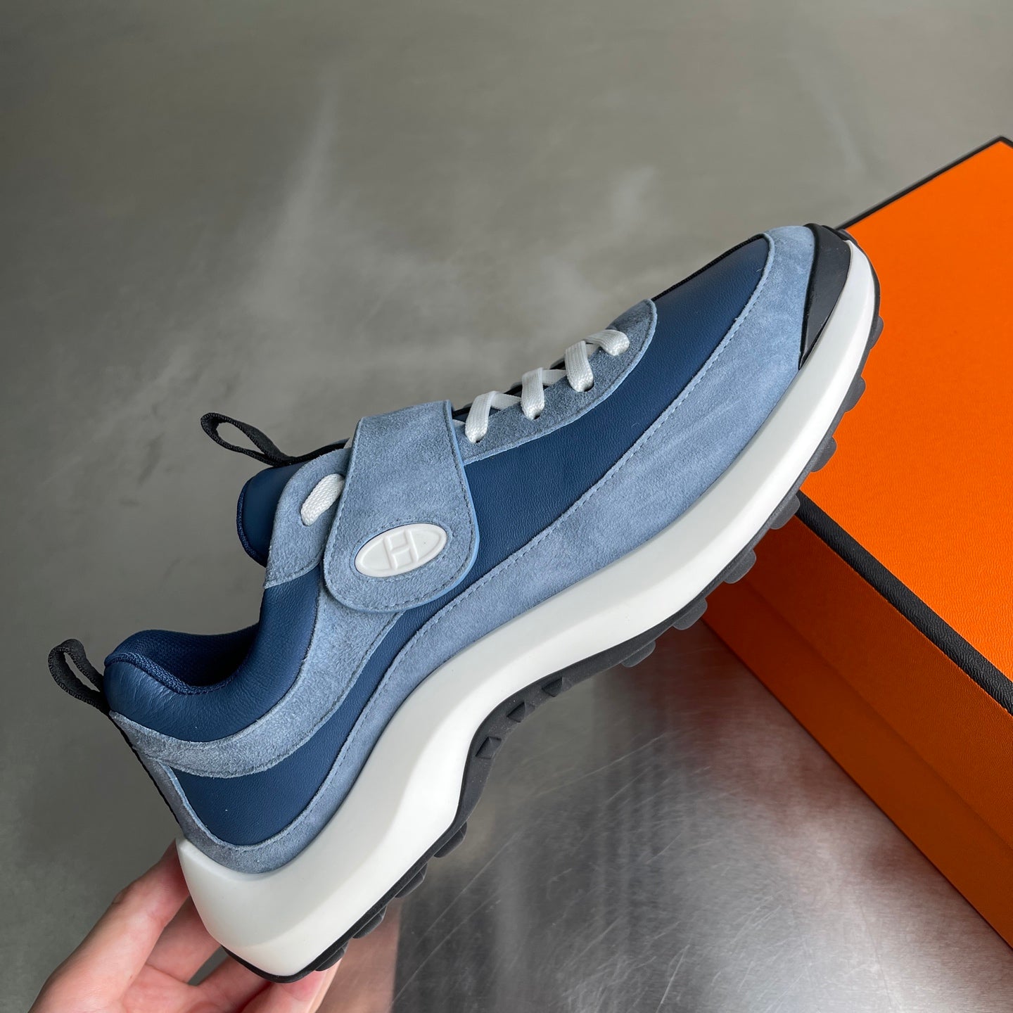 HM Men's Loop Sneaker Blue Calfskin Suede 741466