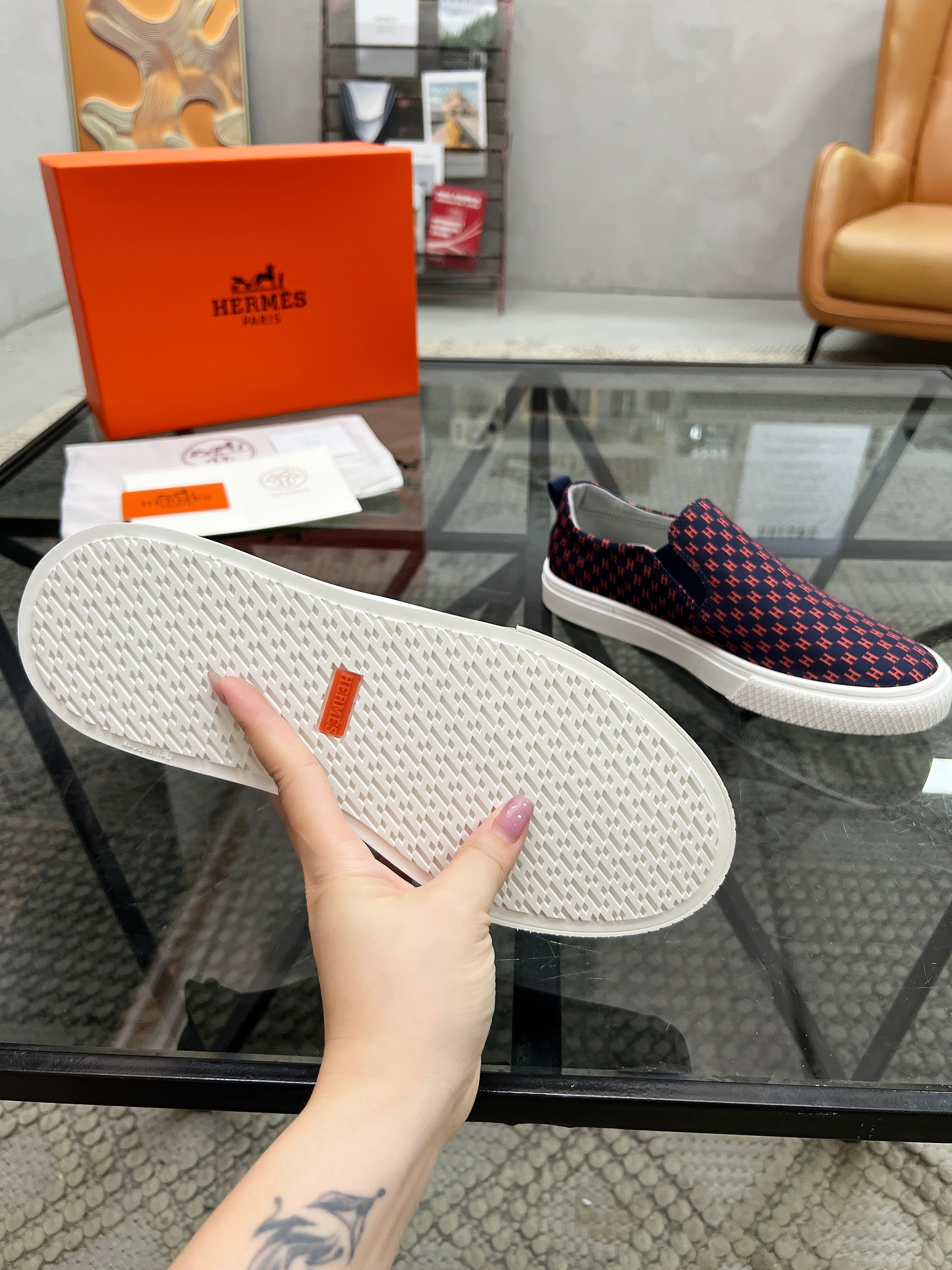 HM Men's Lucky Slip-on Blue Red Printed Fabric 741688