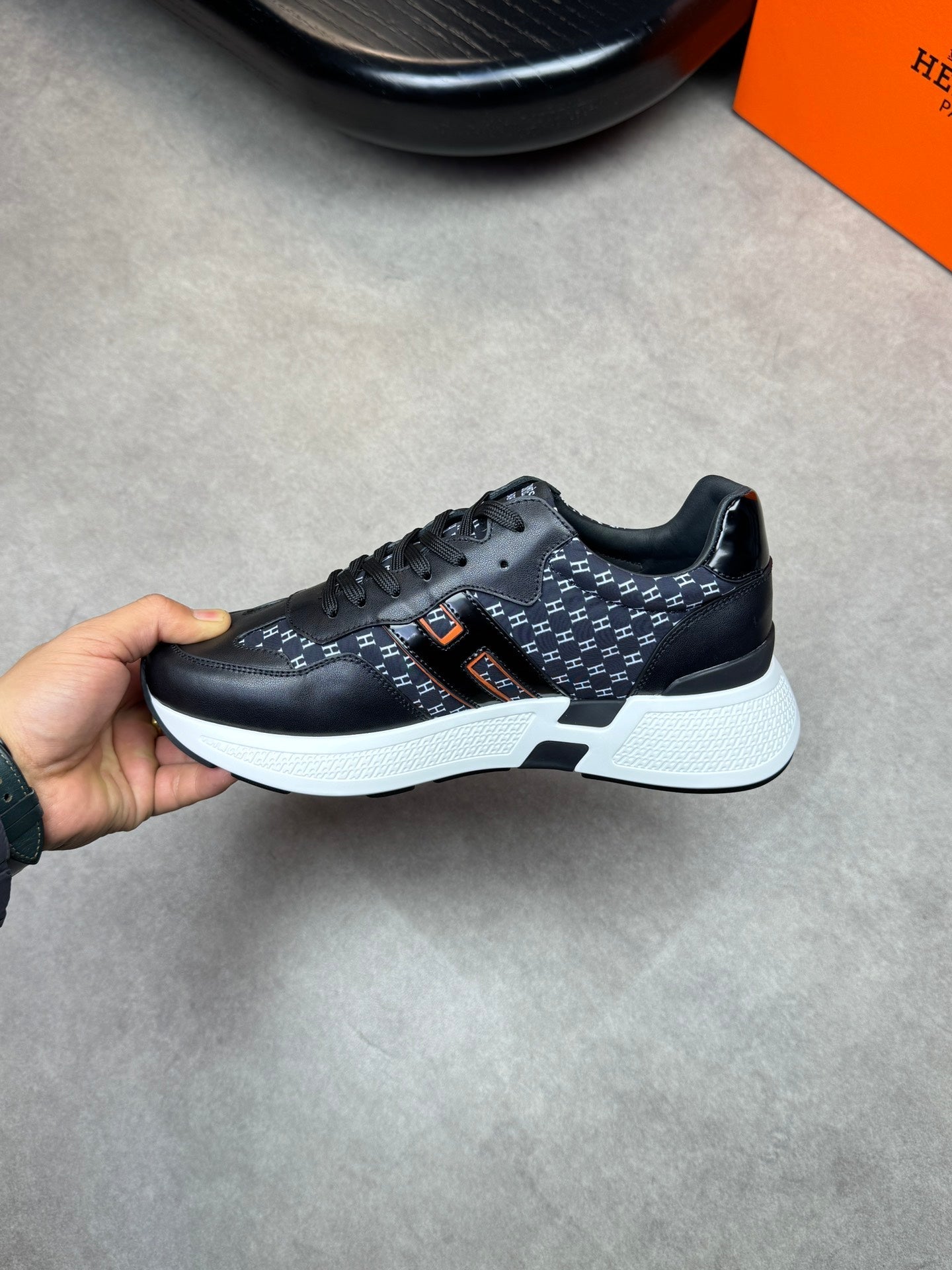 HM Men's Sneaker Black Blue Calfskin 581699
