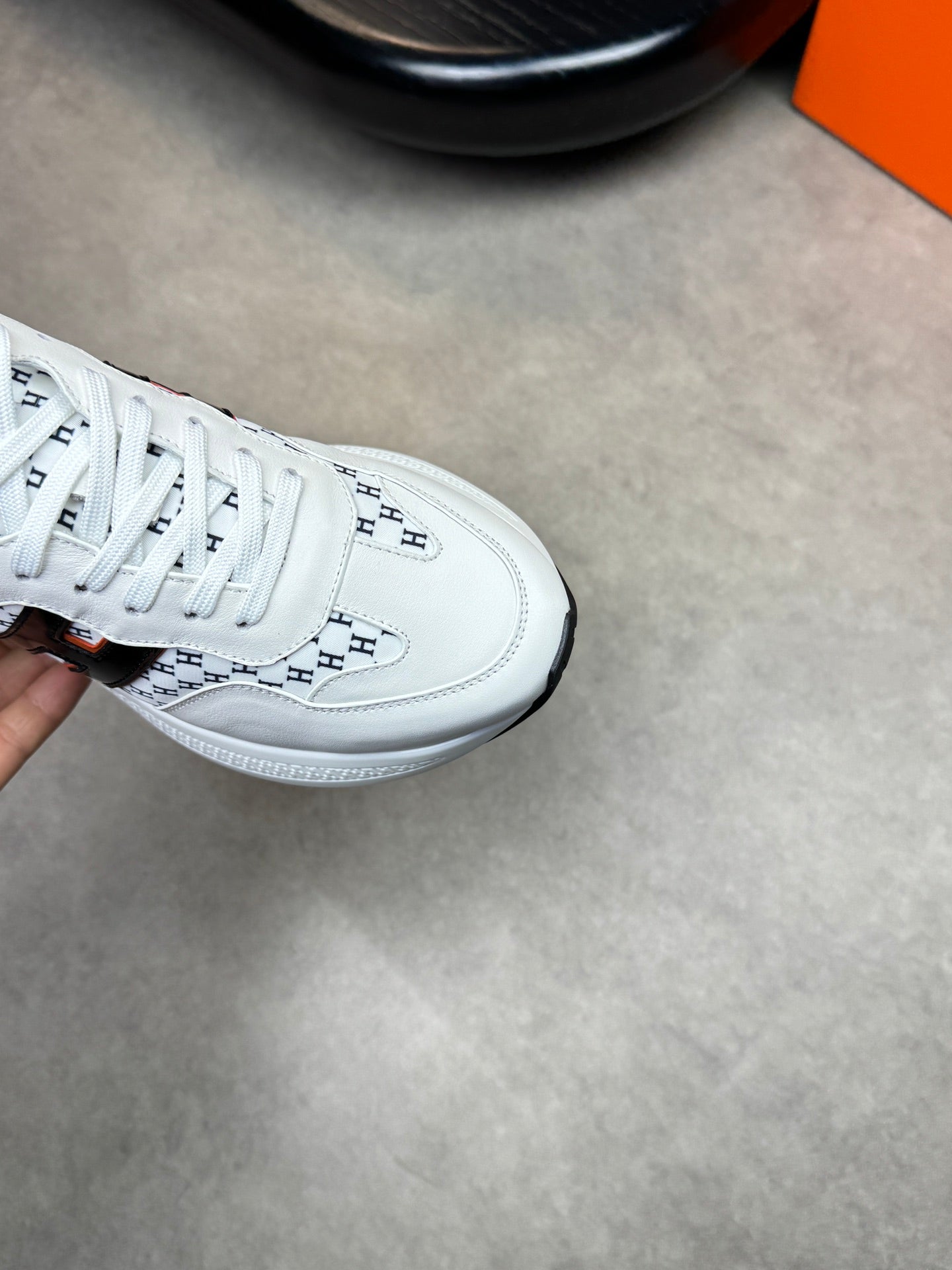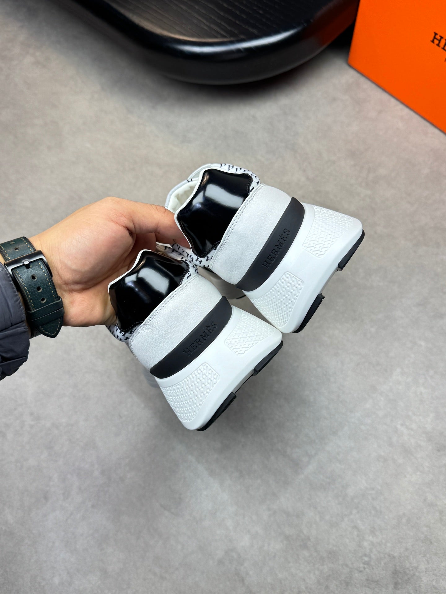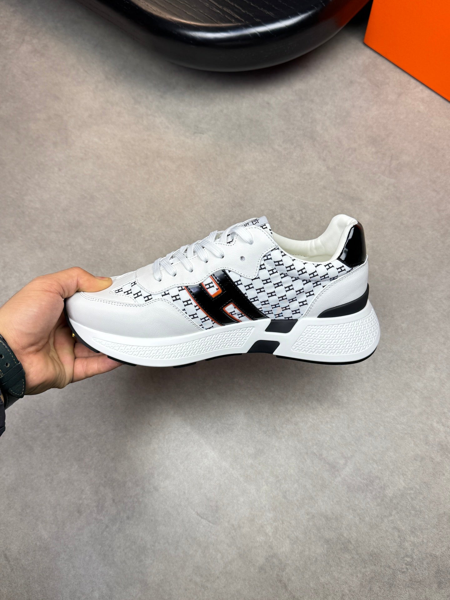 HM Men's Sneaker Black White Calfskin 581691