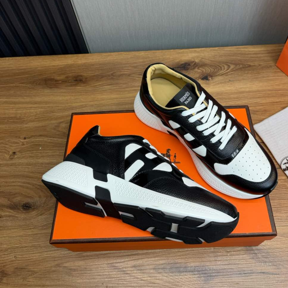 HM Men's Sneaker Black White Cowhide 519235