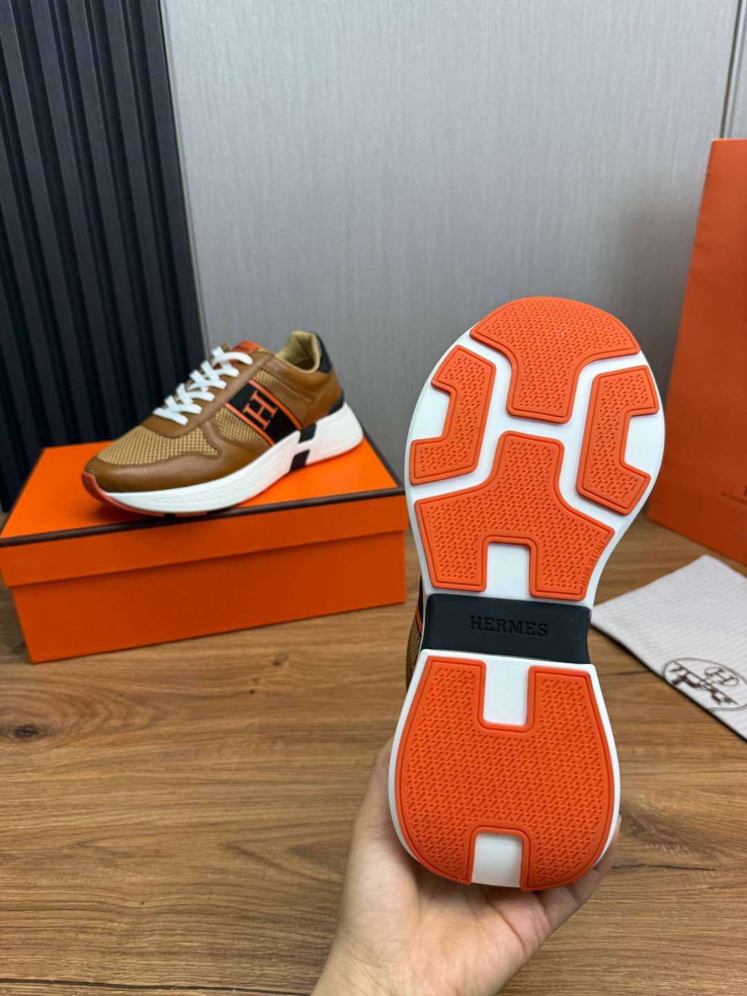 HM Men's Sneaker Brown Mesh Cowhide 519229