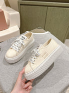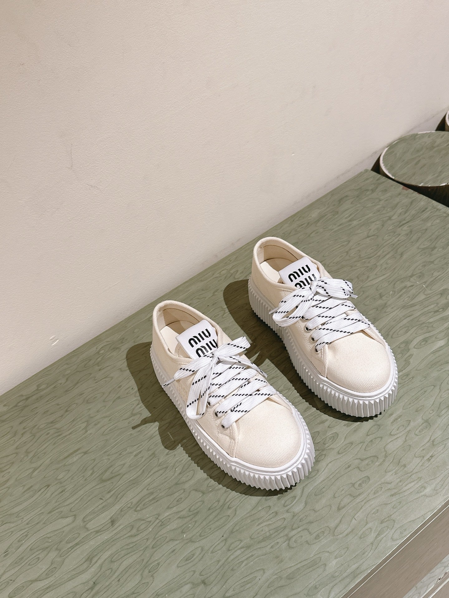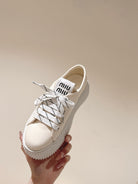 Miu Miu Biscuit Shoes Chunky Sneakers Cream Denim Canvas 532875