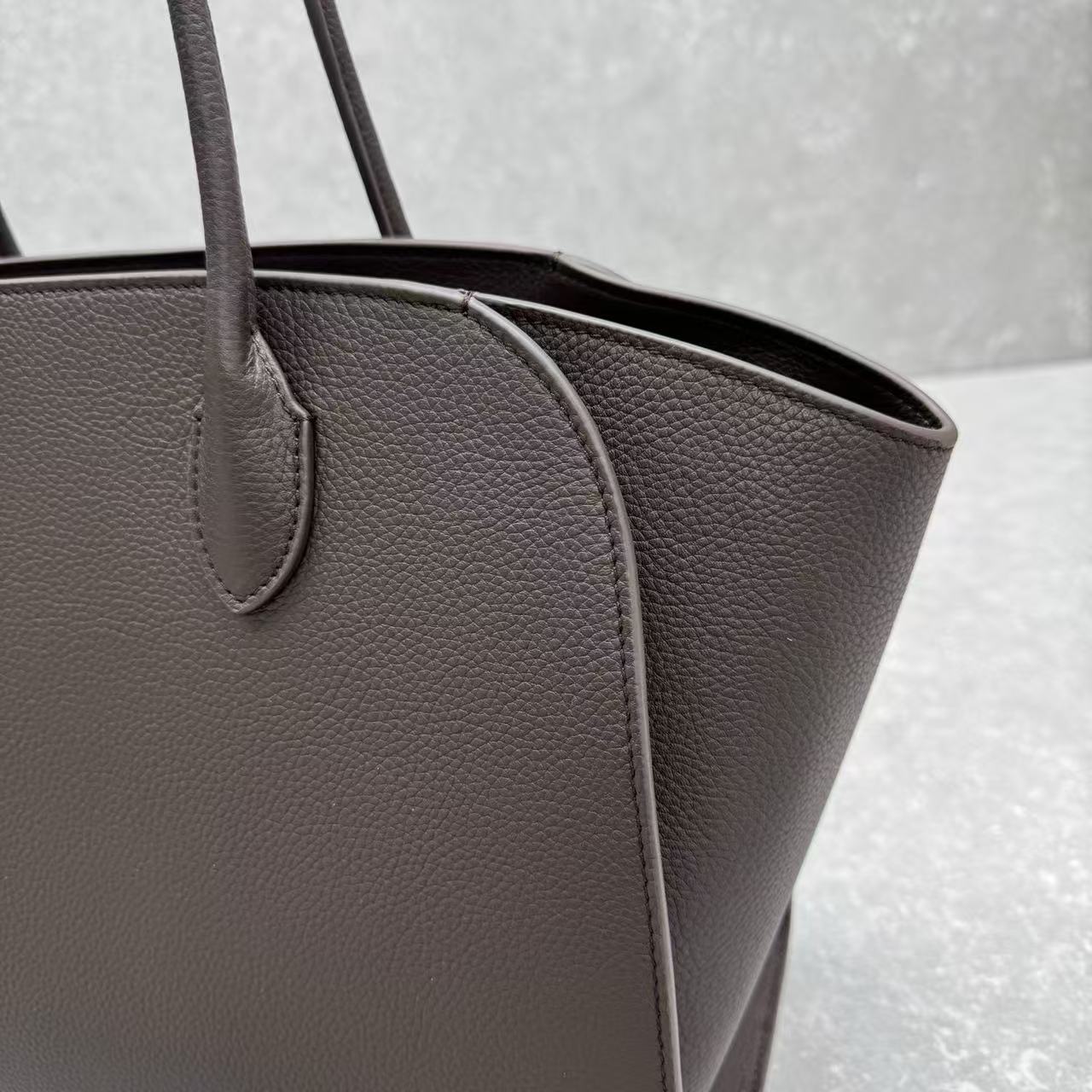 The Row Marlo 14 Tote Bag Taupe Grain Leather