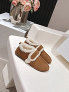 The Row 2025 Furry Shoe Light Brown White Suede Wool 560590