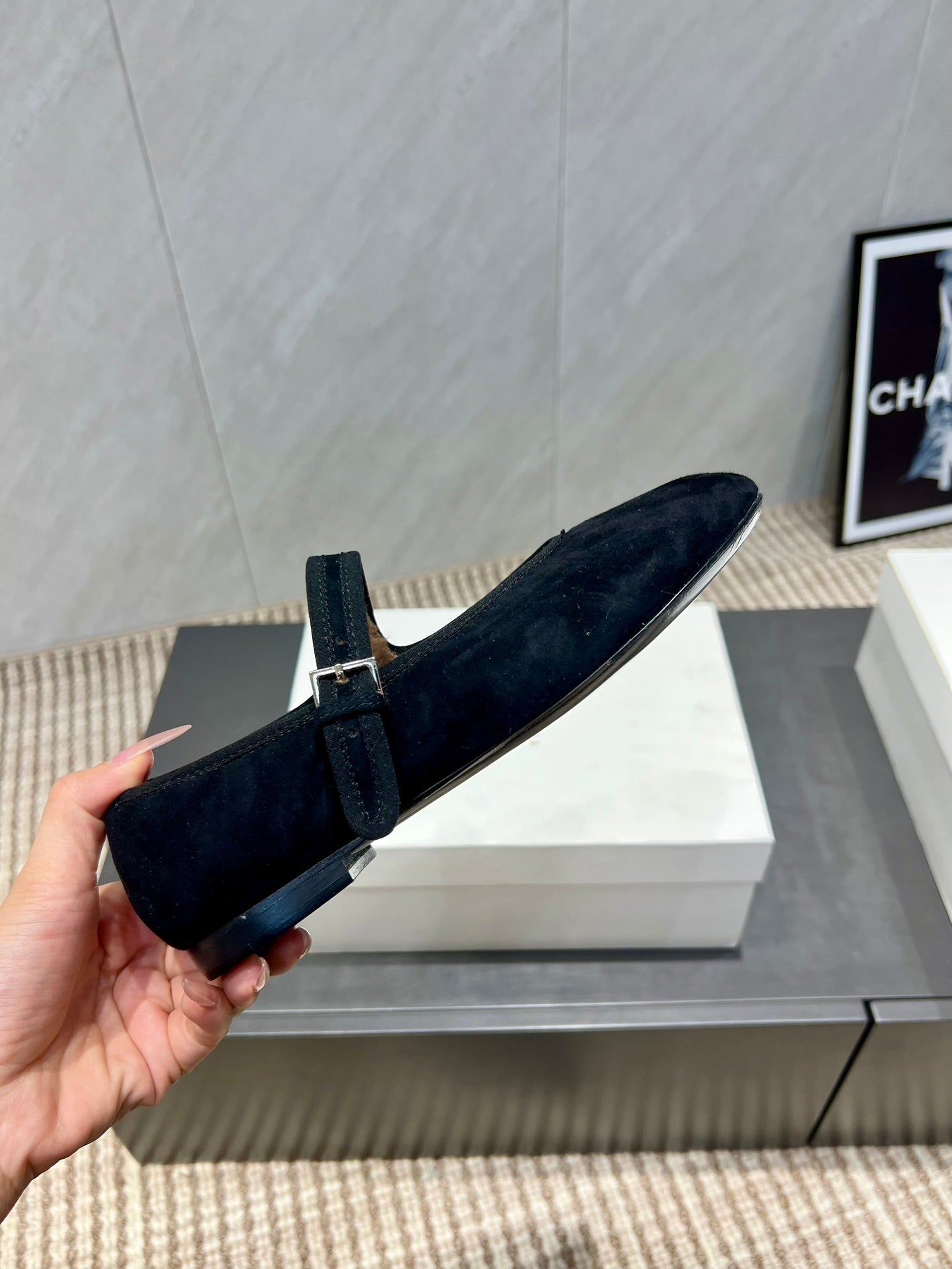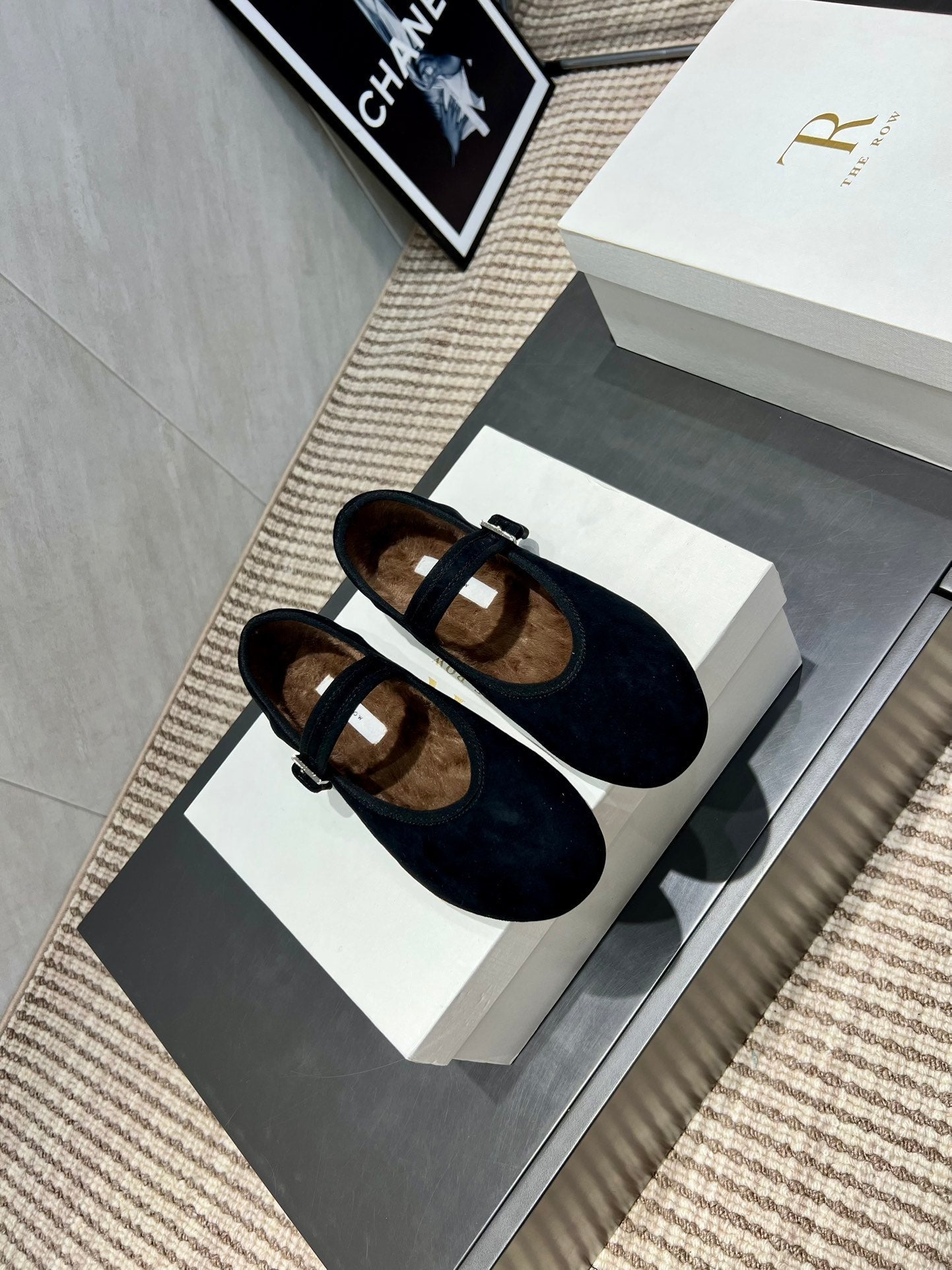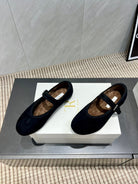 The Row 2025 Round Toe Ballet Flat Black Suede Fleece 540488