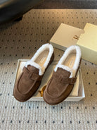 The Row 2025 Shearling Loafer Brown White Suede Wool 561602