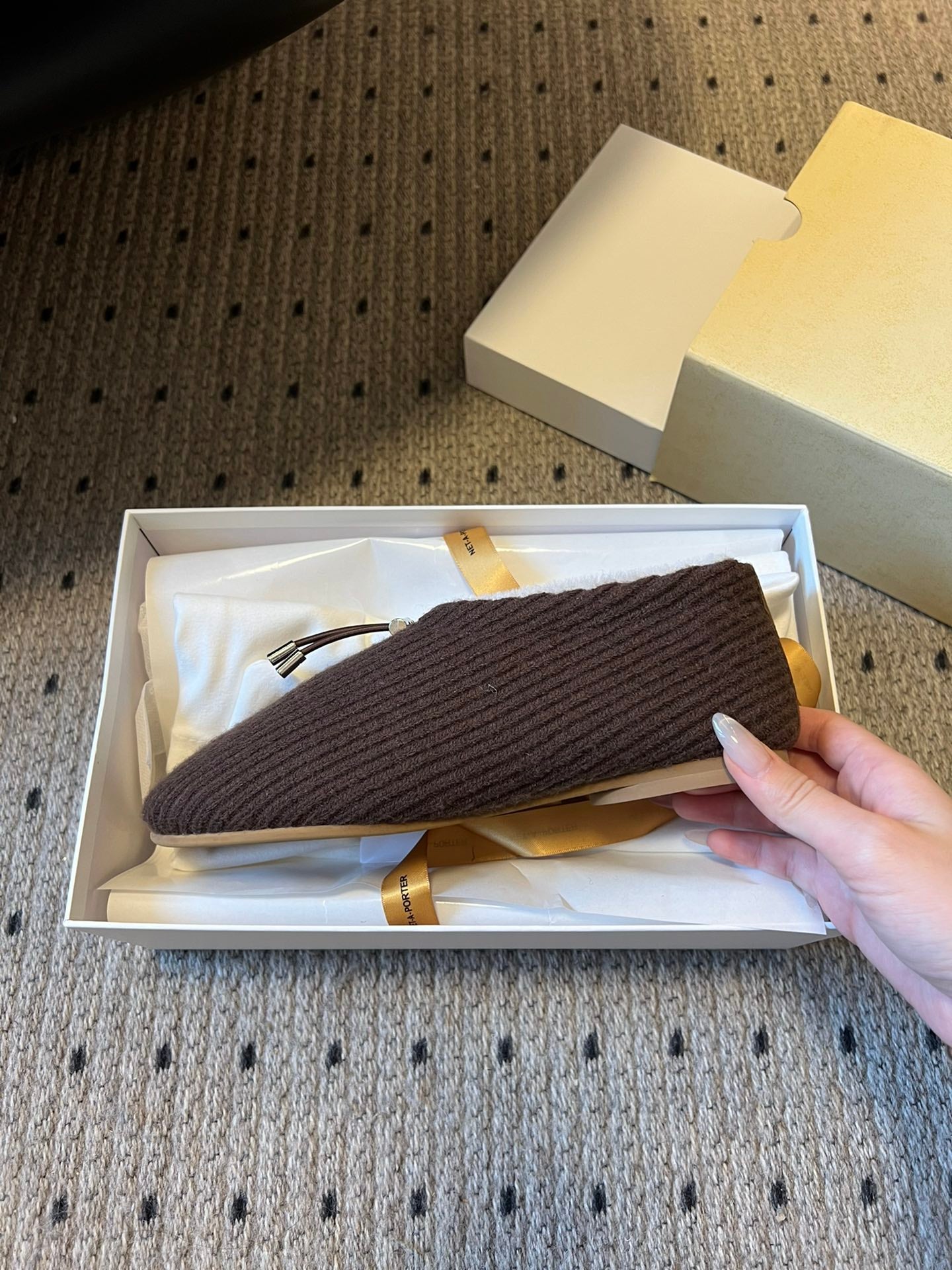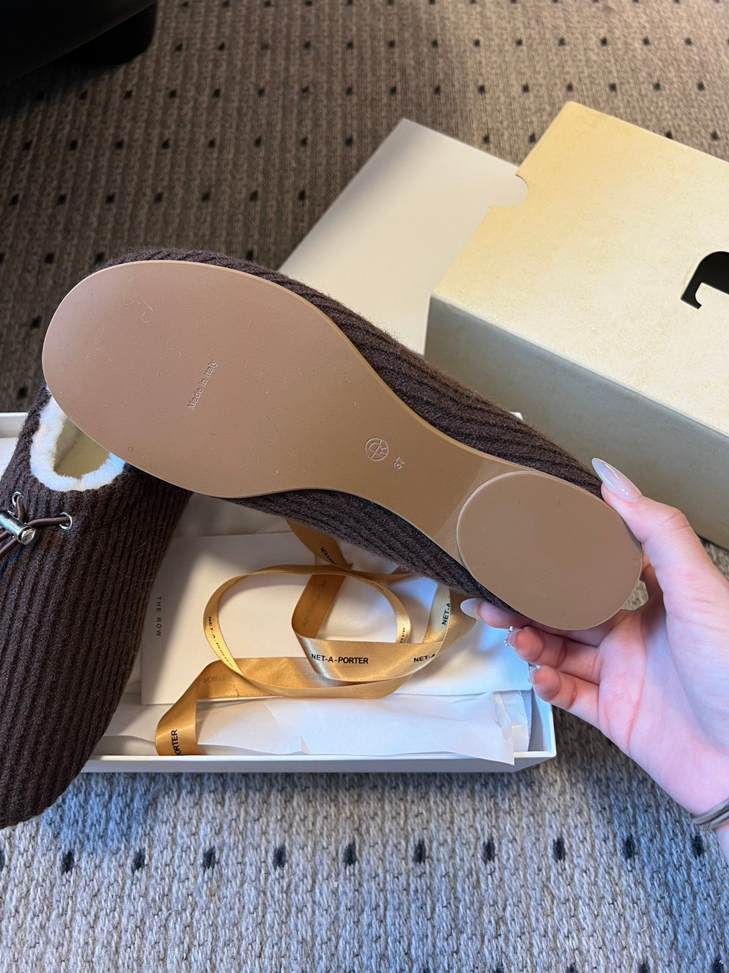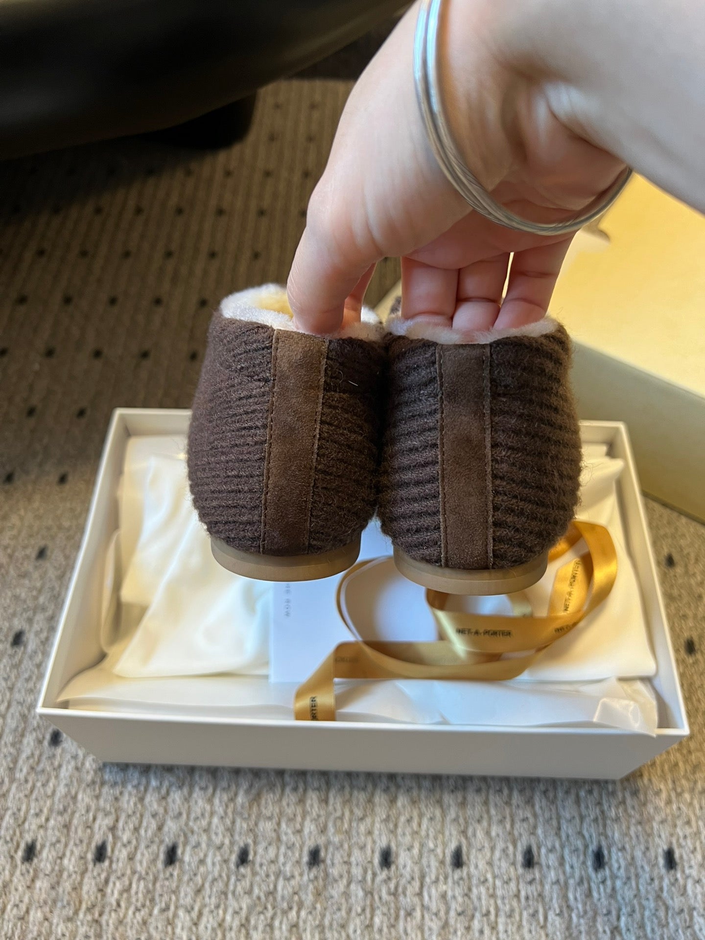 The Row 2025 Striped Furry Slipper Brown White Wool 561637