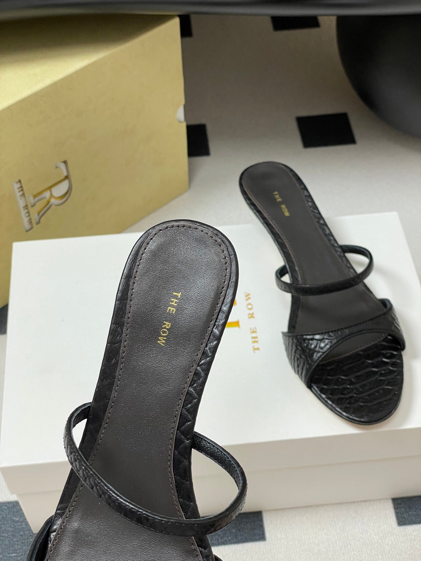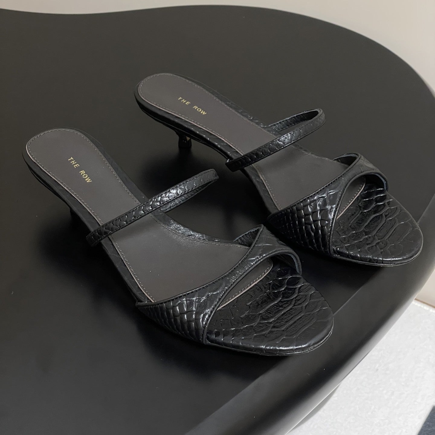 The Row 25S Strap High Heel Mule Sandals 35mm Black Snake Pattern Cowhide 286213