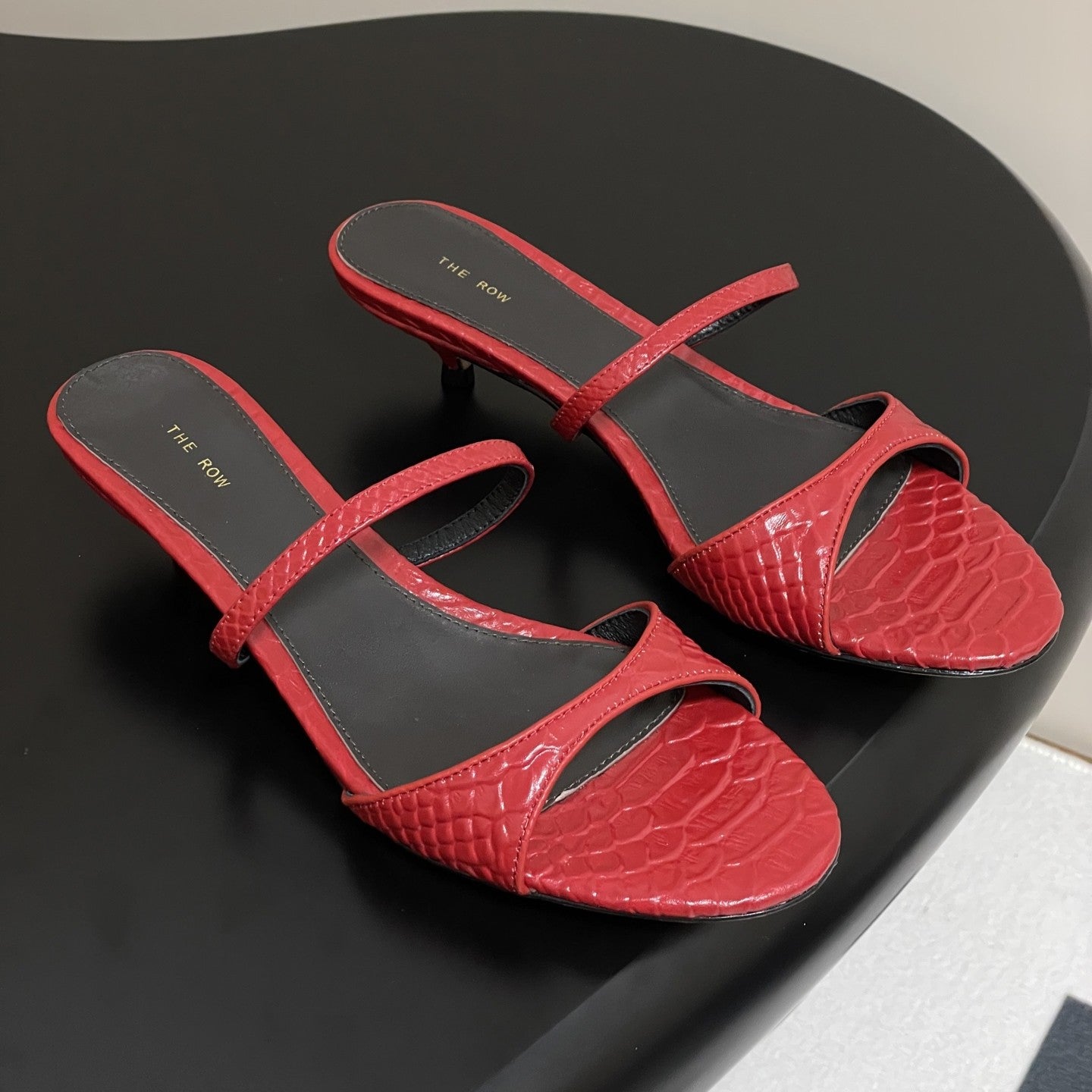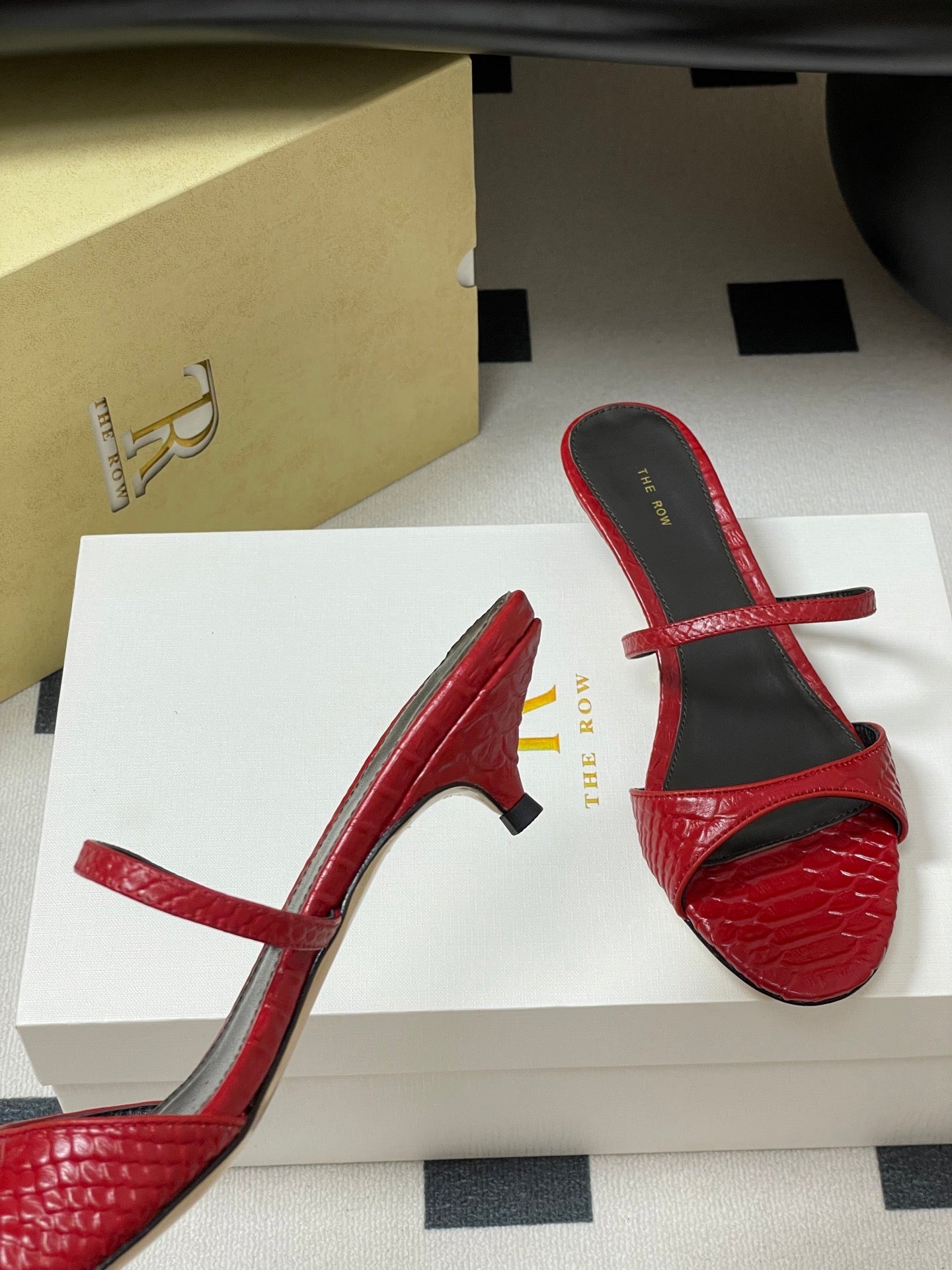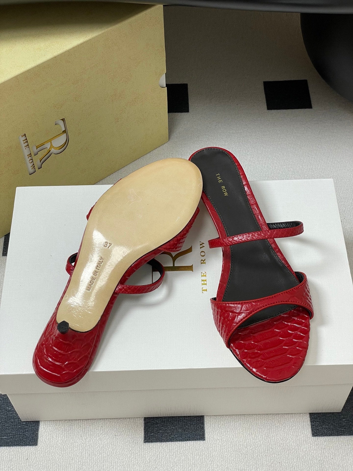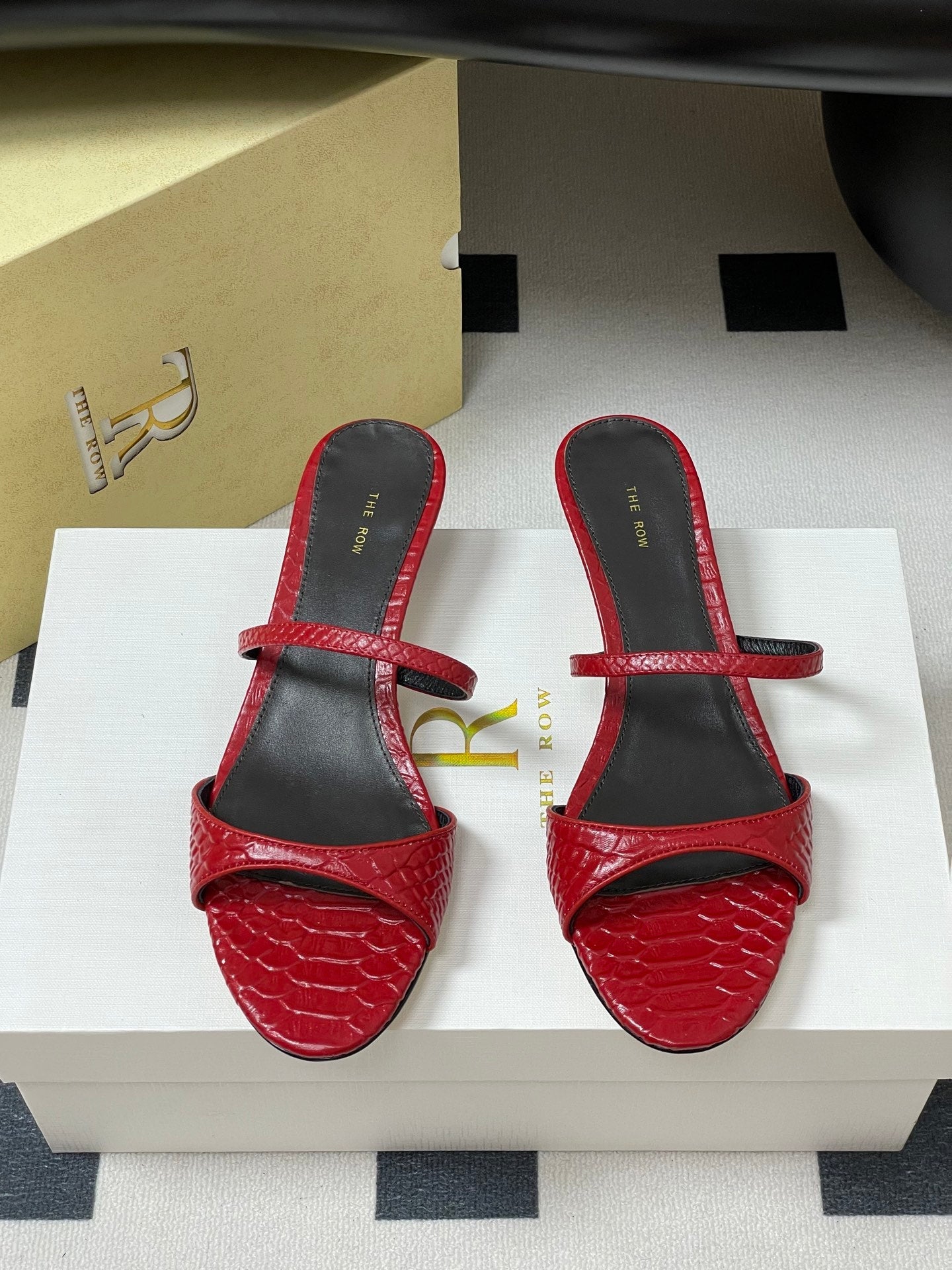 The Row 25S Strap High Heel Mule Sandals 35mm Red Snake Pattern Cowhide 286211