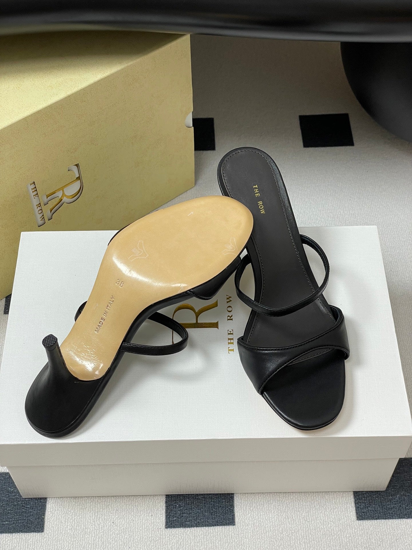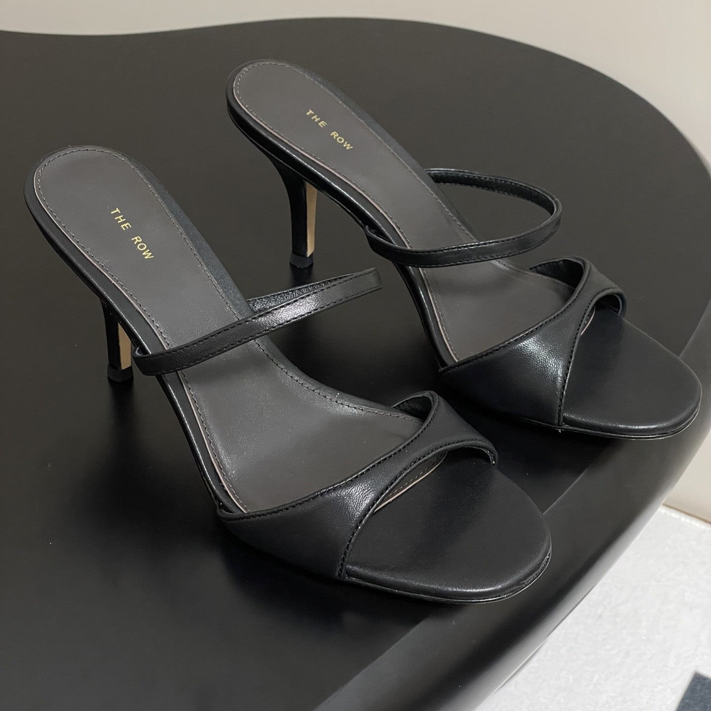 The Row 25S Strap High Heel Mule Sandals 85mm Black Sheepskin 286208