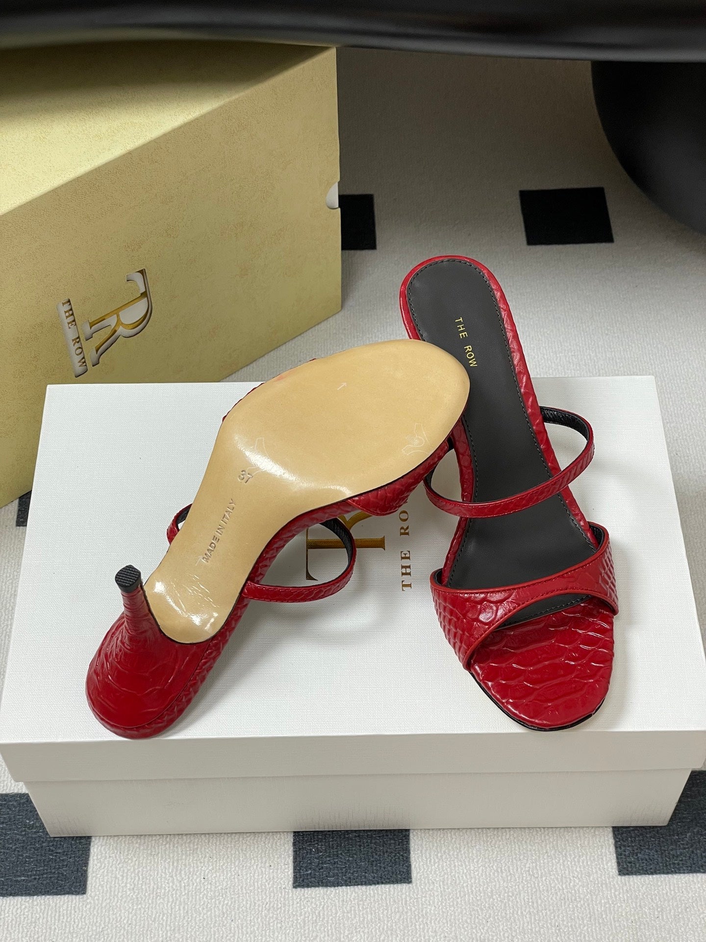 The Row 25S Strap High Heel Mule Sandals 85mm Red Snake Pattern Cowhide 286203