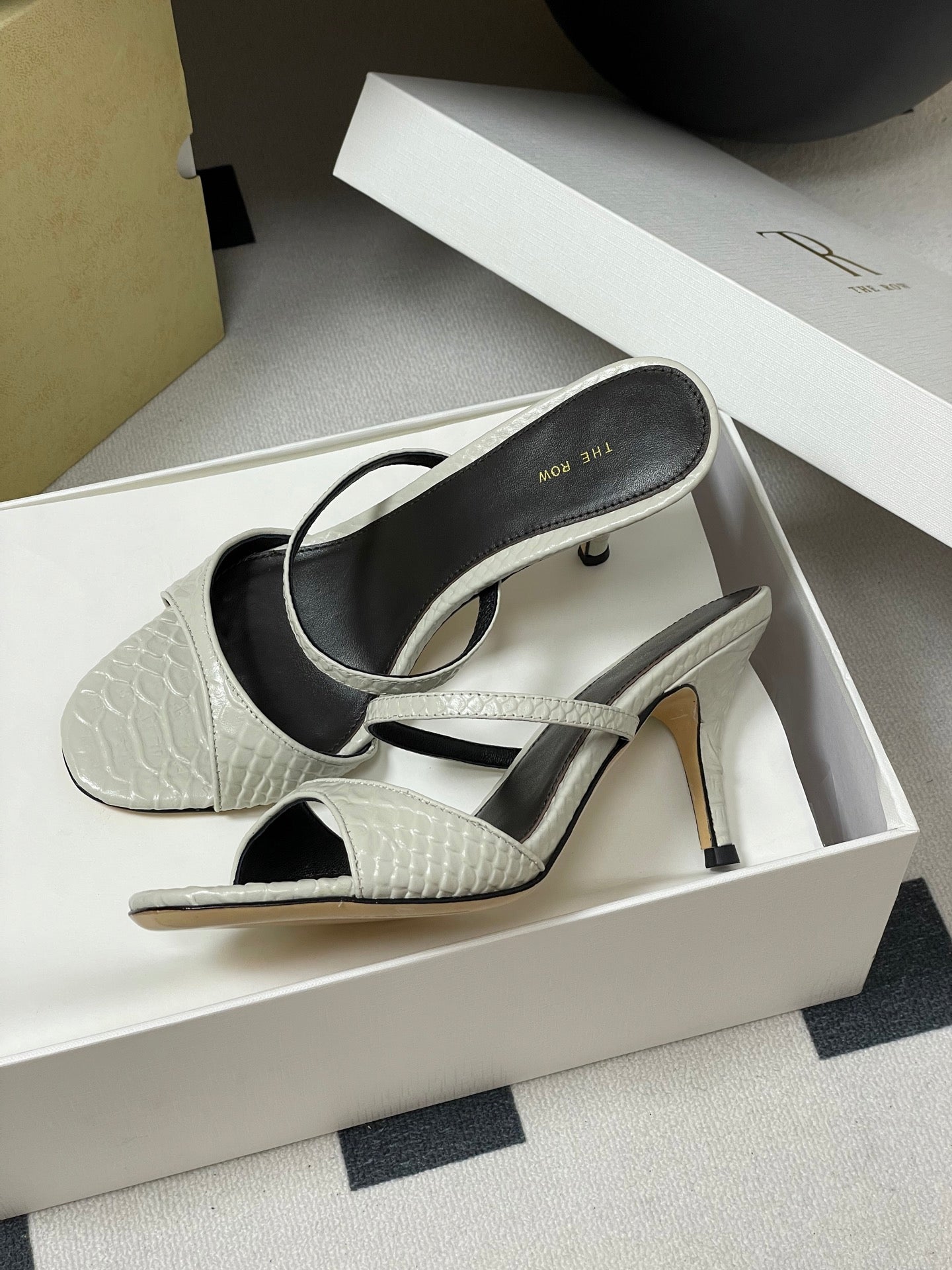 The Row 25S Strap High Heel Mule Sandals 85mm White Snake Pattern Cowhide 286204