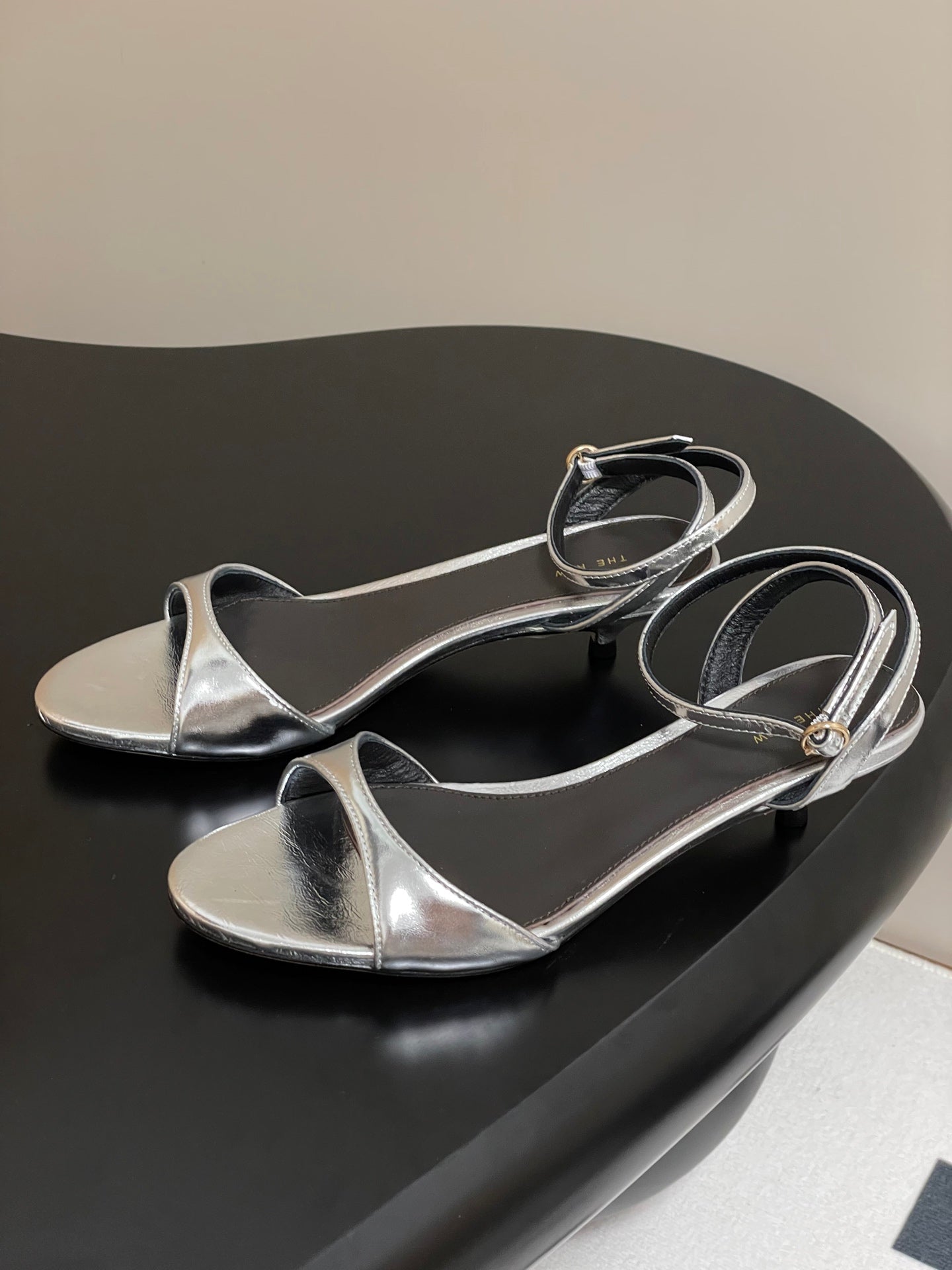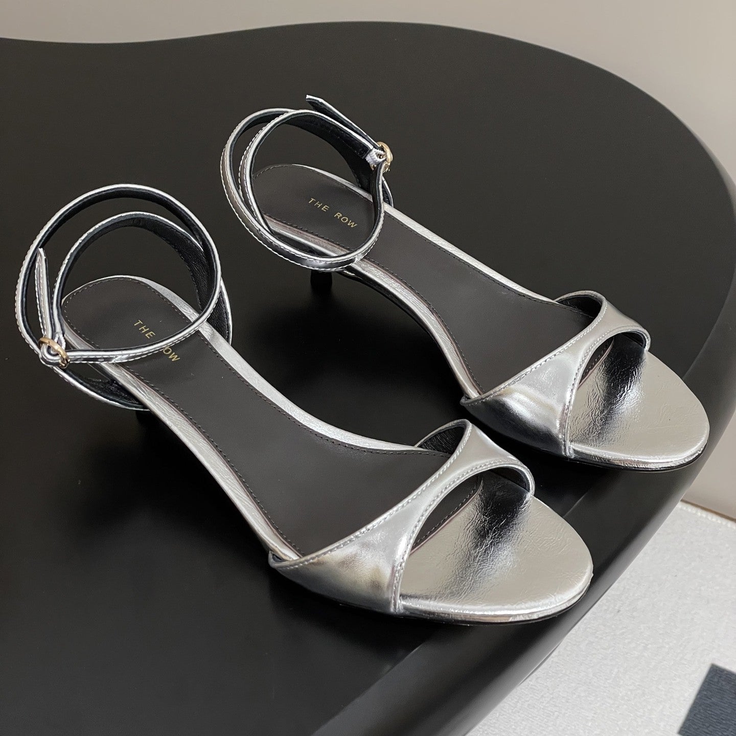 The Row 25S Strap High Heel Sandals 35mm Black Mix Silver Metallic Cowhide 286201