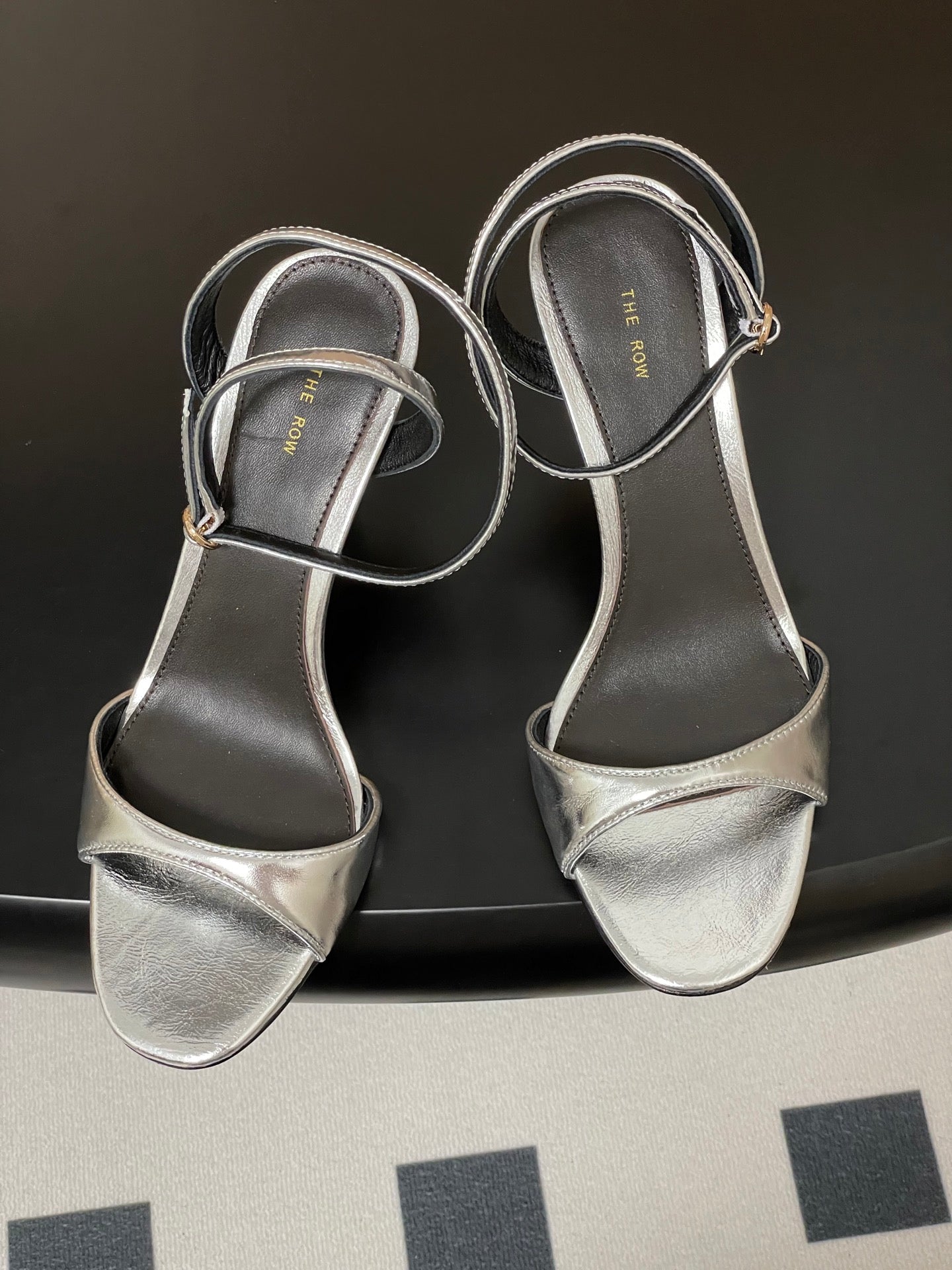 The Row 25S Strap High Heel Sandals 85mm Black Mix Gold Metallic Cowhide 286193